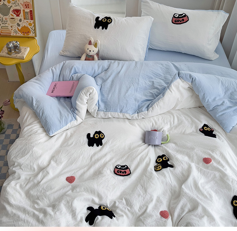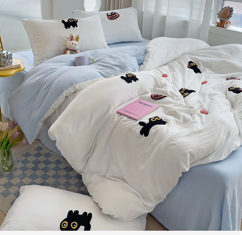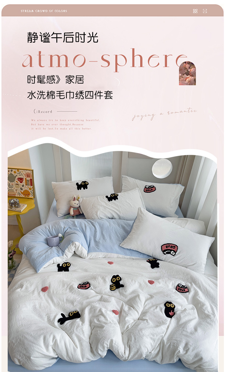 当前位置: 91家纺网 > 商品网购 > 床品套件 > 四件套 > 水洗棉四件套 > 韩巢家纺 2024新款四季通用超柔水洗棉毛巾绣四件套-幸运猫系列(提供卖家秀) 幸运猫白蓝