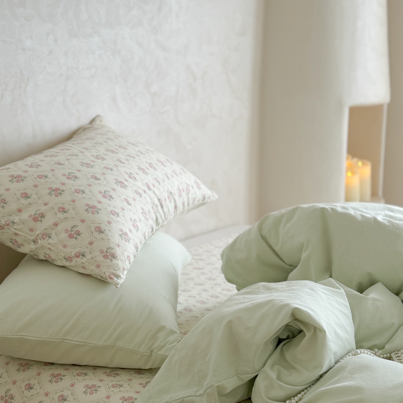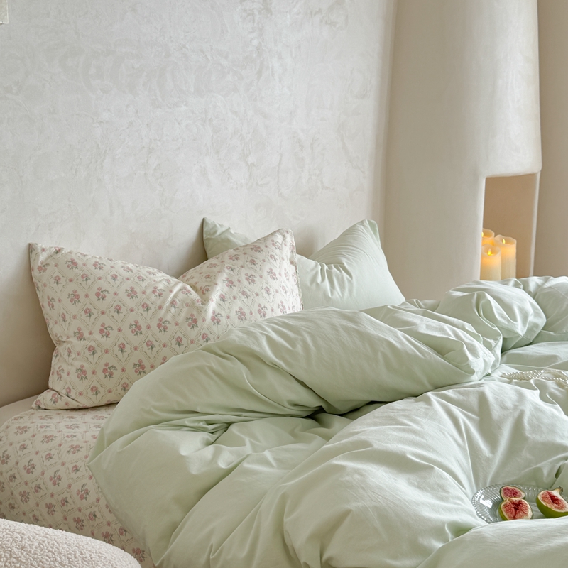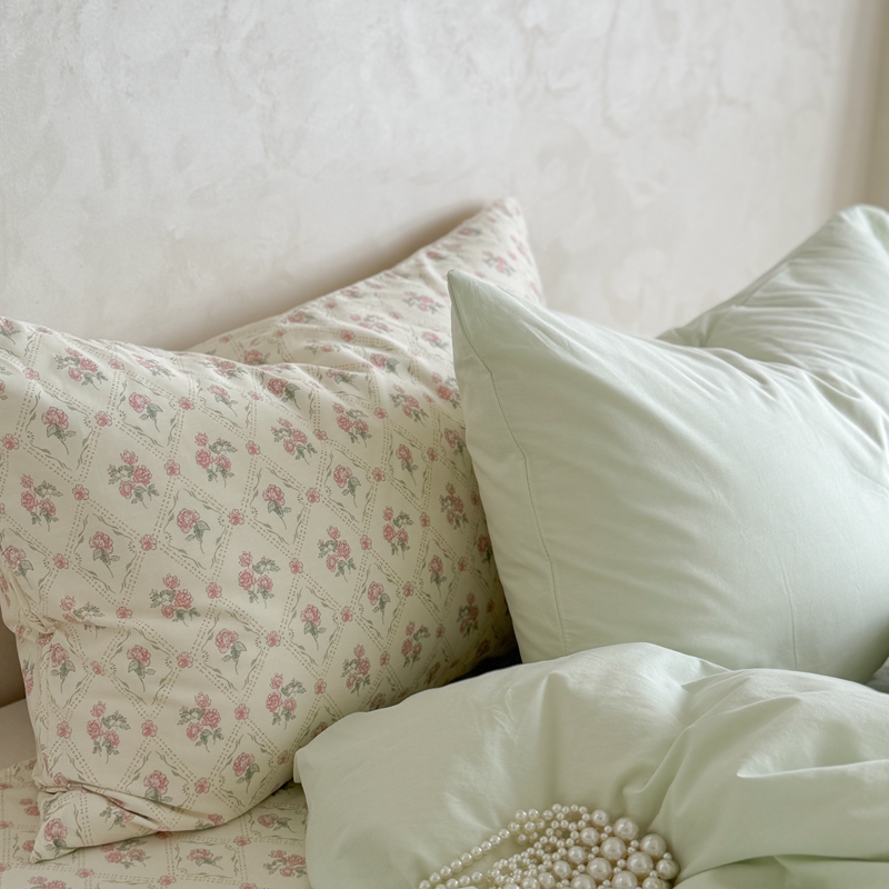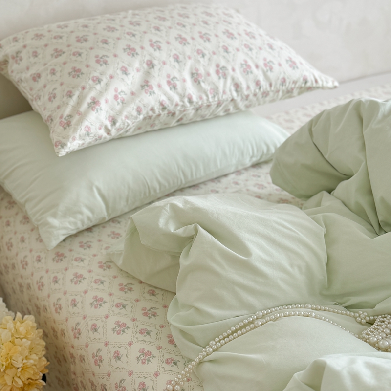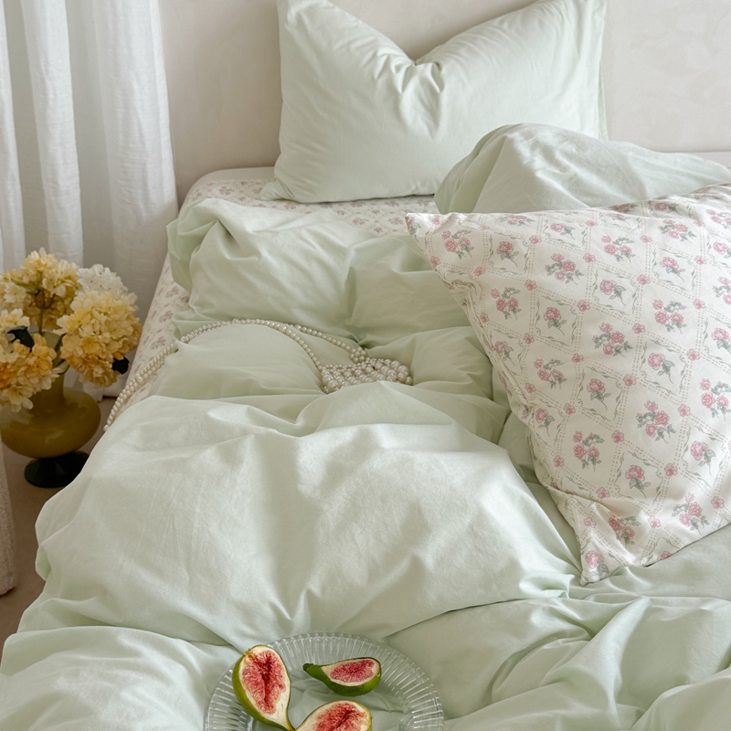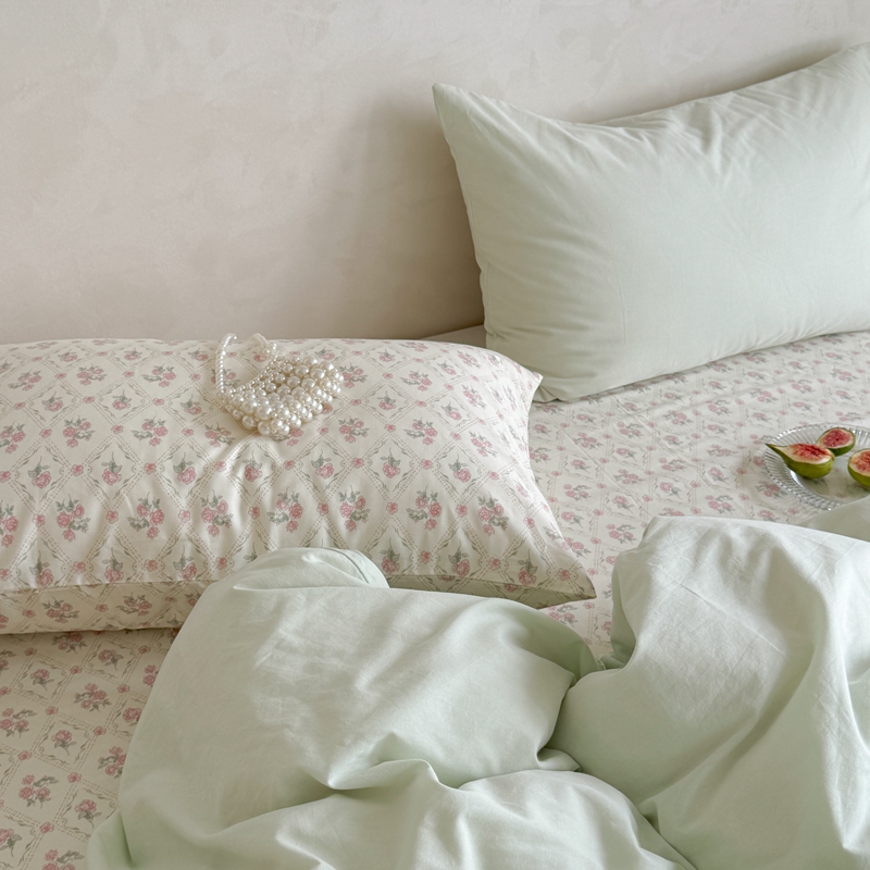 柚子YOUTH 2024新款全棉水洗棉碎花温柔系四件套 菱格花