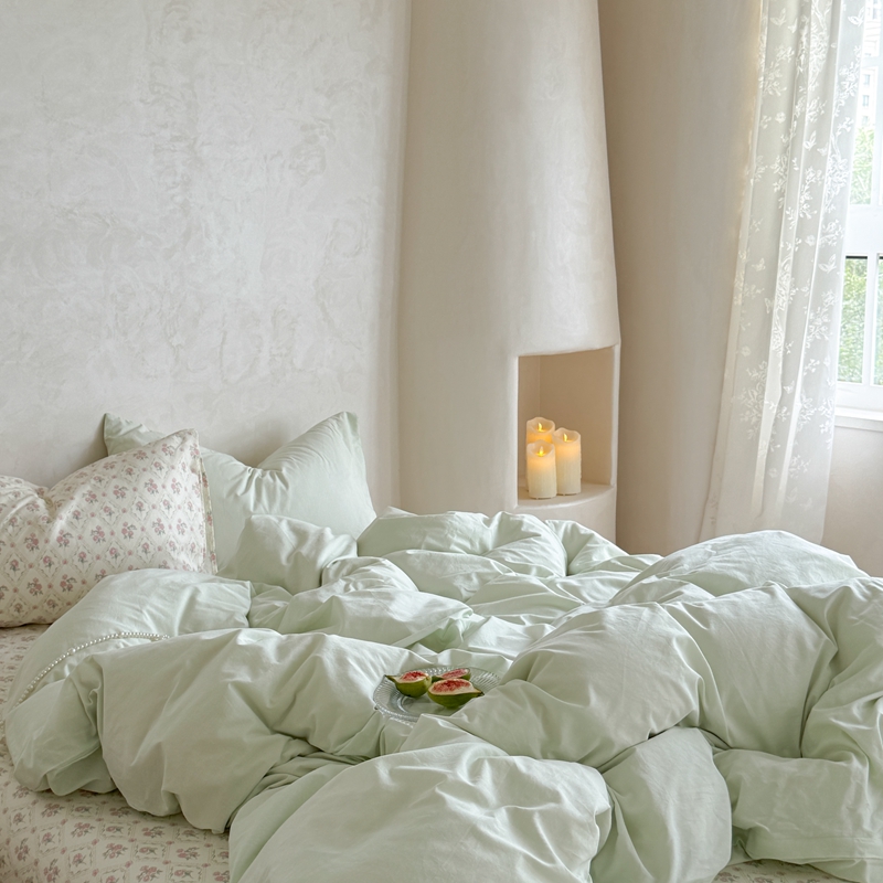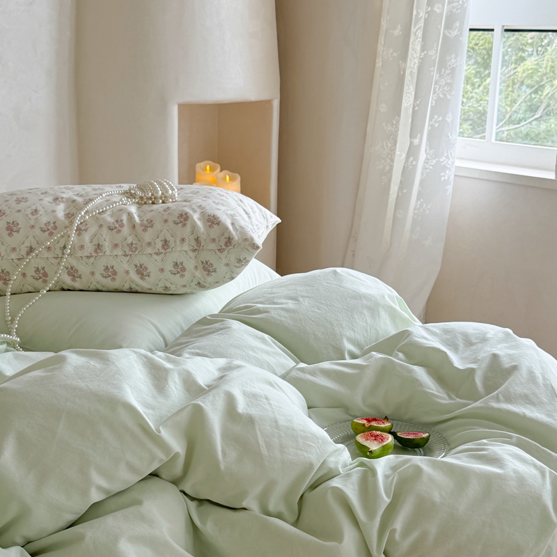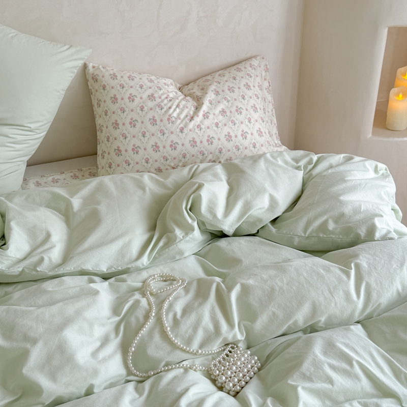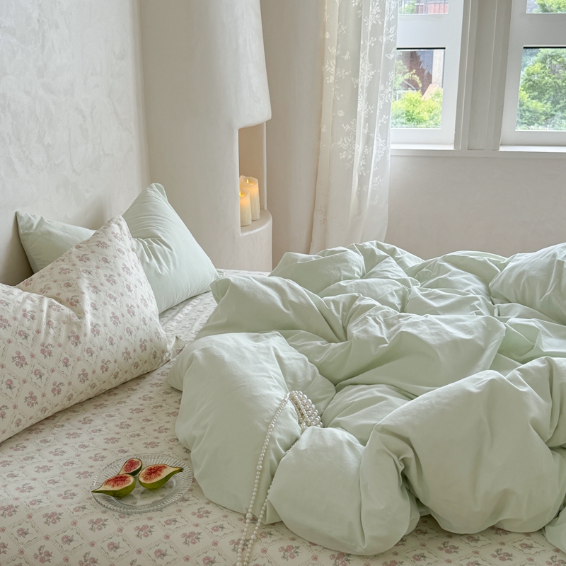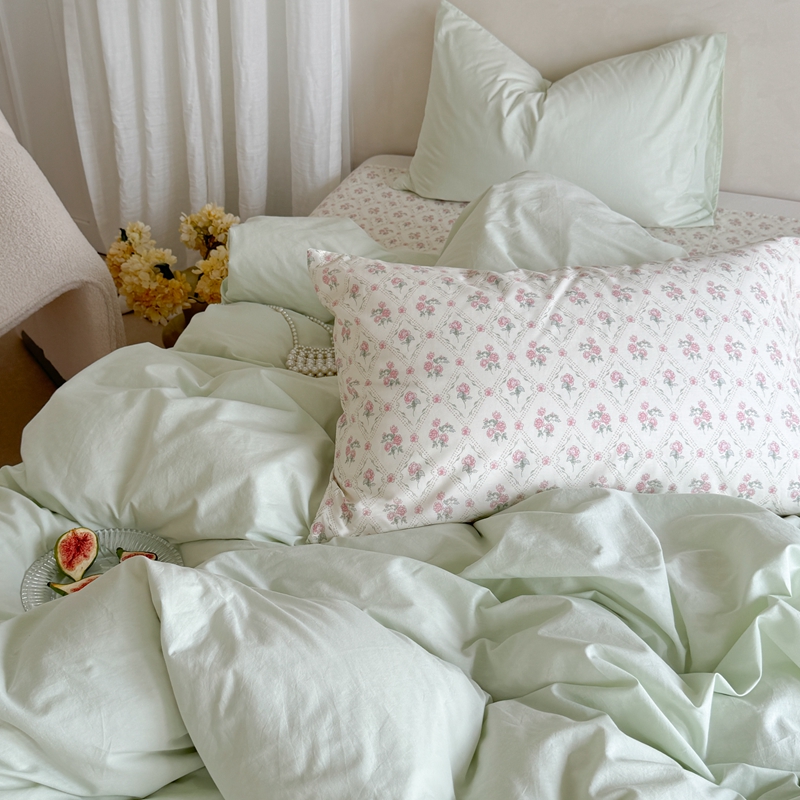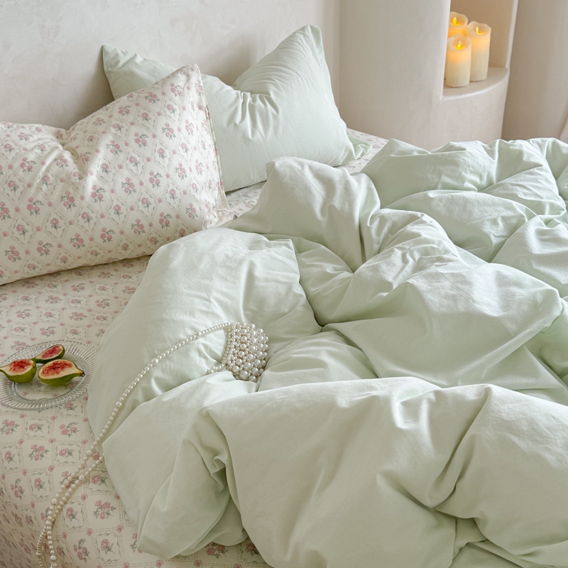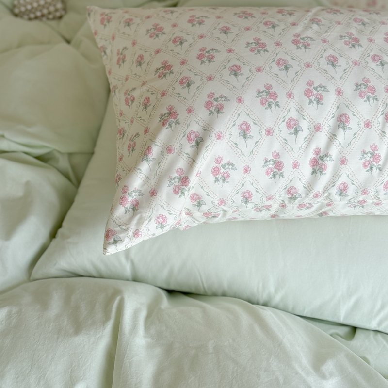 柚子YOUTH 2024新款全棉水洗棉碎花温柔系四件套 菱格花