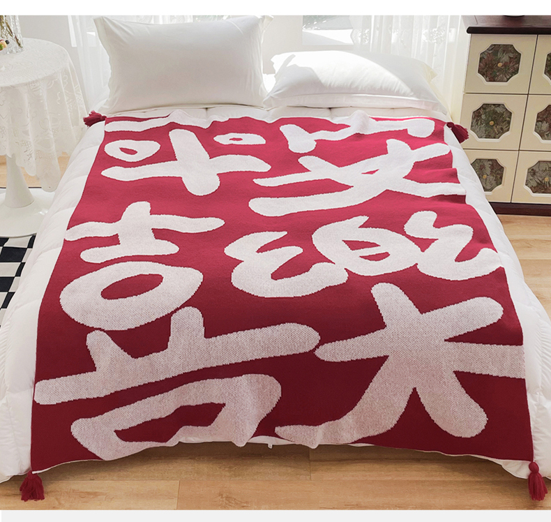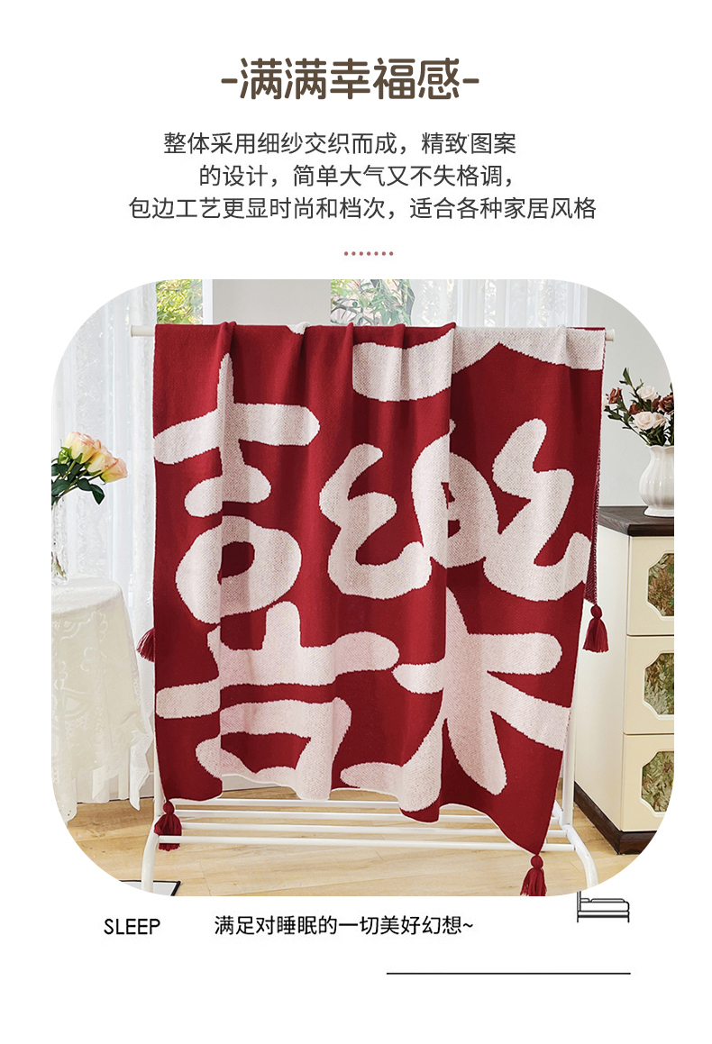 商品名称:栩裕纺织 2024新款针织提花盖毯發系列(可定制) 针织-平安喜乐-红