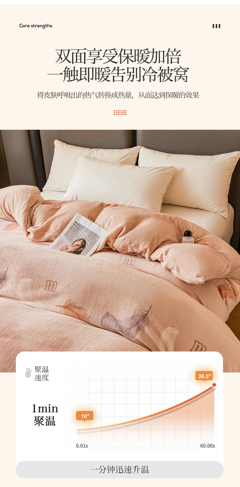 商品名称:董韵家纺 2025新款高克重全消光牛奶绒法莱绒金貂绒印花单品被套床裙四件套(提供买家秀) 吉祥幸福