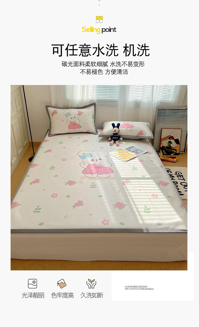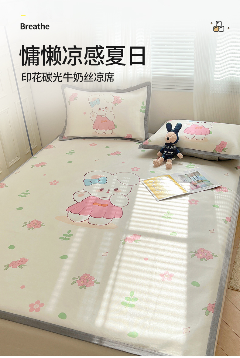 商品名称:(总)繁花 2024新款印花碳光牛奶丝凉席