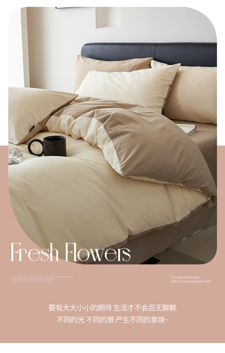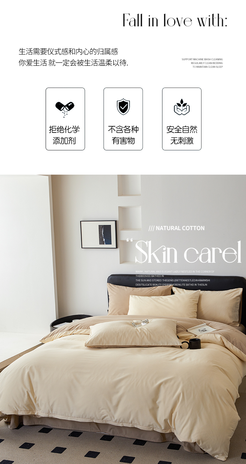 (总)优彩 2025新款A类100支全棉磨毛纯色双拼四件套