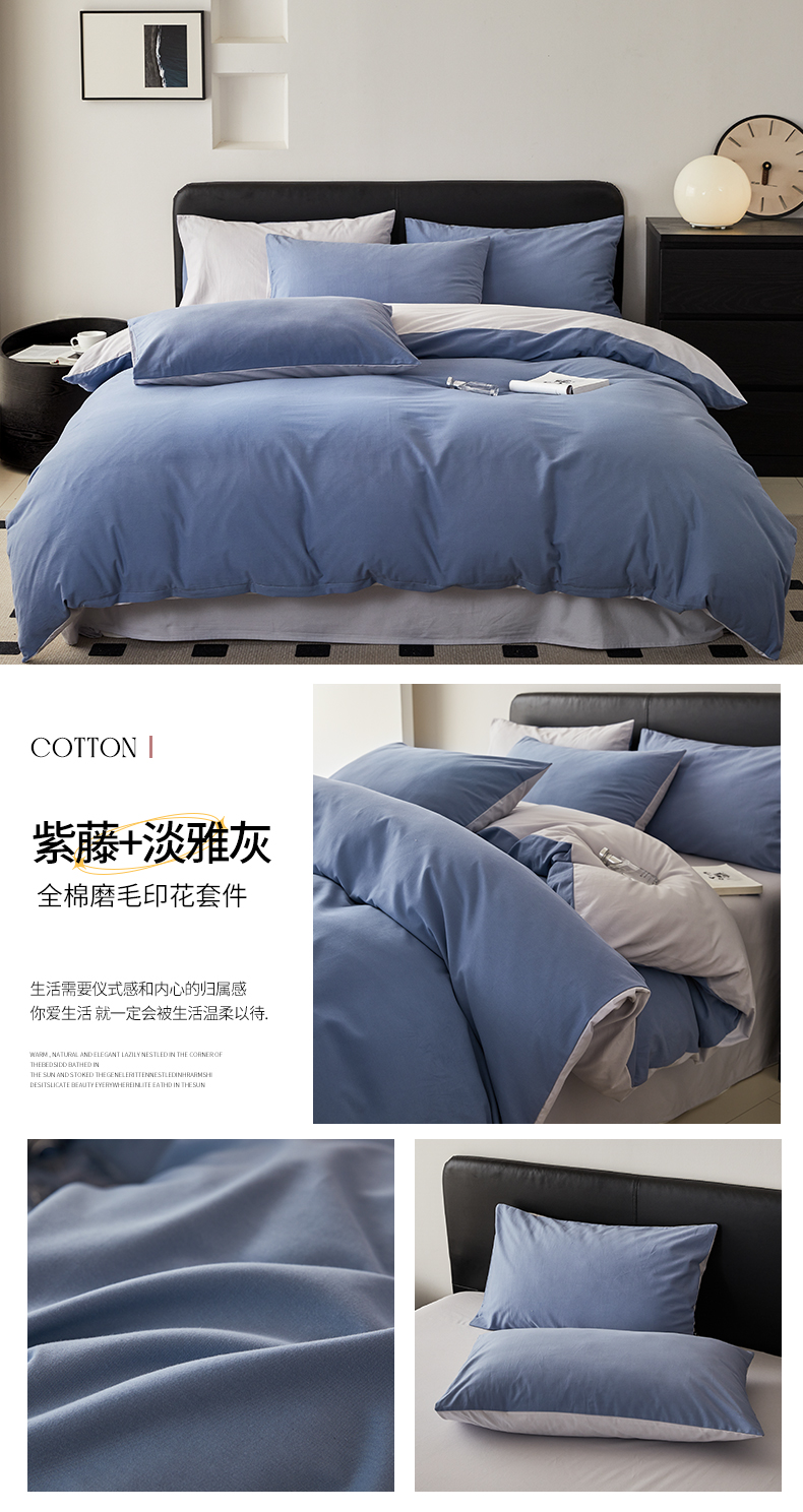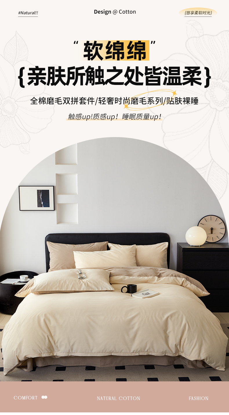 商品名称:(总)优彩 2025新款A类100支全棉磨毛纯色双拼四件套