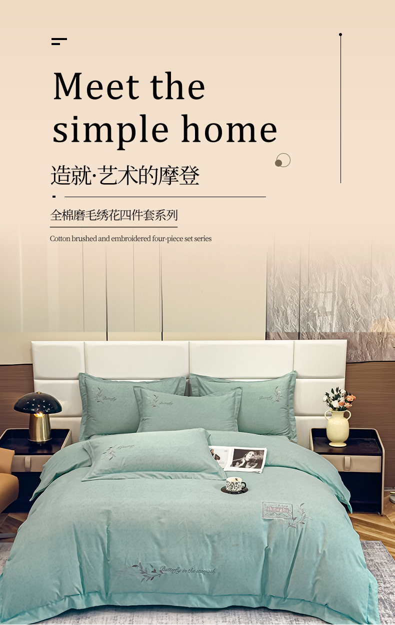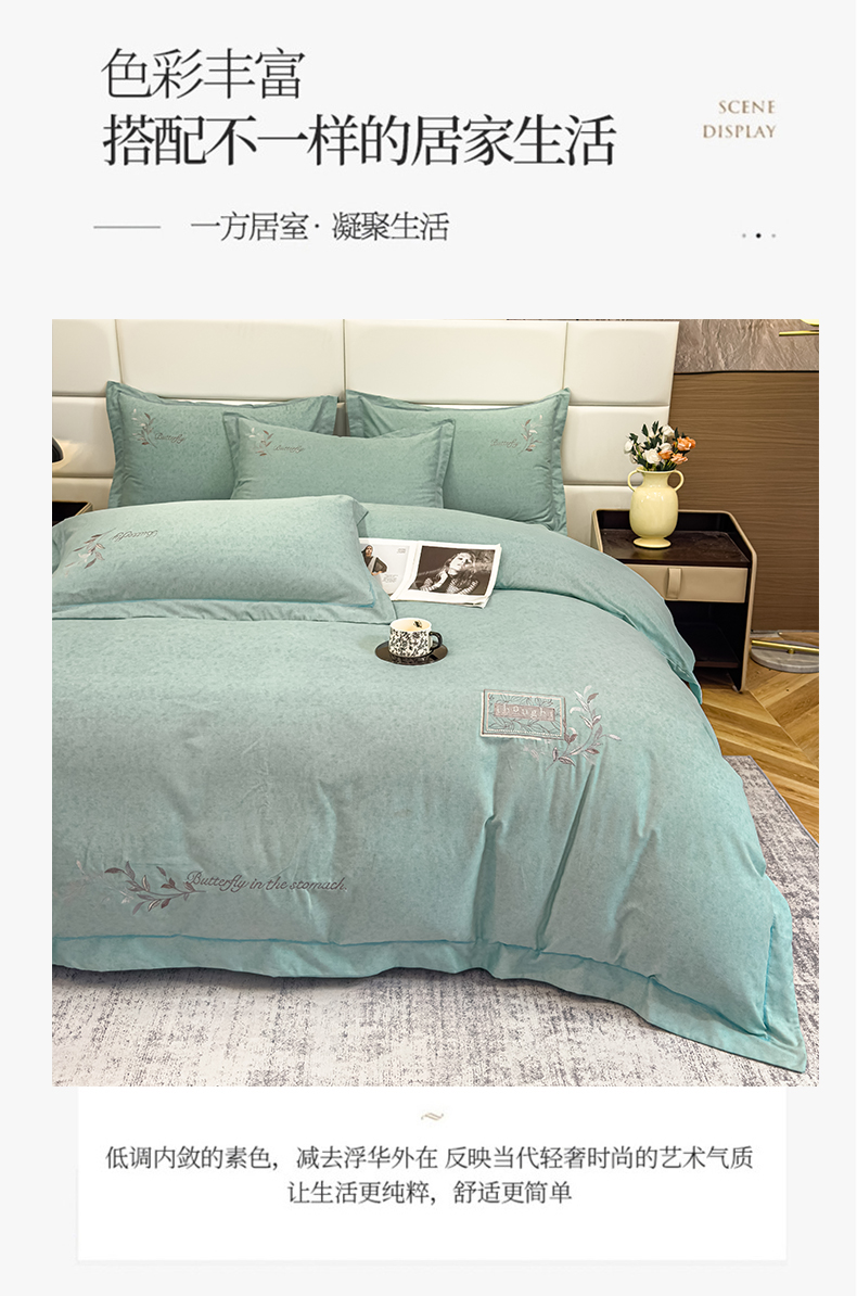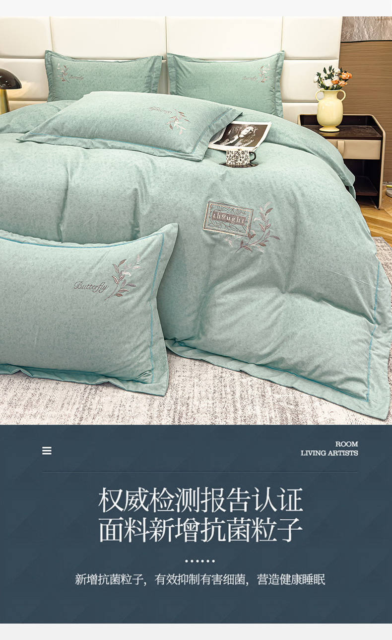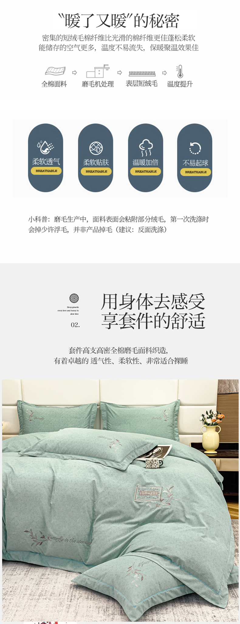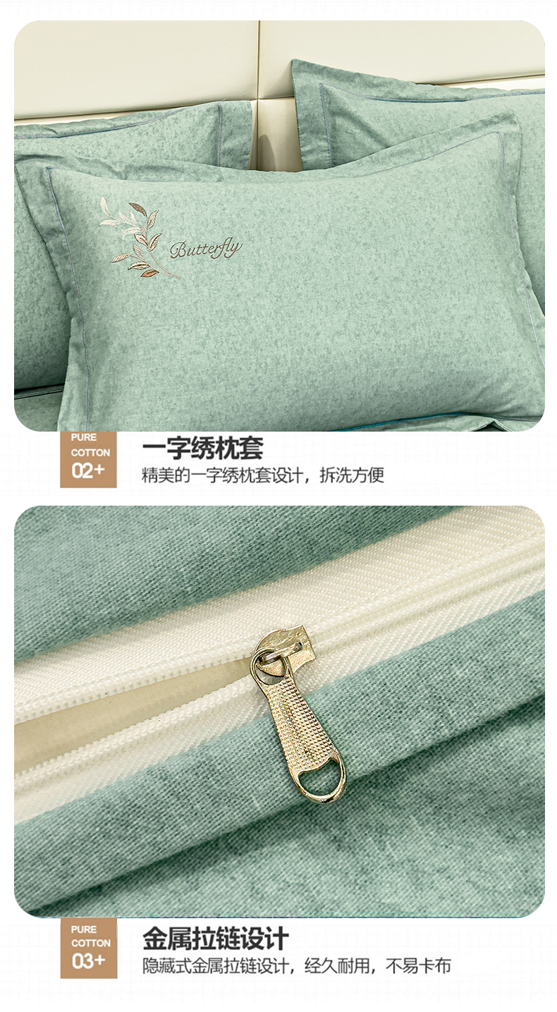当前位置: 91家纺网 > 商品网购 > 床品套件 > 四件套 > 普通磨毛四件套 > U品汇 2024新品生态加厚长绒棉纯棉绣花全棉磨毛刺绣四件套宽边款直播 一叶知秋-浅绿