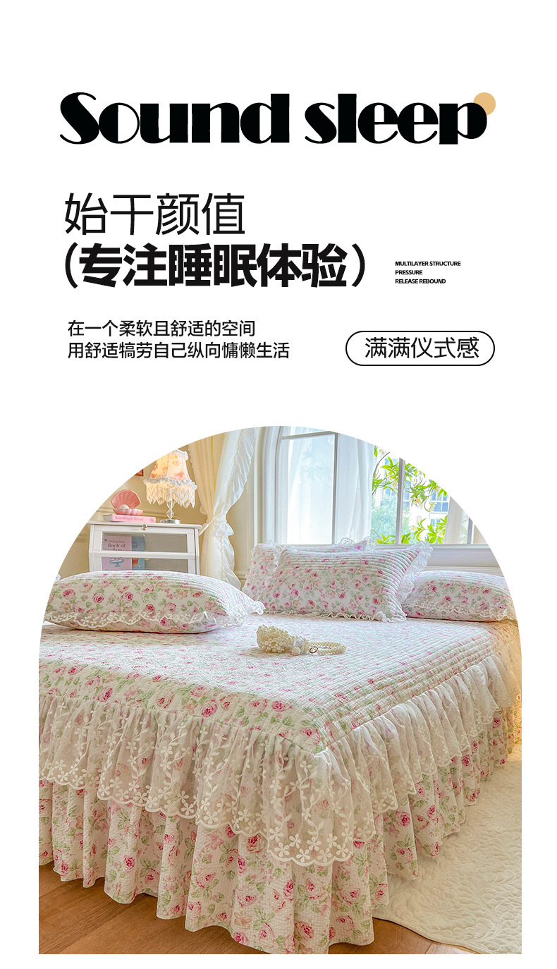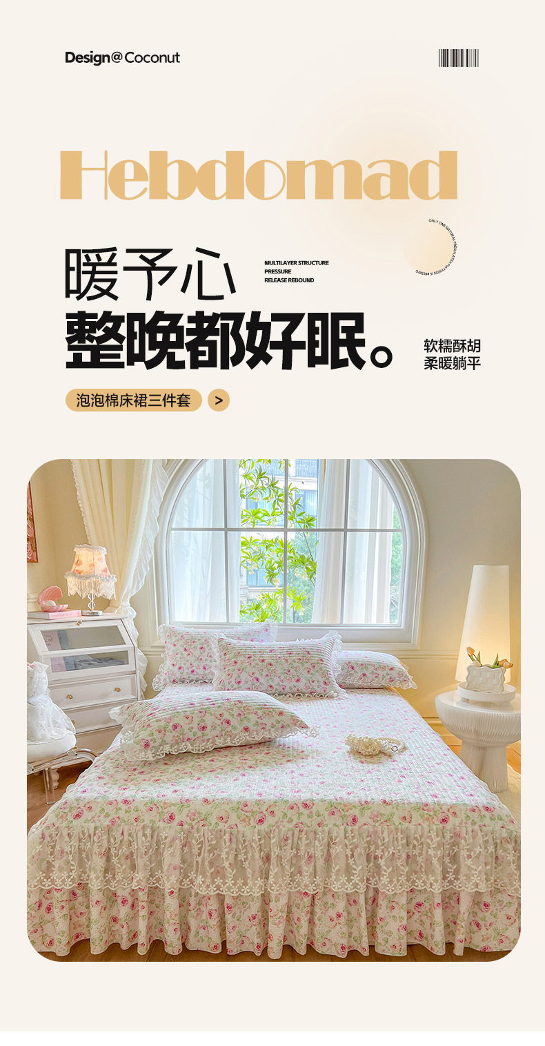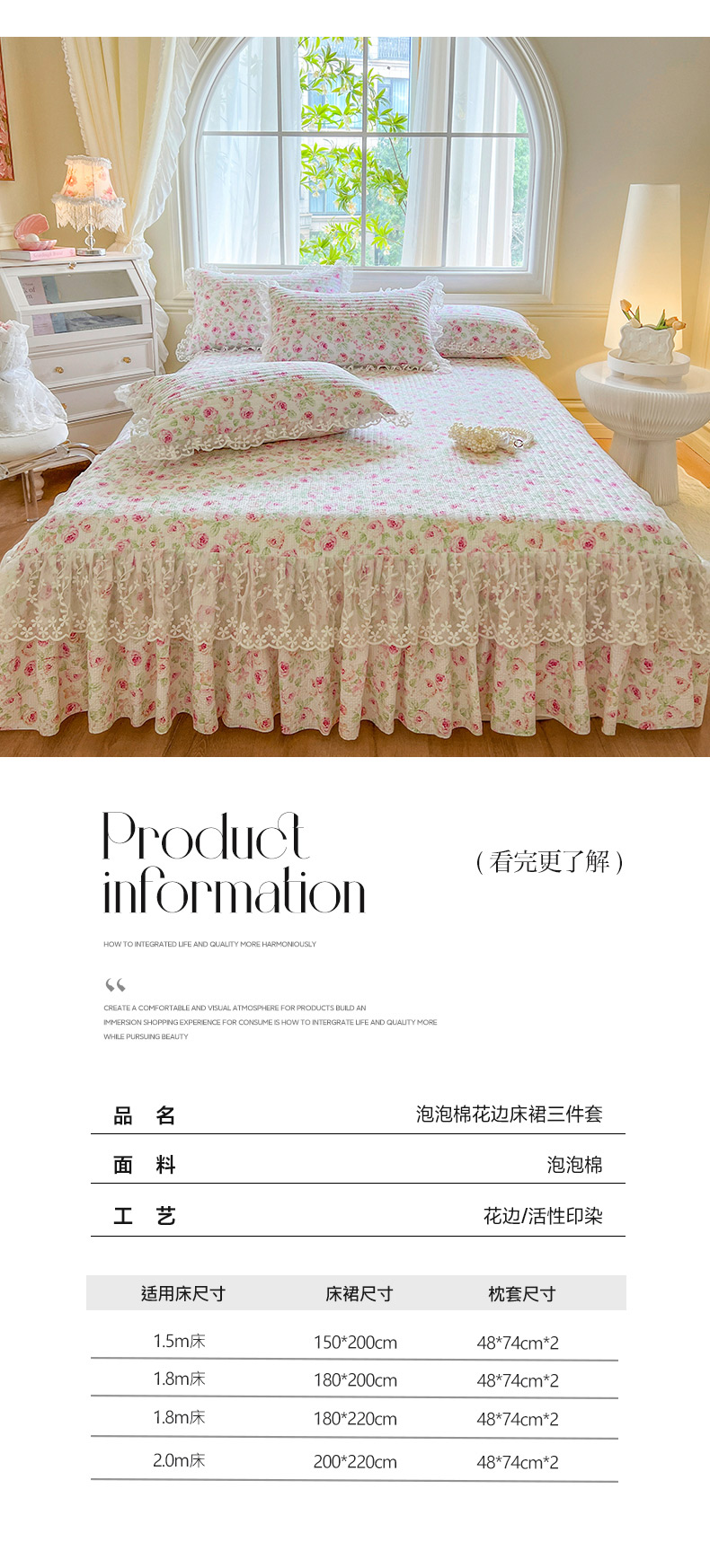 商品名称:(总)网红馆(ck家纺) 2025新款泡泡棉花边床裙三件套