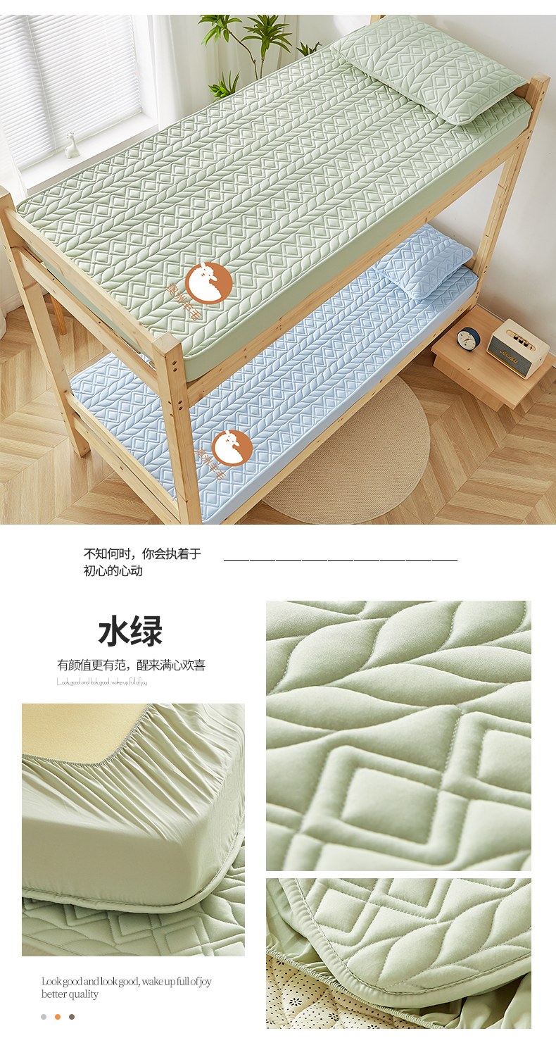 (总)卡派 2025新款小冰熊豆豆席-单人床款,少女粉,绅士灰,水绿,天空蓝,薰衣紫