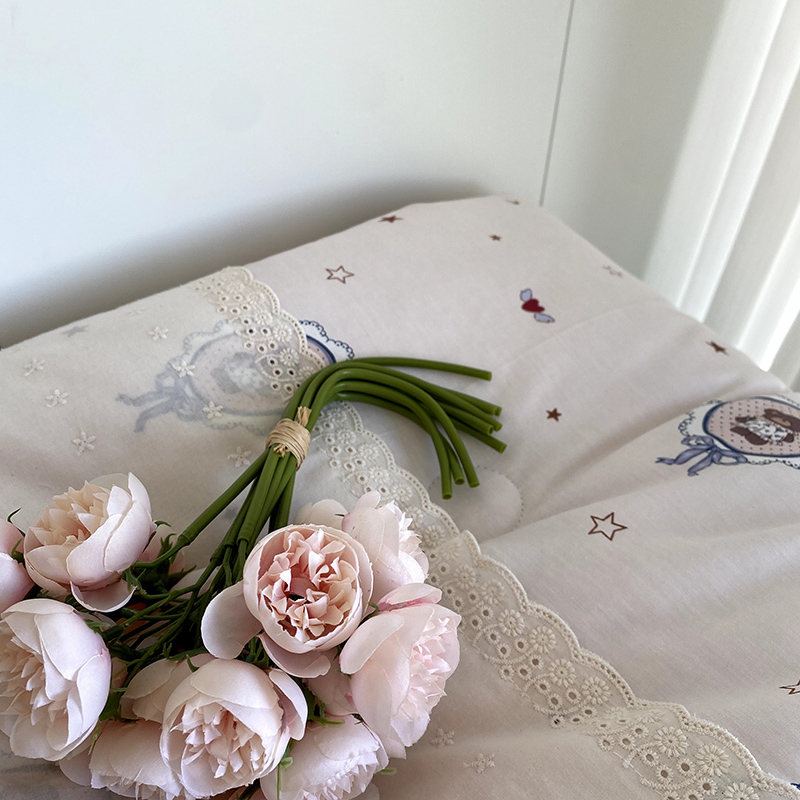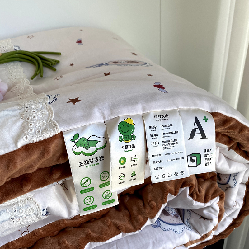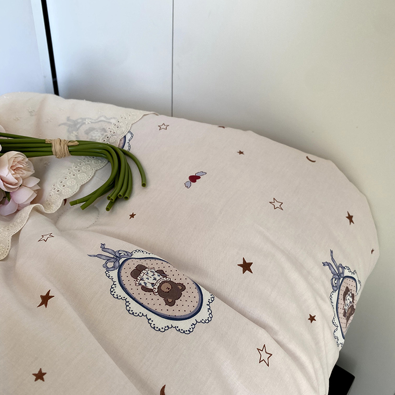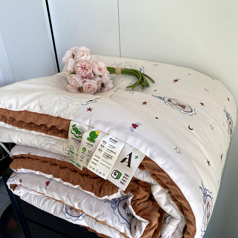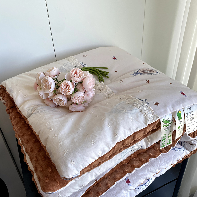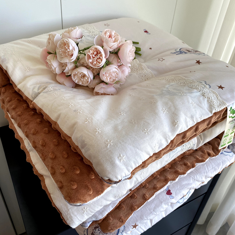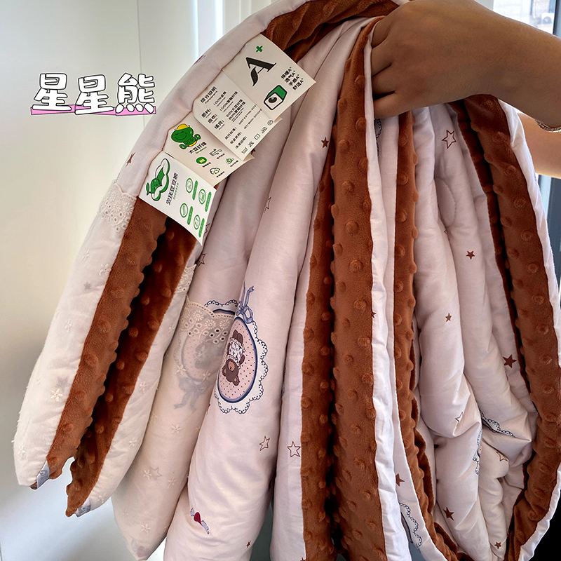 商品名称:2024新款秋冬季棉加豆豆绒法式花边款豆豆被被芯 星星熊