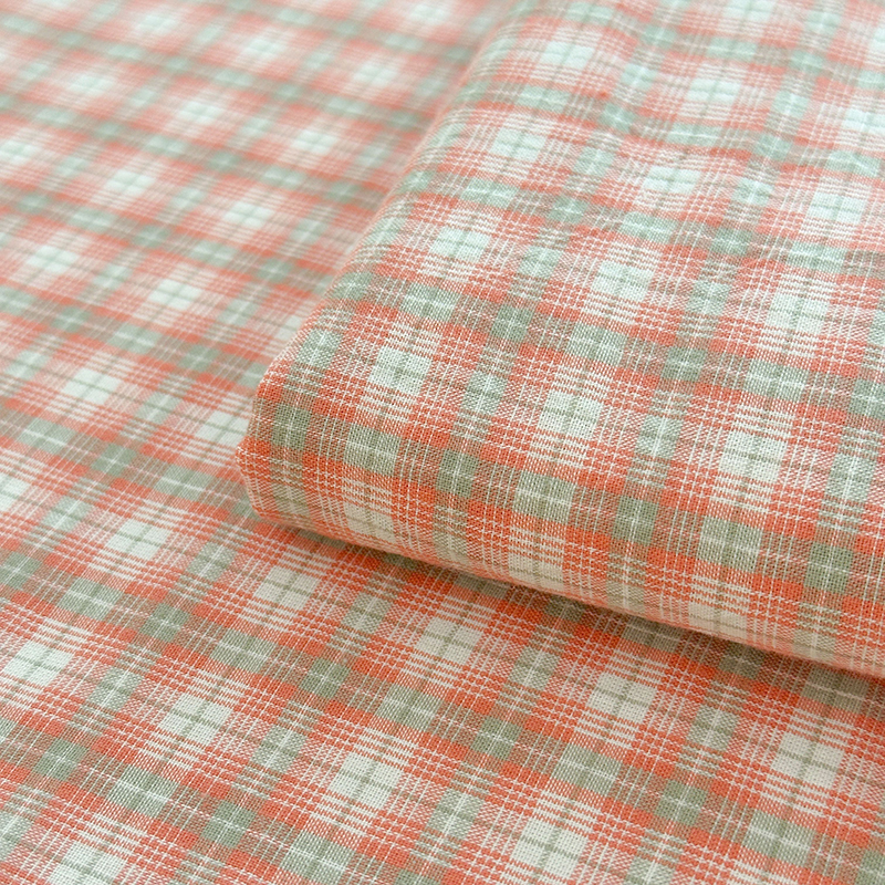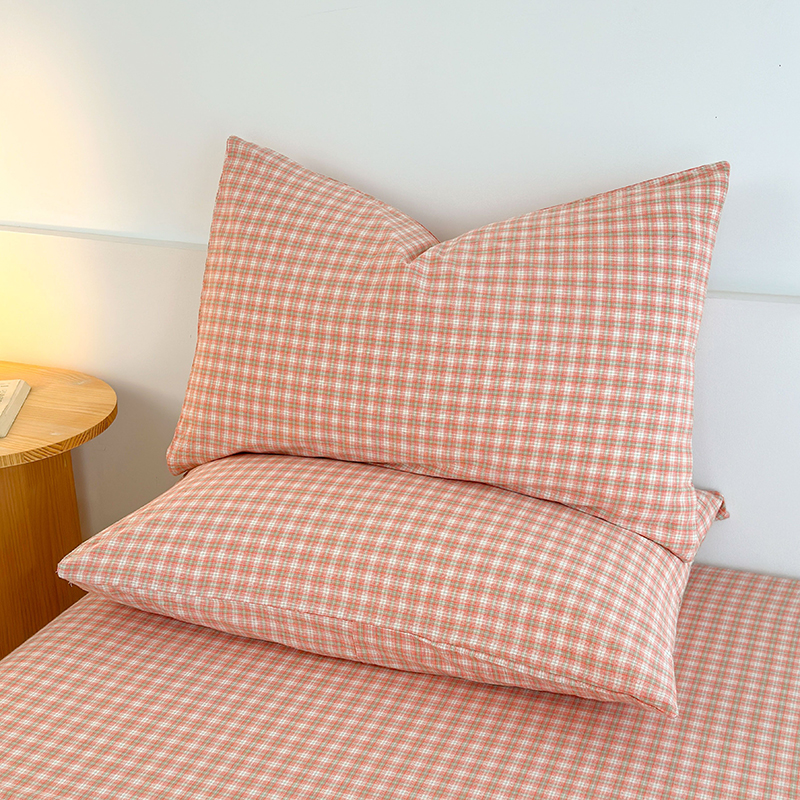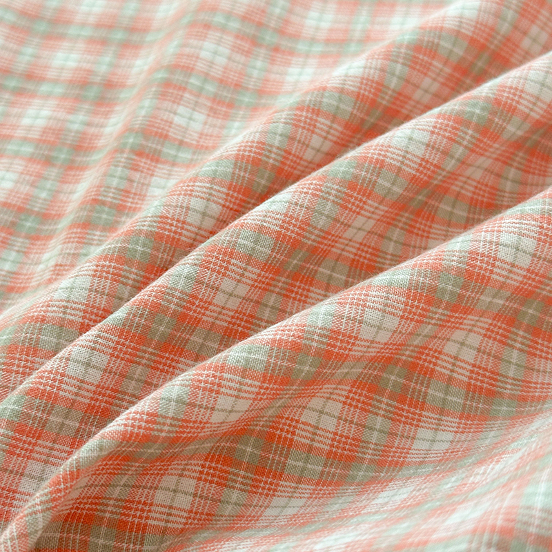 商品名称:慕莎家纺 2024新款亲肤水洗色织床笠三件套 绿粉小格