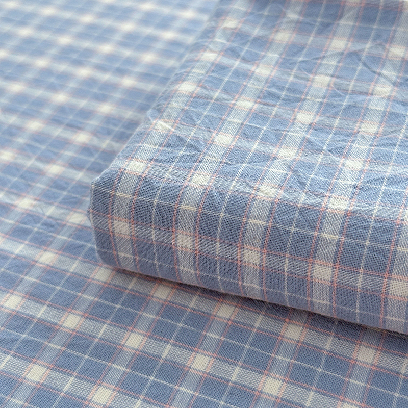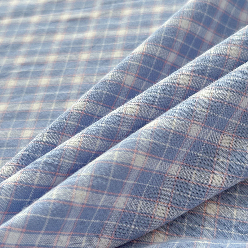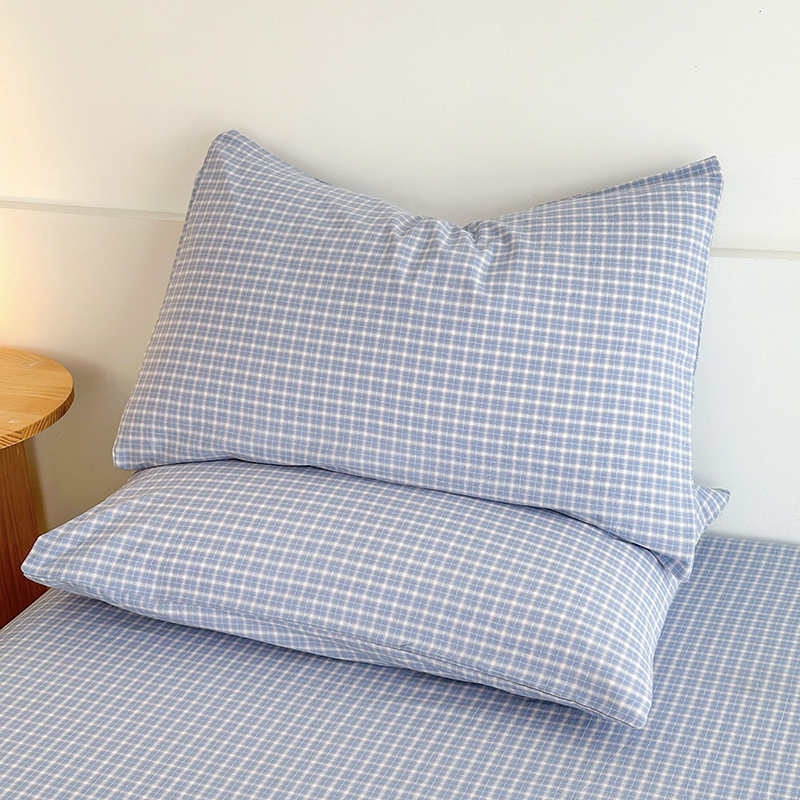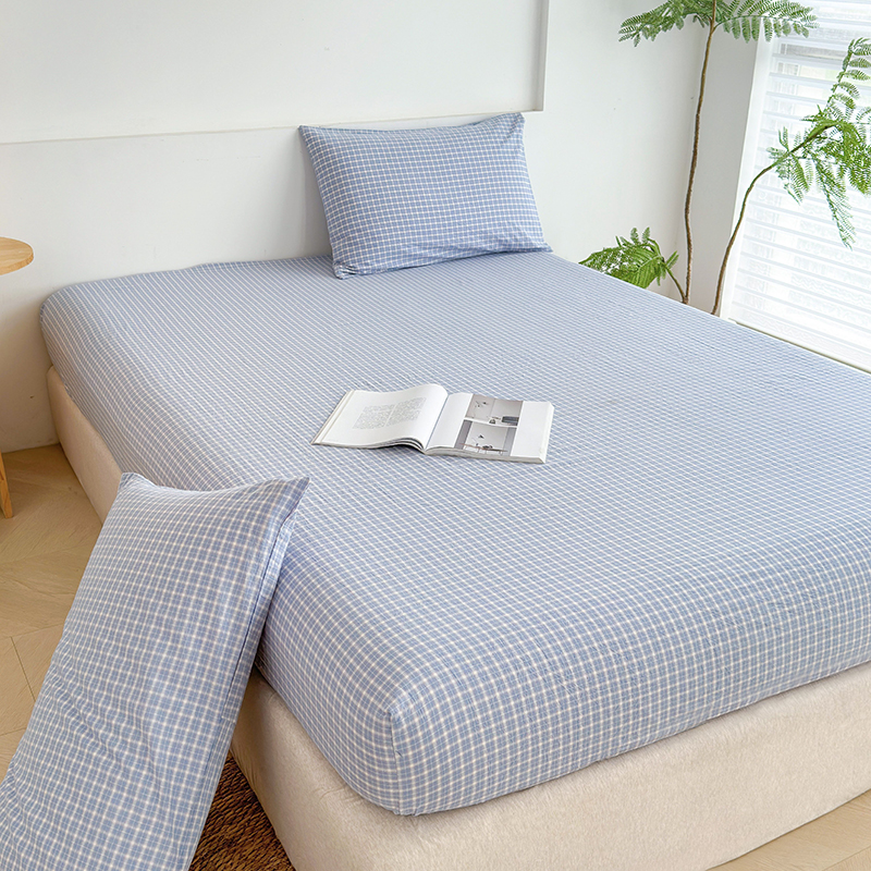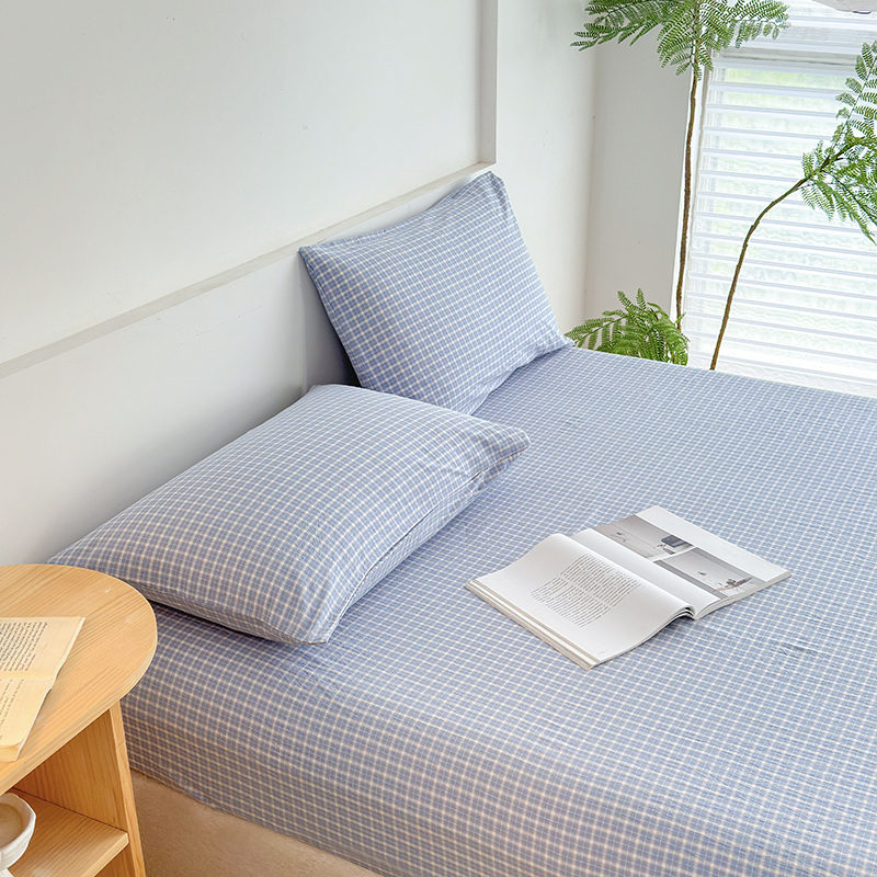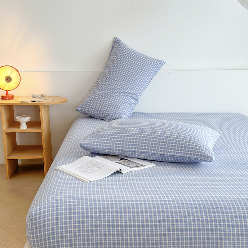 商品名称:慕莎家纺 2024新款亲肤水洗色织床笠三件套 蓝粉小格