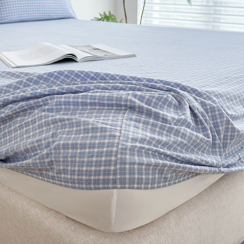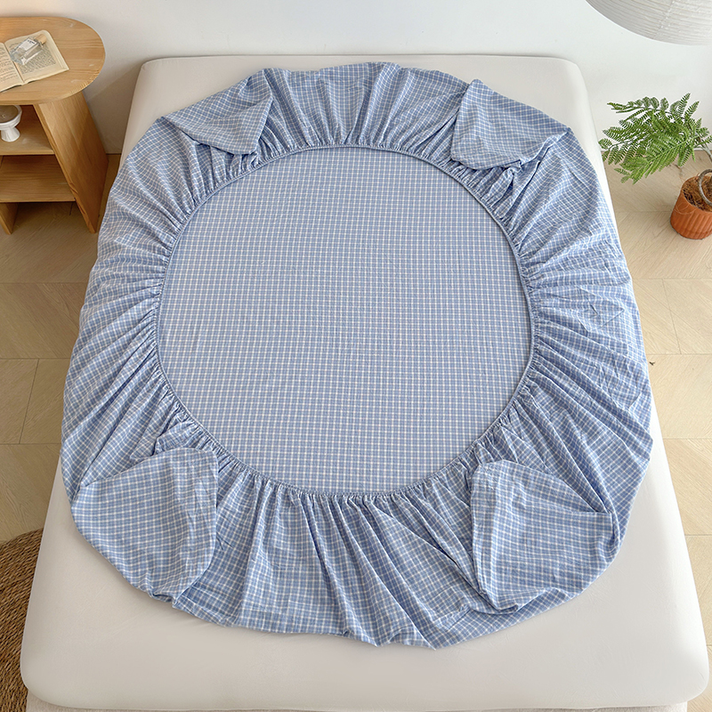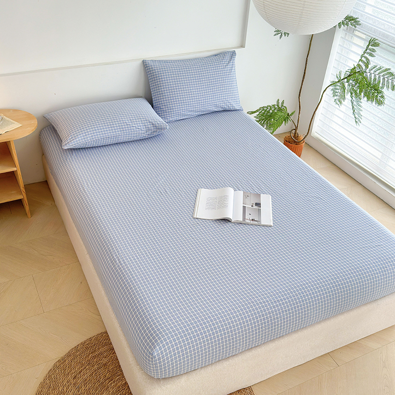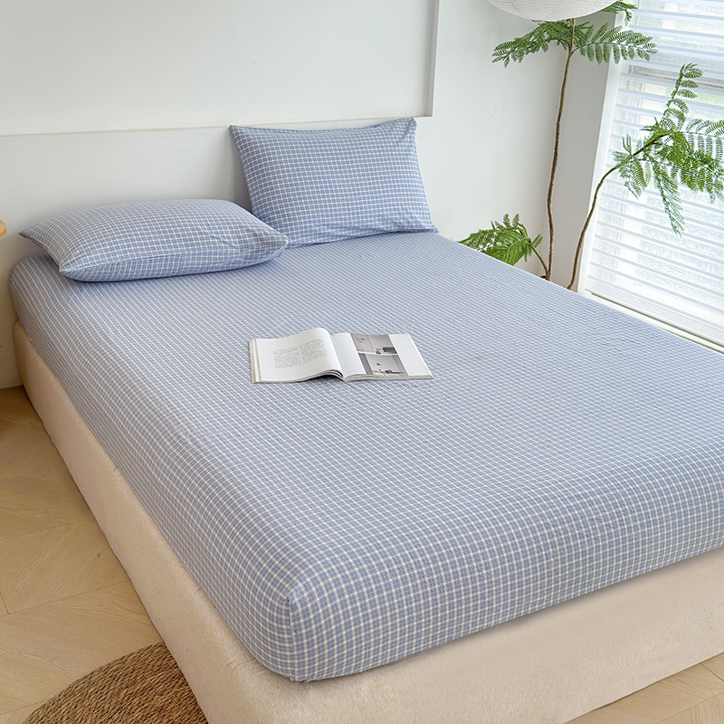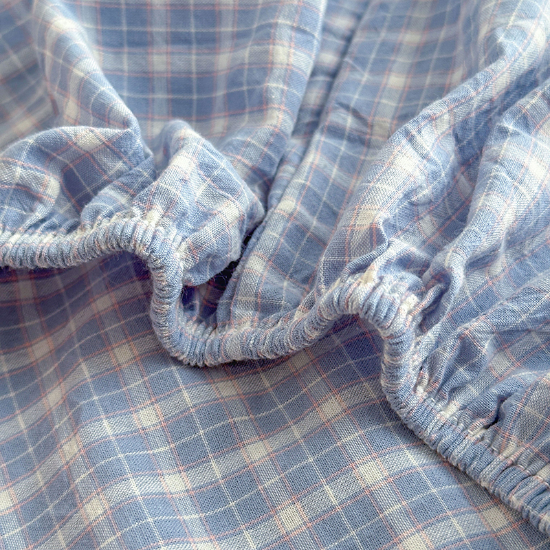 慕莎家纺 2024新款亲肤水洗色织床笠三件套 蓝粉小格