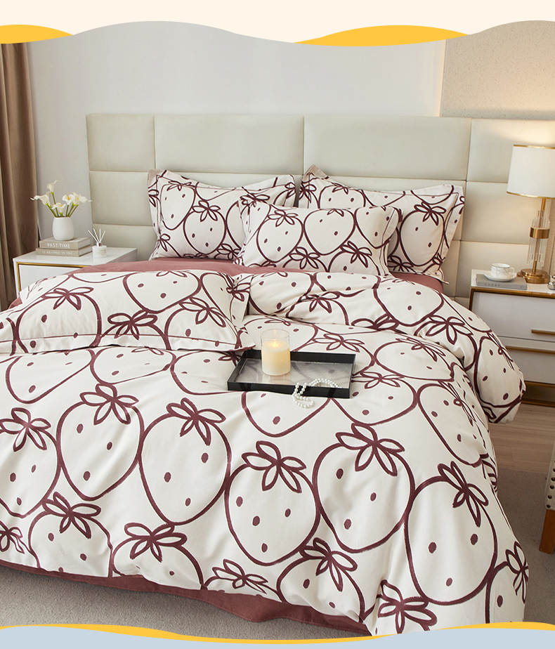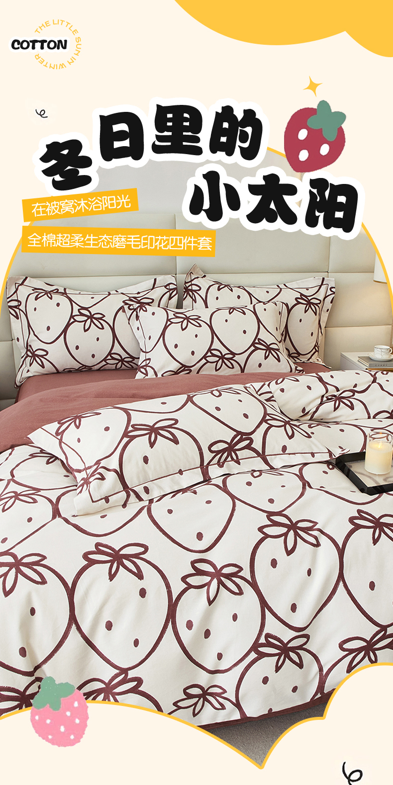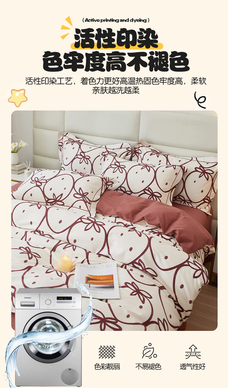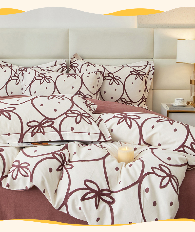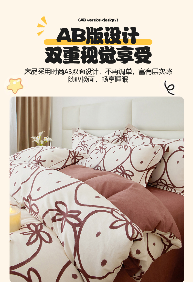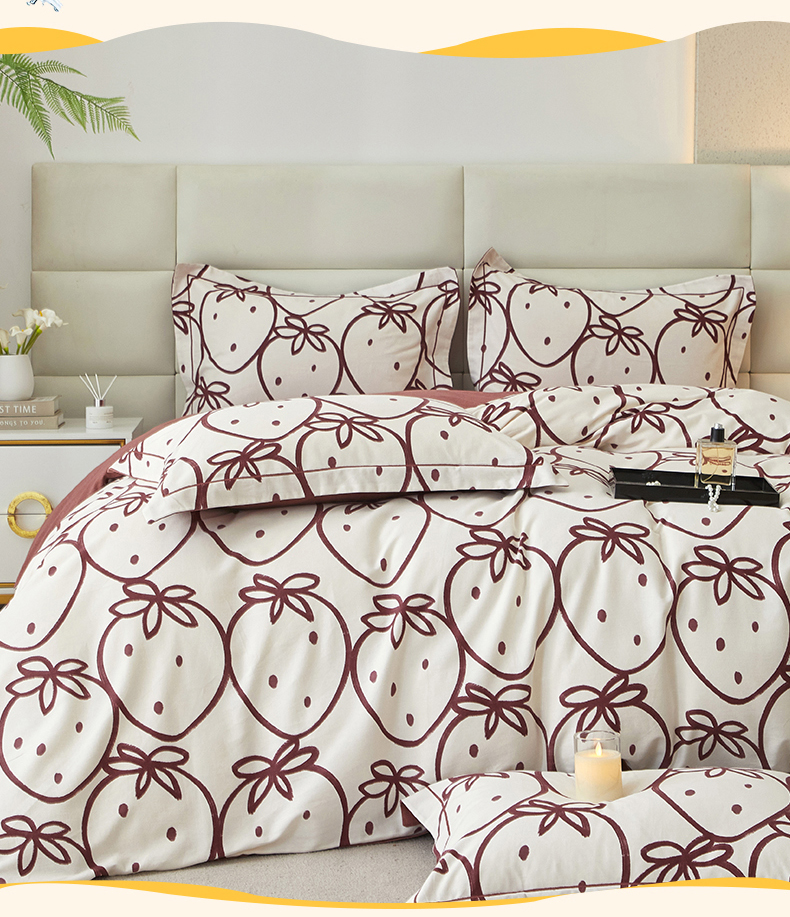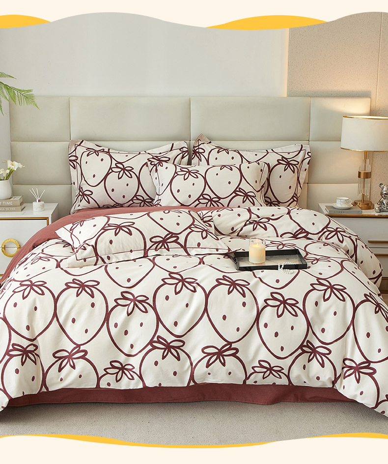当前位置: 91家纺网 > 商品网购 > 床品套件 > 四件套 > 磨毛活性四件套 > 曼秀琳 2024新款全棉超柔生态磨毛四件套(32*21支) 莓有烦恼-红