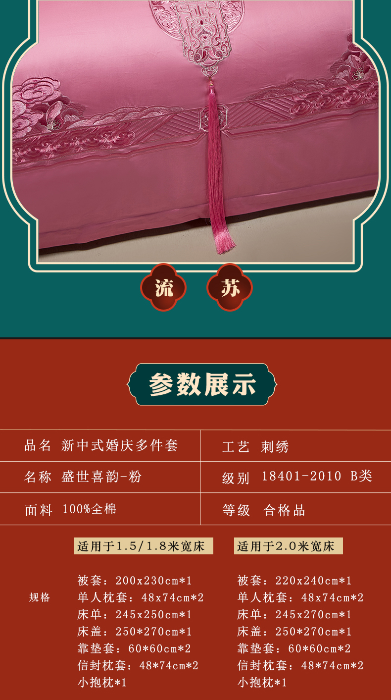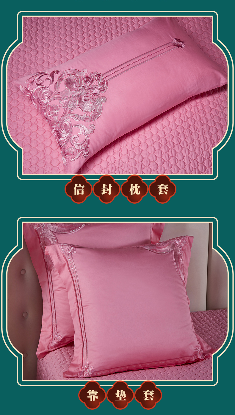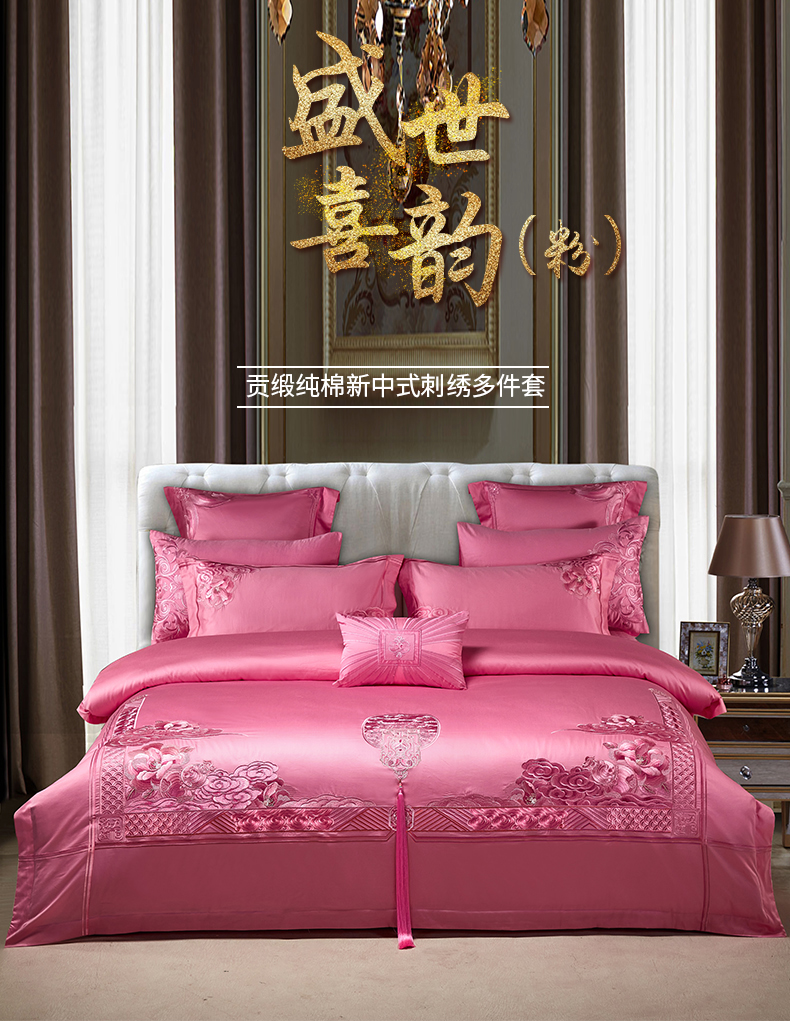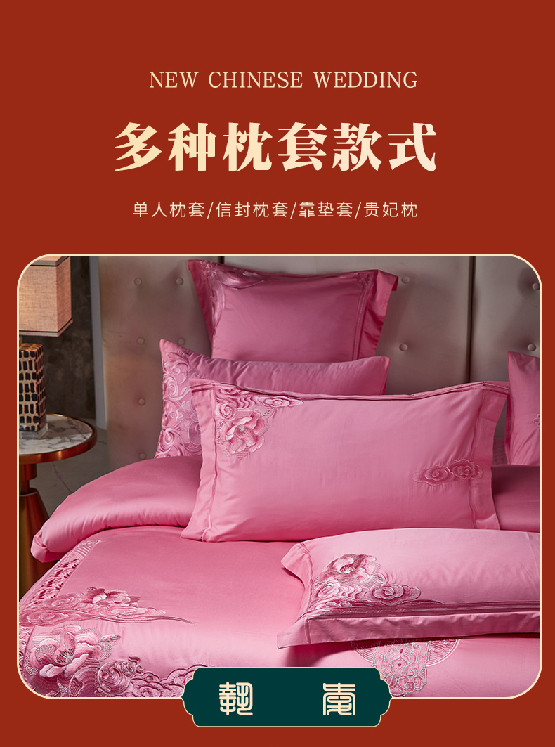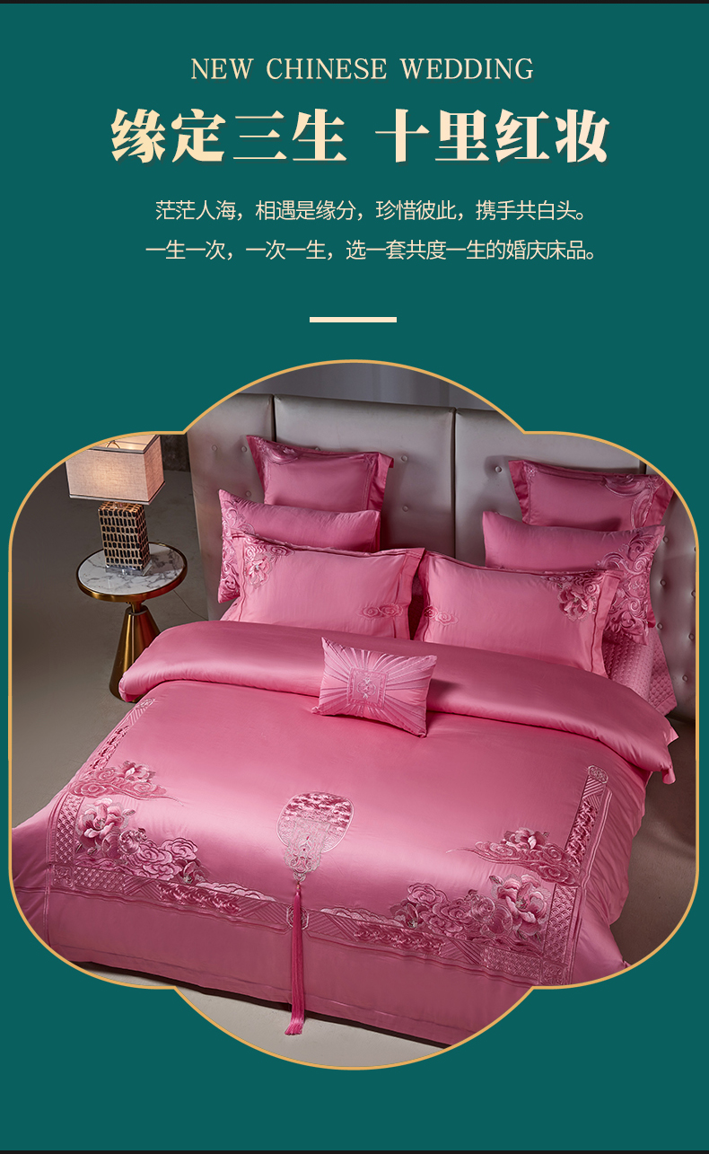 当前位置: 91家纺网 > 商品网购 > 床品套件 > 四件套 > 婚庆四件套 > 宏羽纺家纺 2024新款高支高密纯棉提花婚庆套件系列(控价680)盛世喜韵-粉