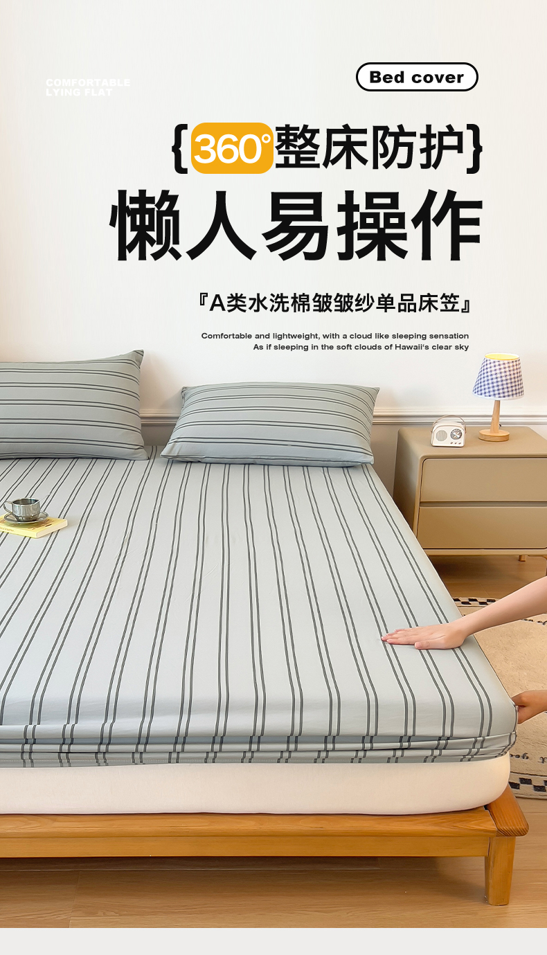 多品 2024新款水洗棉皱皱纱单品床笠 律动