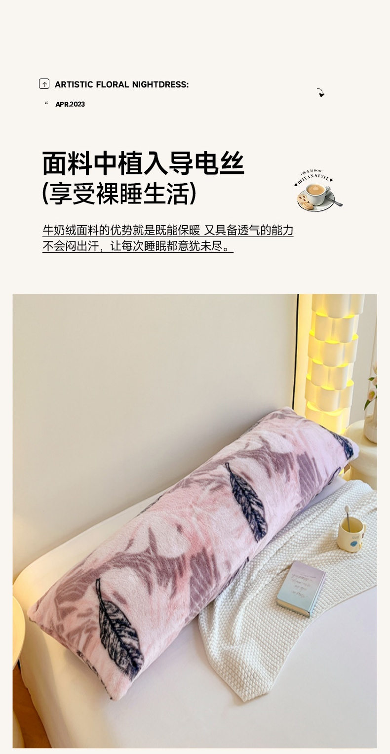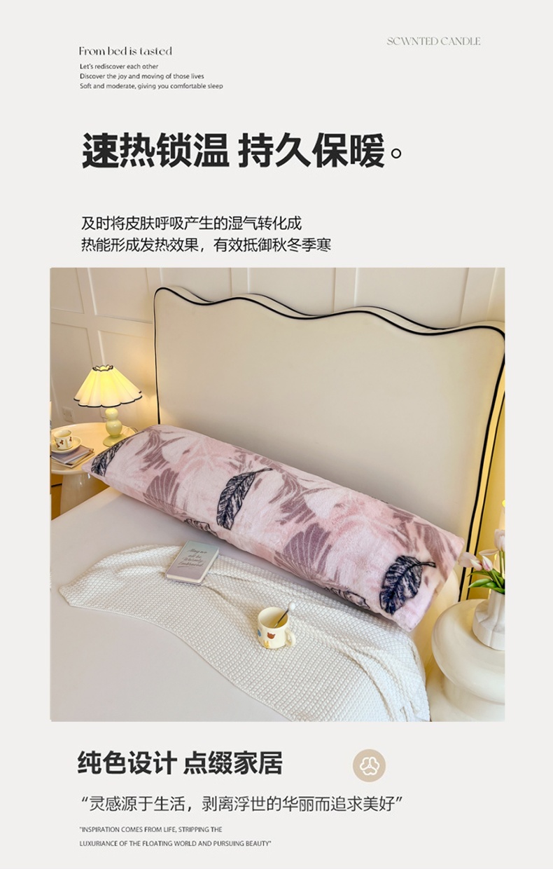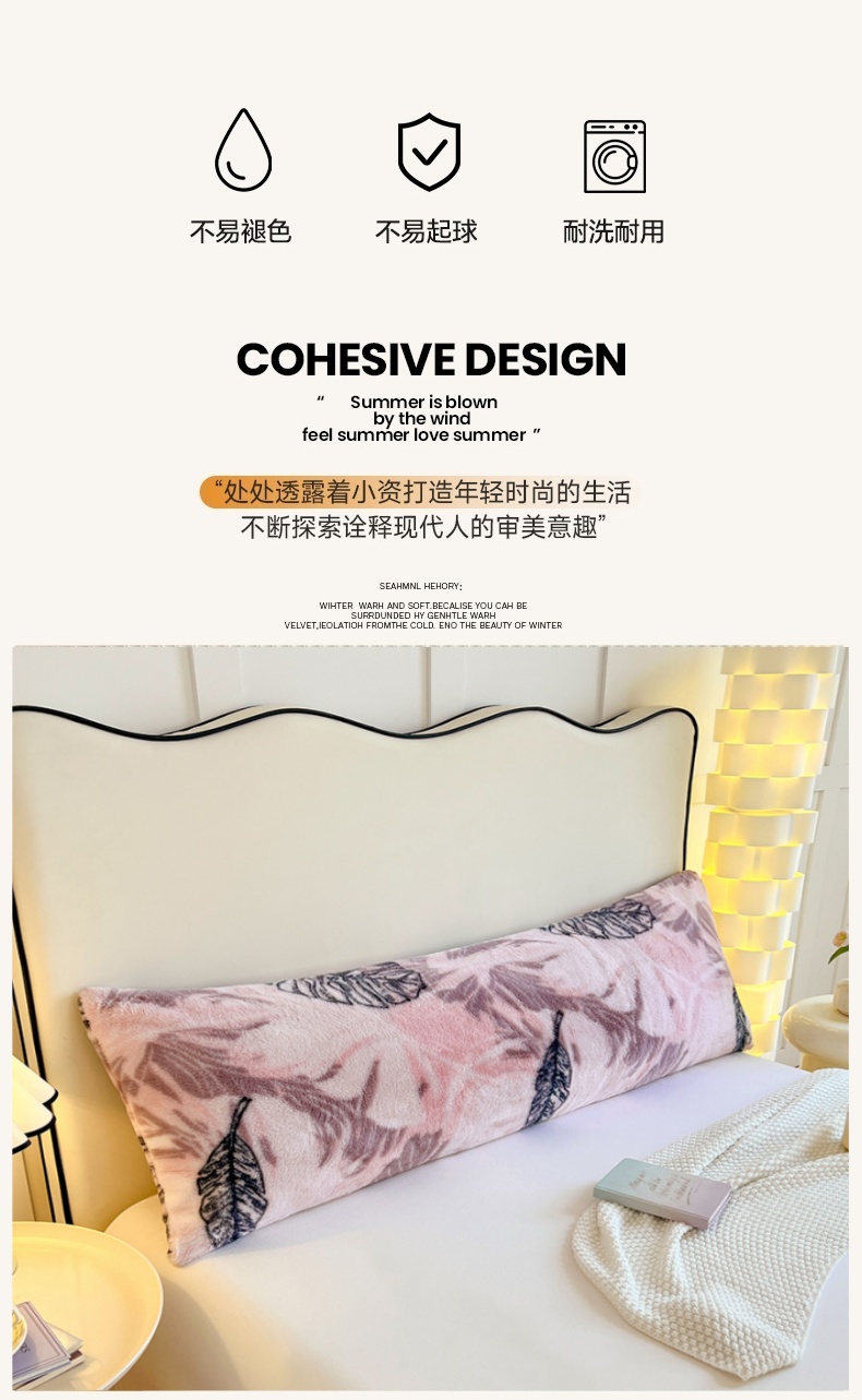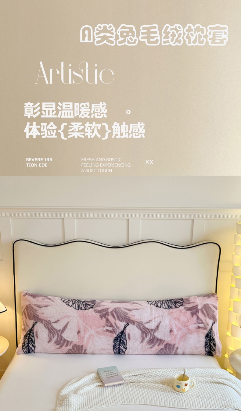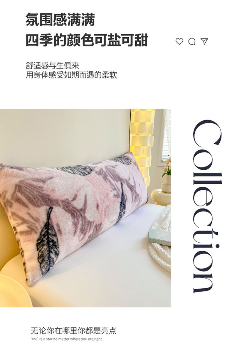 商品名称:梦舒羽 2025新款兔毛绒印花双人枕套牛奶绒加长枕芯套雪花绒枕头套一叶知秋