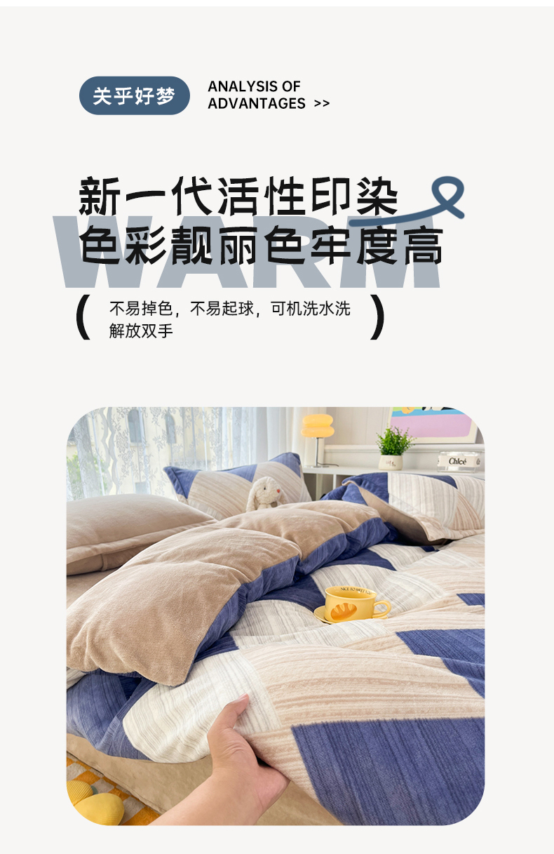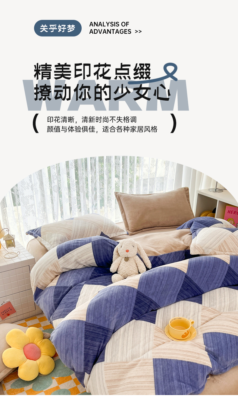 商品名称:青螺家纺 2024加厚高克重保暖爆款小清新牛奶绒印花双面绒单被套 晨筱