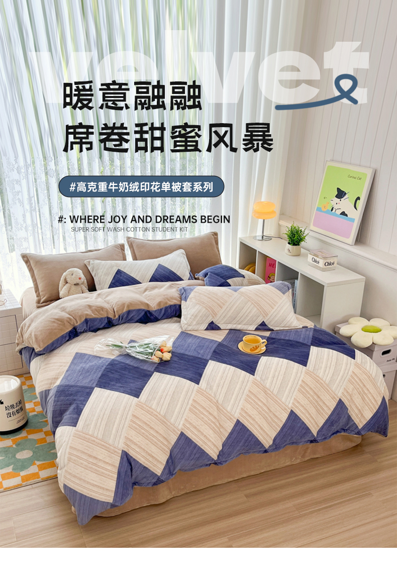 青螺家纺 2024加厚高克重保暖爆款小清新牛奶绒印花双面绒单被套 晨筱
