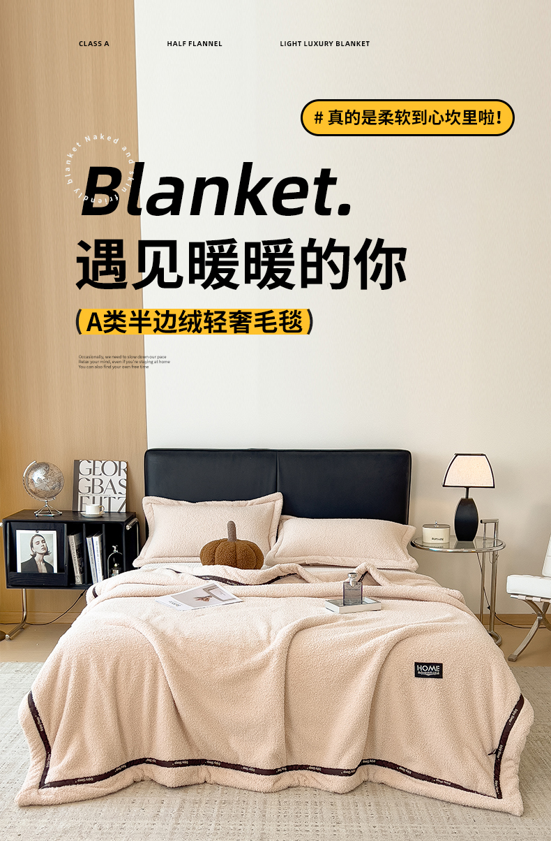 当前位置: 91家纺网 > 商品网购 > 毛毯休闲毯绒毯 > 毛毯 > 慕木家纺 2025新款纯色A类轻奢半边绒多功能毛毯直播爆款 奶油咖