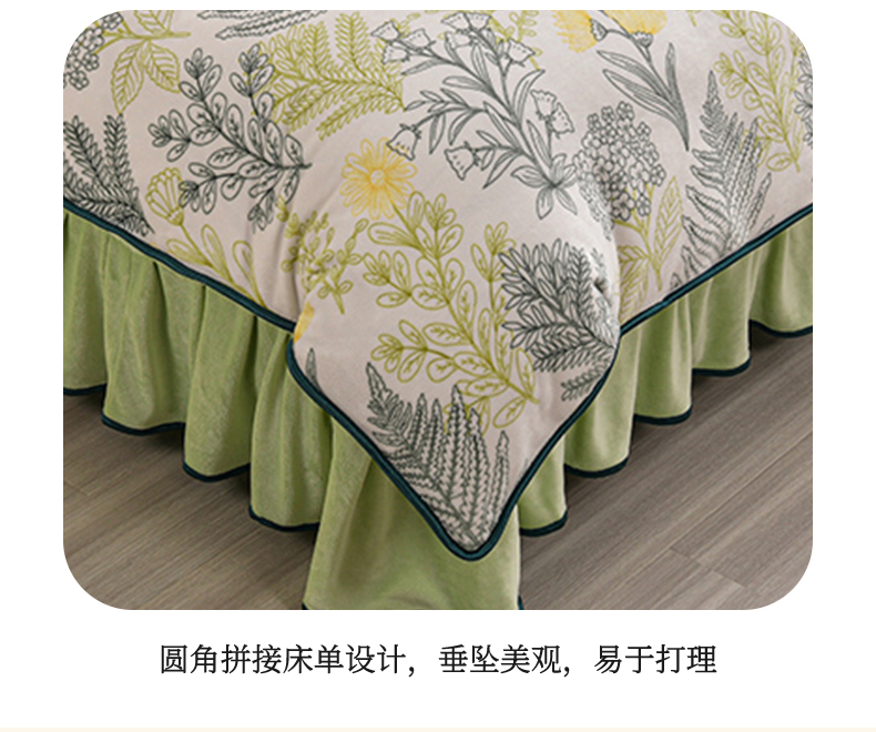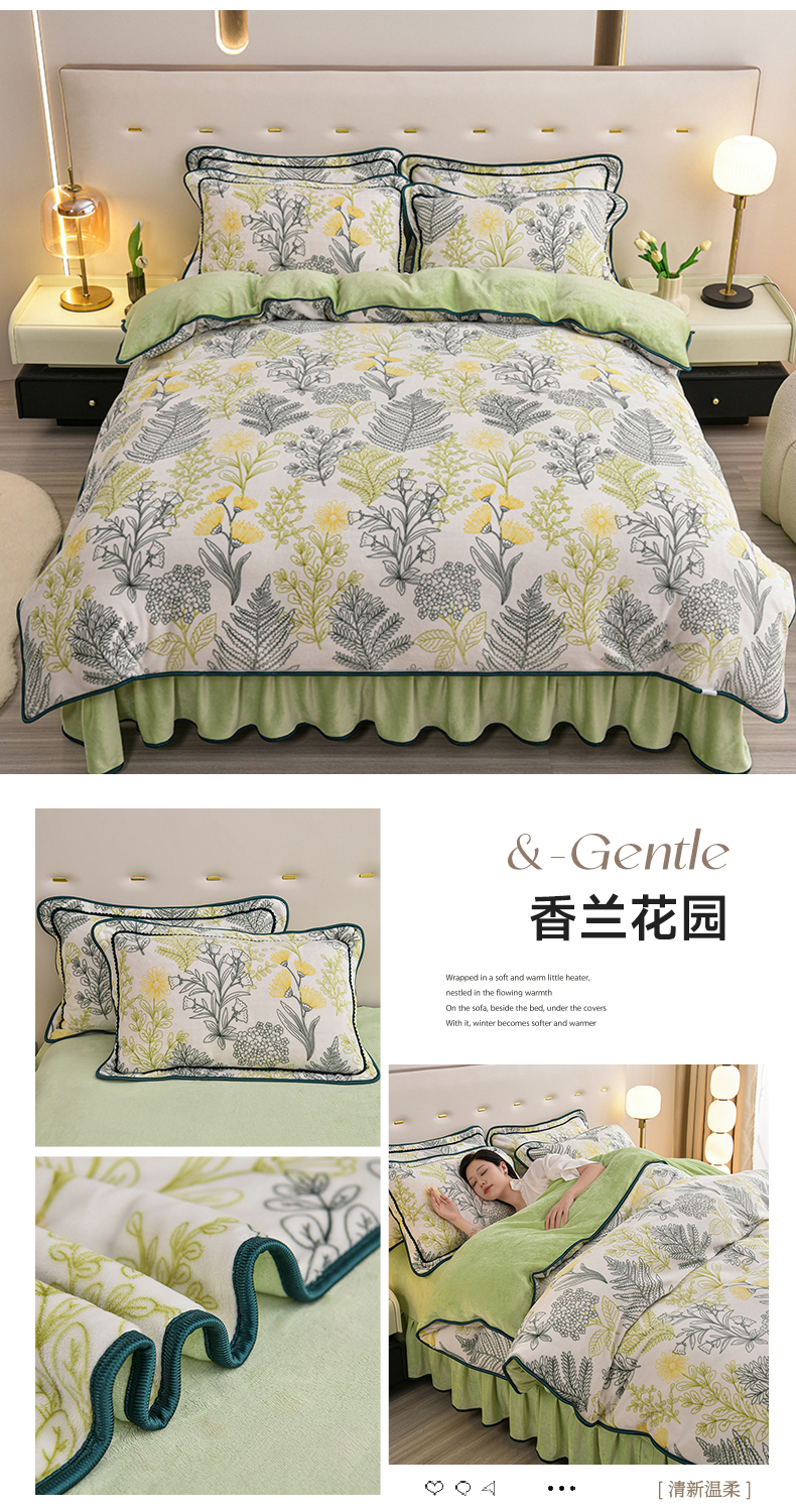 商品名称:赫本家纺 2025新品8-9斤爆品牛奶绒四件套床裙款金雕绒法莱绒四套件香兰花园