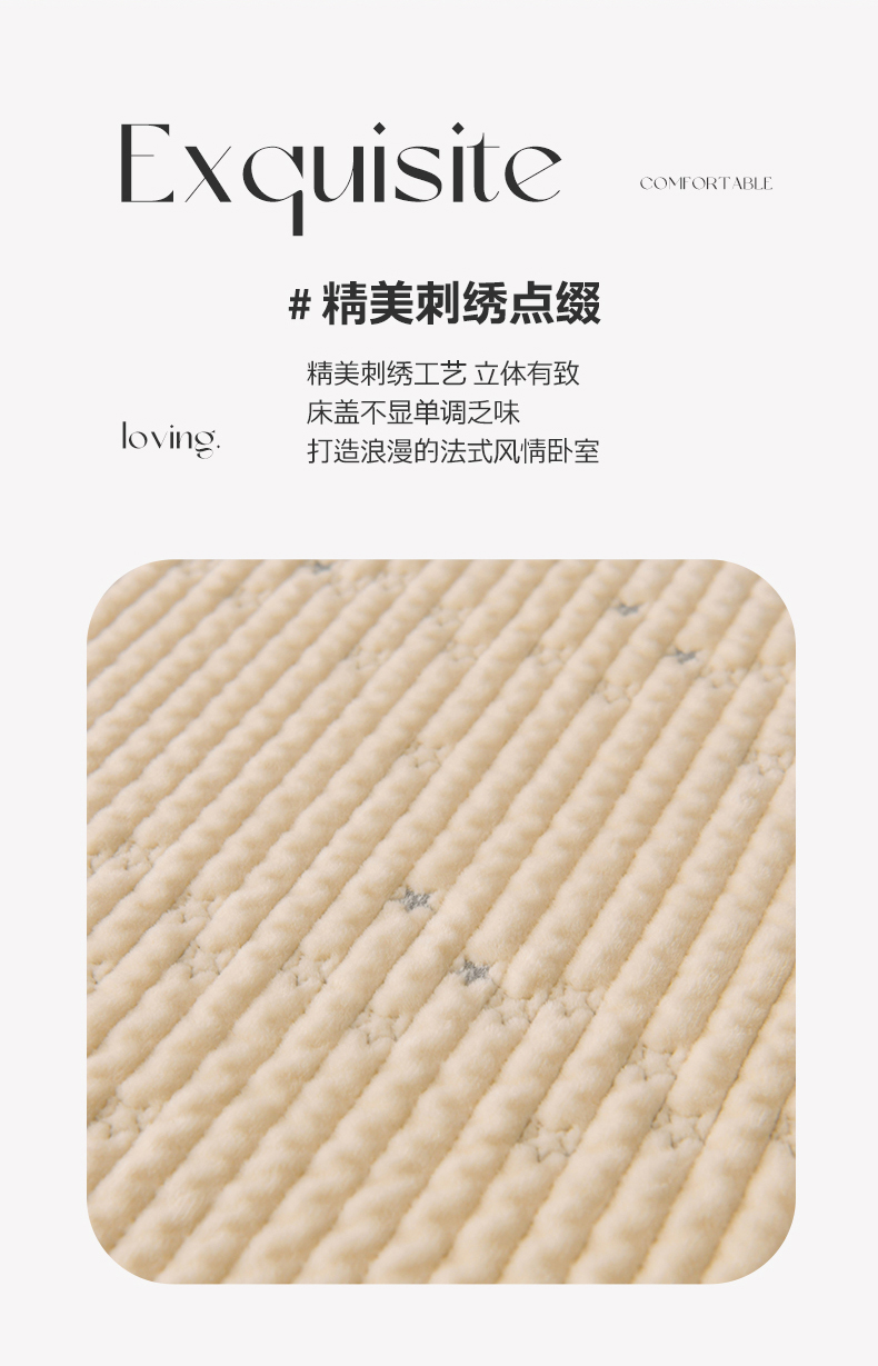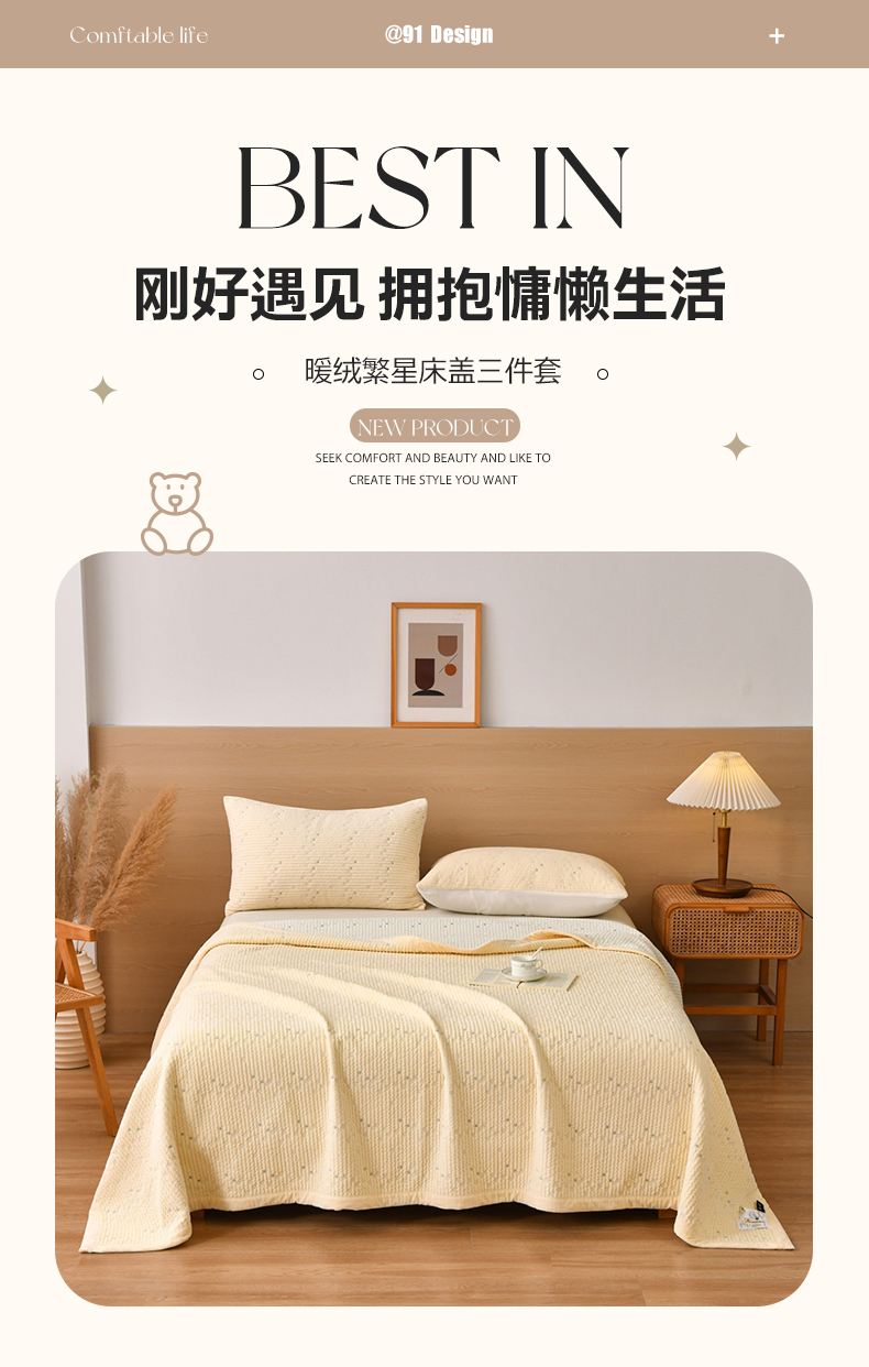 有货 2024新款消光透气暖绒繁星床盖三件套 绒-繁星白
