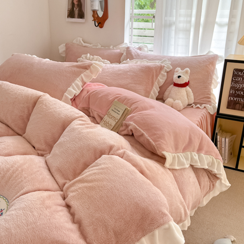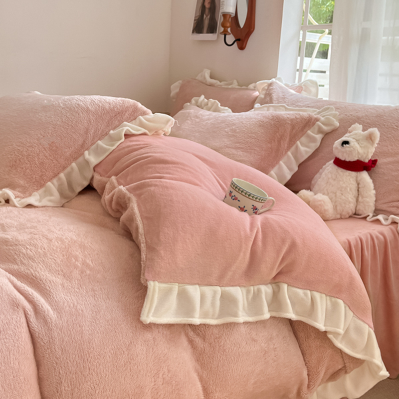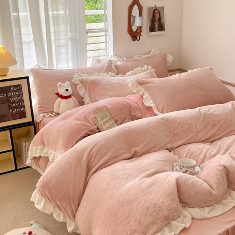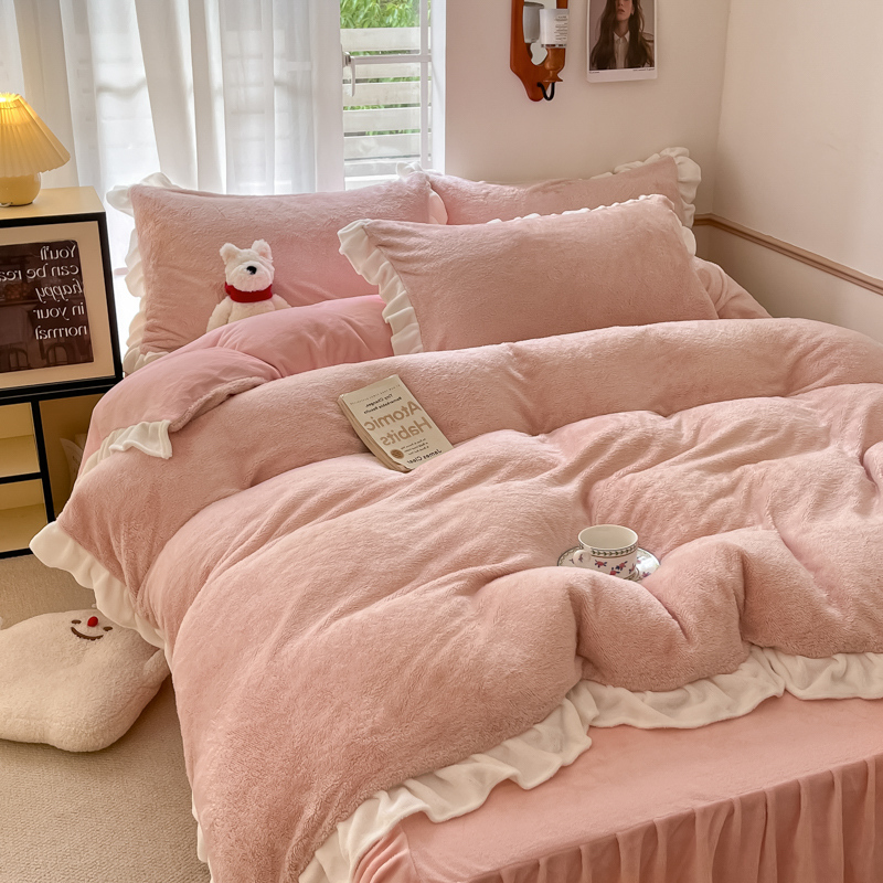 当前位置: 91家纺网 > 商品网购 > 床品套件 > 四件套 > 牛奶绒四件套 > 星座家纺 2025新款牛奶绒花边床裙款四件套 床裙款-豆沙粉+樱花粉