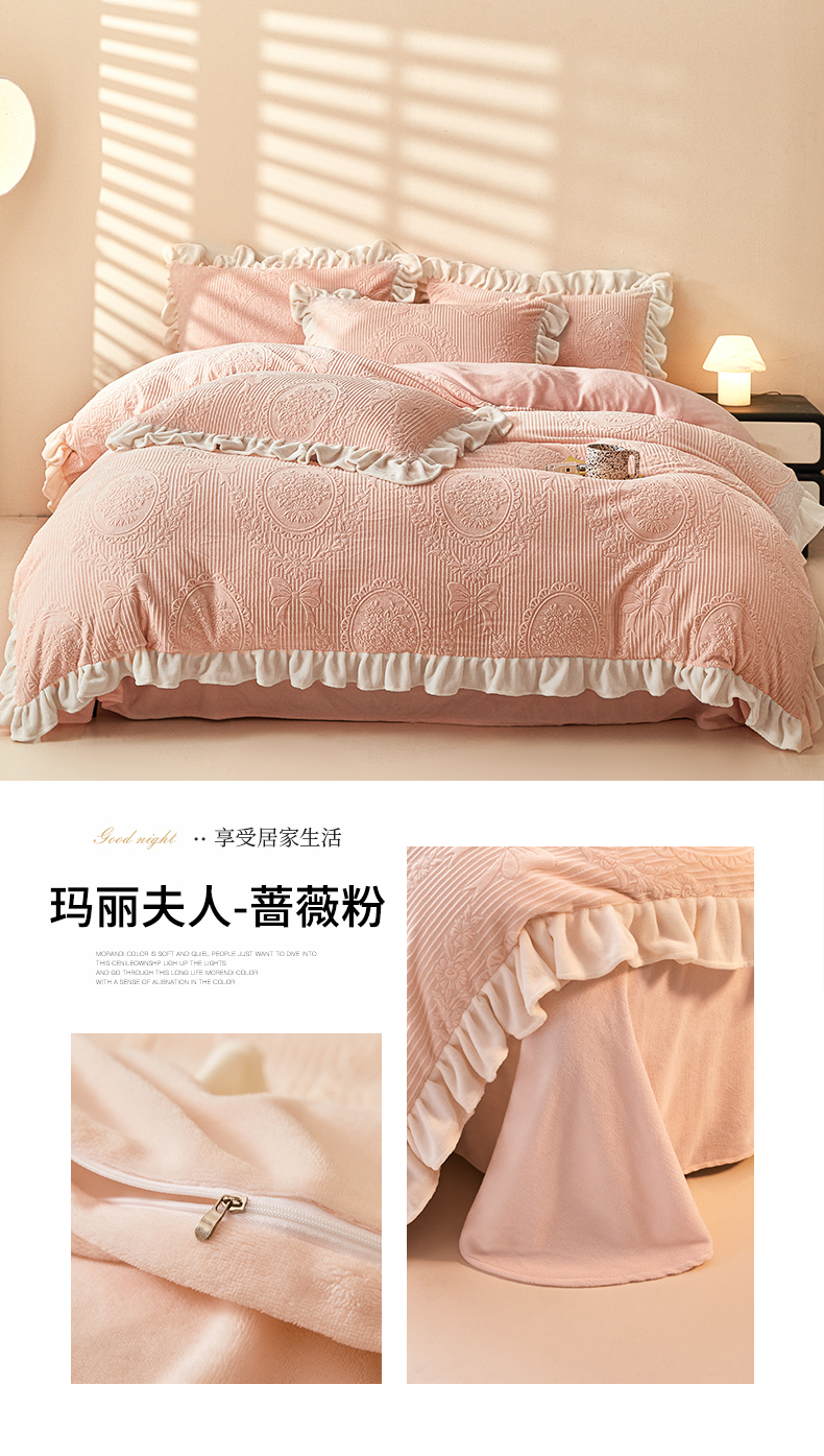 商品名称:(总)2024新保暖-秋冬A类韩版婴肤绒提花四件套-玛丽夫人系列