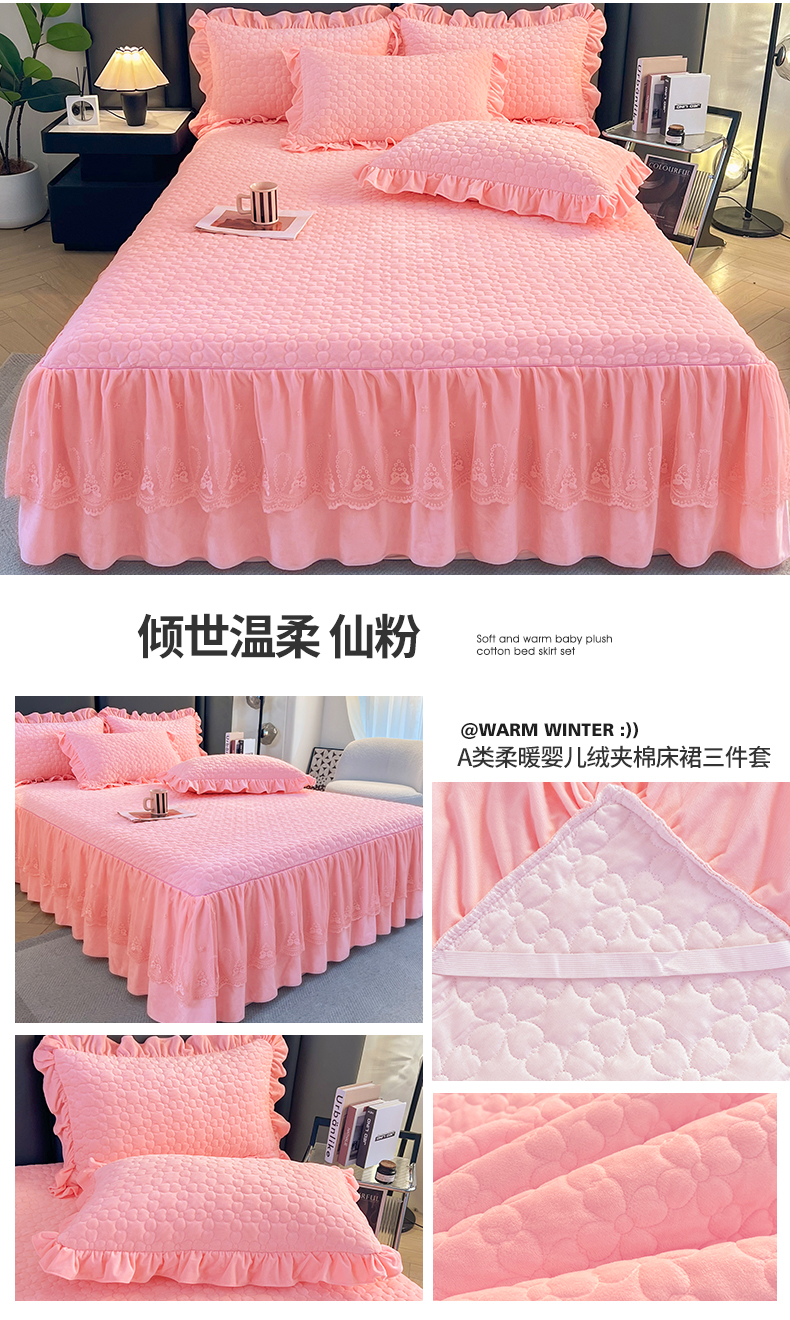 (总)2024新款A类柔暖婴儿绒夹棉床裙三件套-倾世温柔