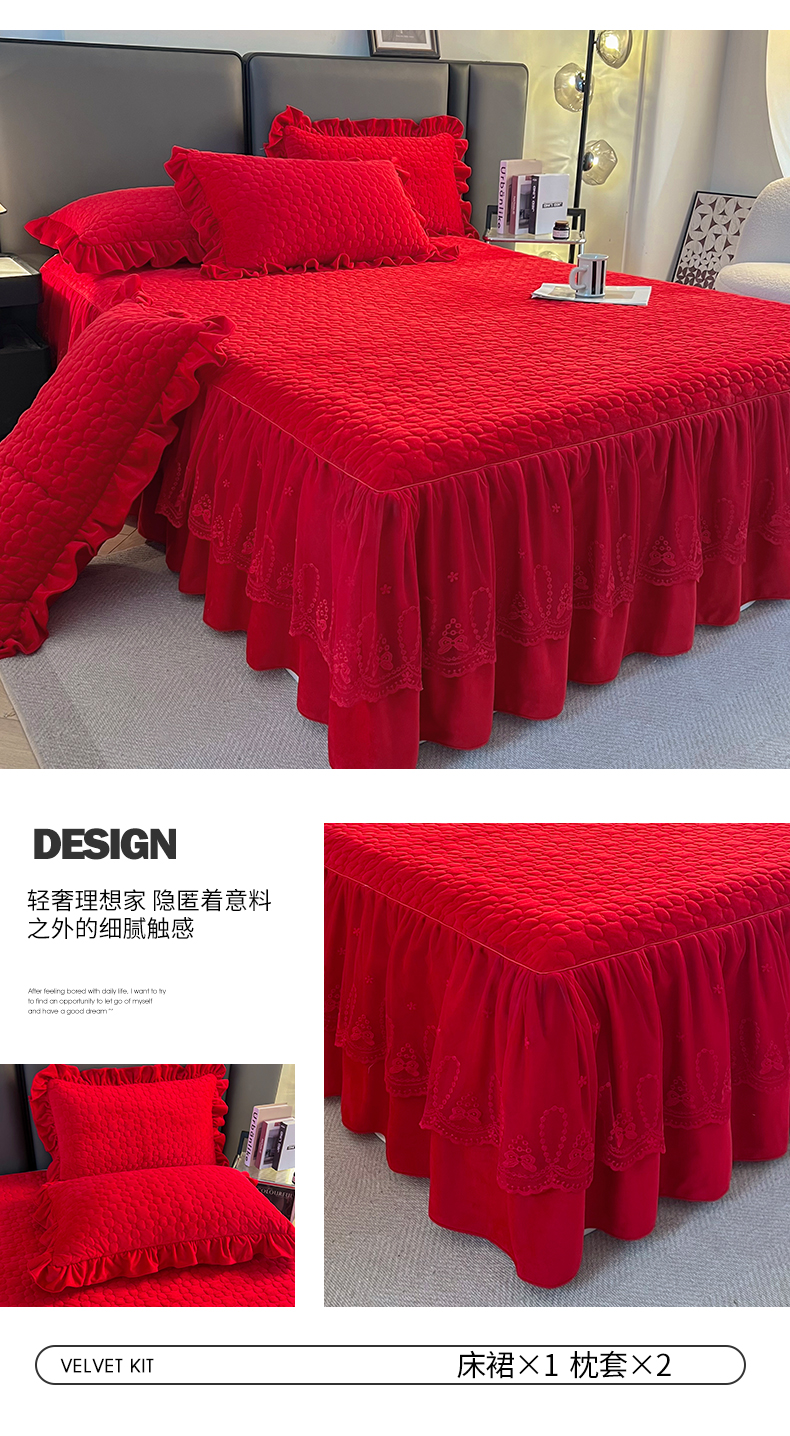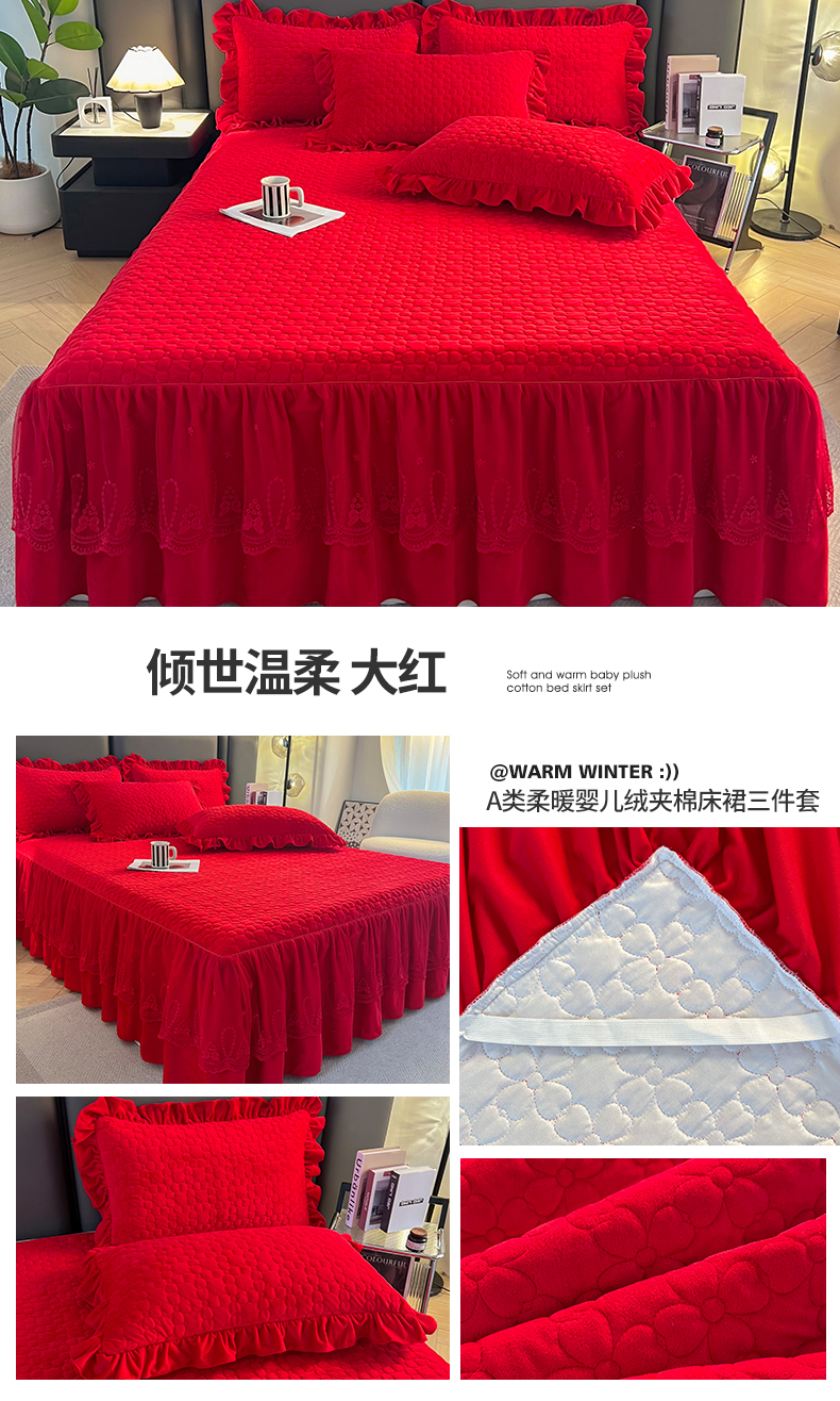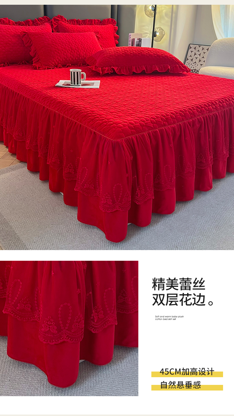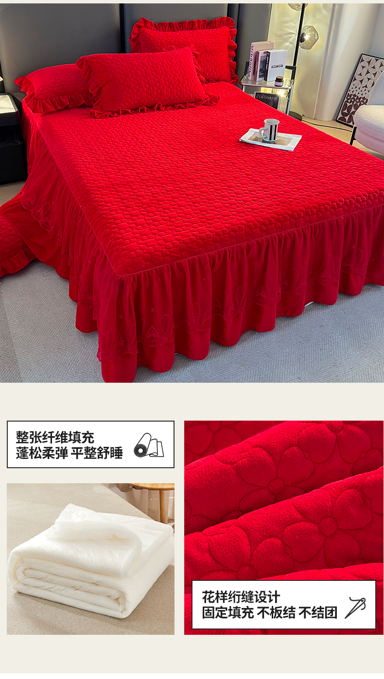 (总)恒爱 2022秋冬水晶绒翩翩花舞夹棉床裙四件套,大红色,豆沙红,橄榄绿,公主粉,桔色,咖啡色,孔雀绿,拉菲红,罗兰紫,玫红色,美人玉,米白色,米驼色,抹茶绿,浅灰色,紫色
