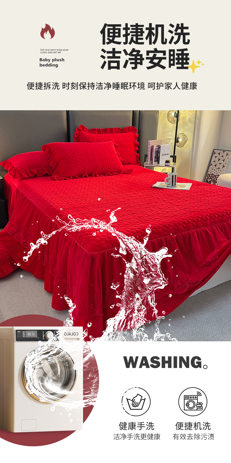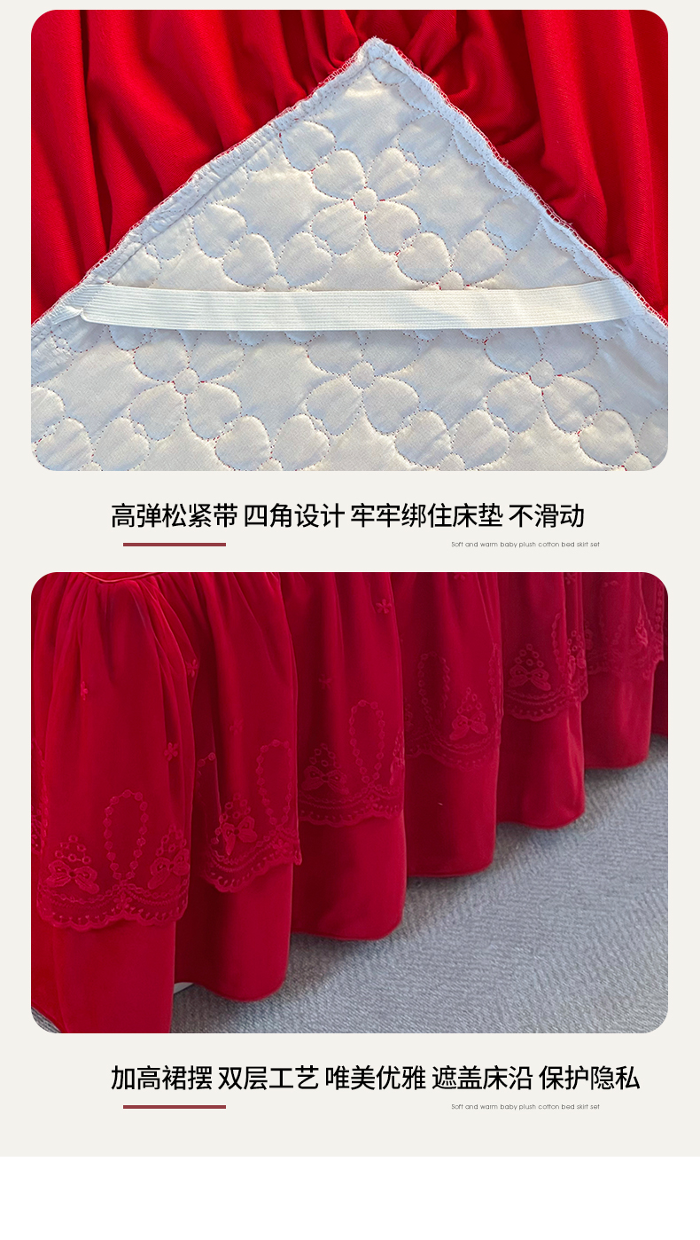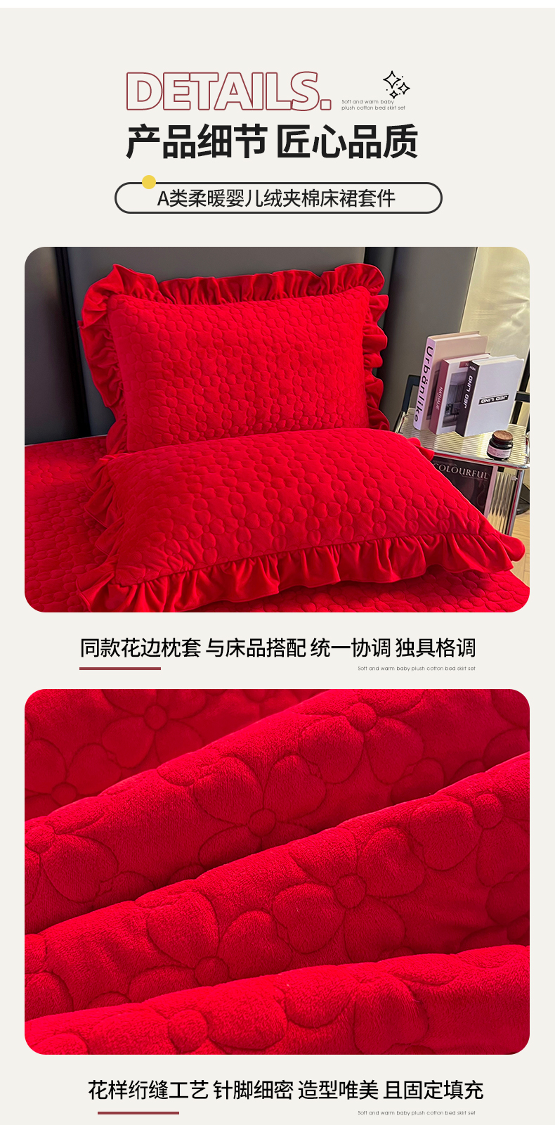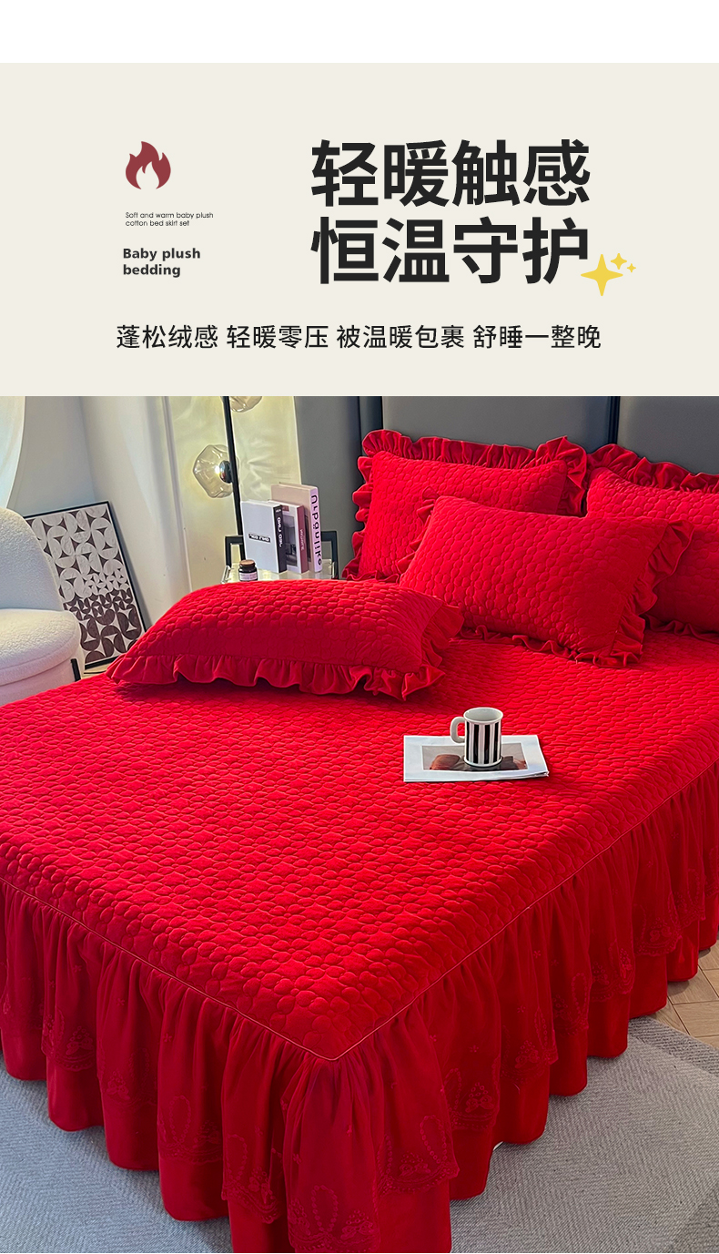 (总)恒爱 2022秋冬水晶绒翩翩花舞夹棉床裙四件套,大红色,豆沙红,橄榄绿,公主粉,桔色,咖啡色,孔雀绿,拉菲红,罗兰紫,玫红色,美人玉,米白色,米驼色,抹茶绿,浅灰色,紫色