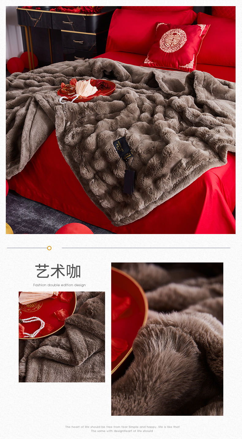 商品名称:2025新款仿皮草摩登艺术毛毯毯子子家用毛毛毯毯子四季盖毛毯毯子 艺术咖