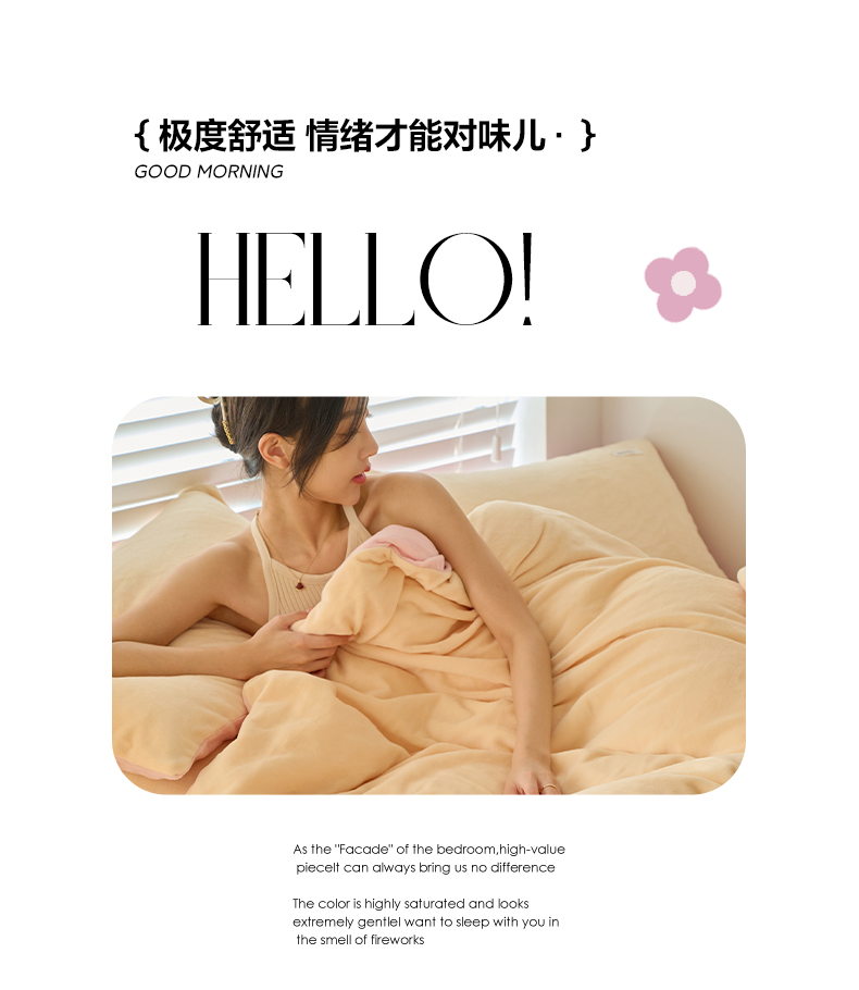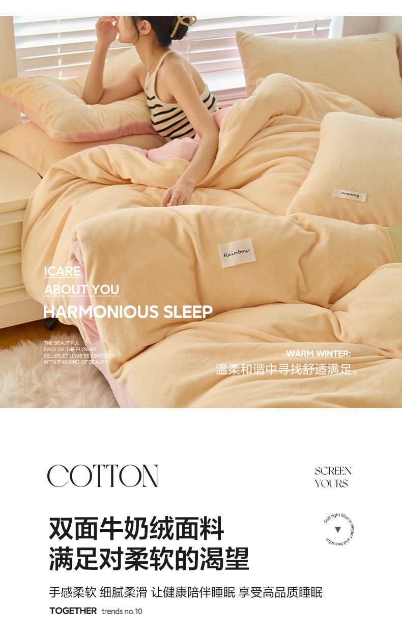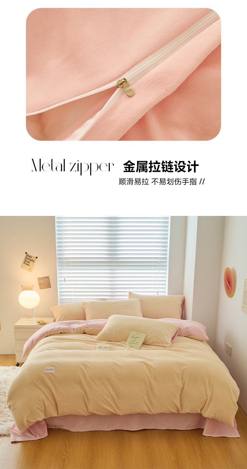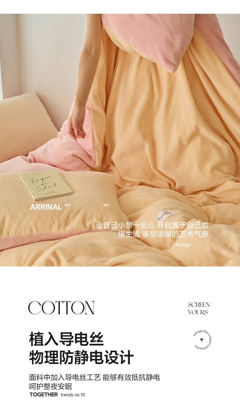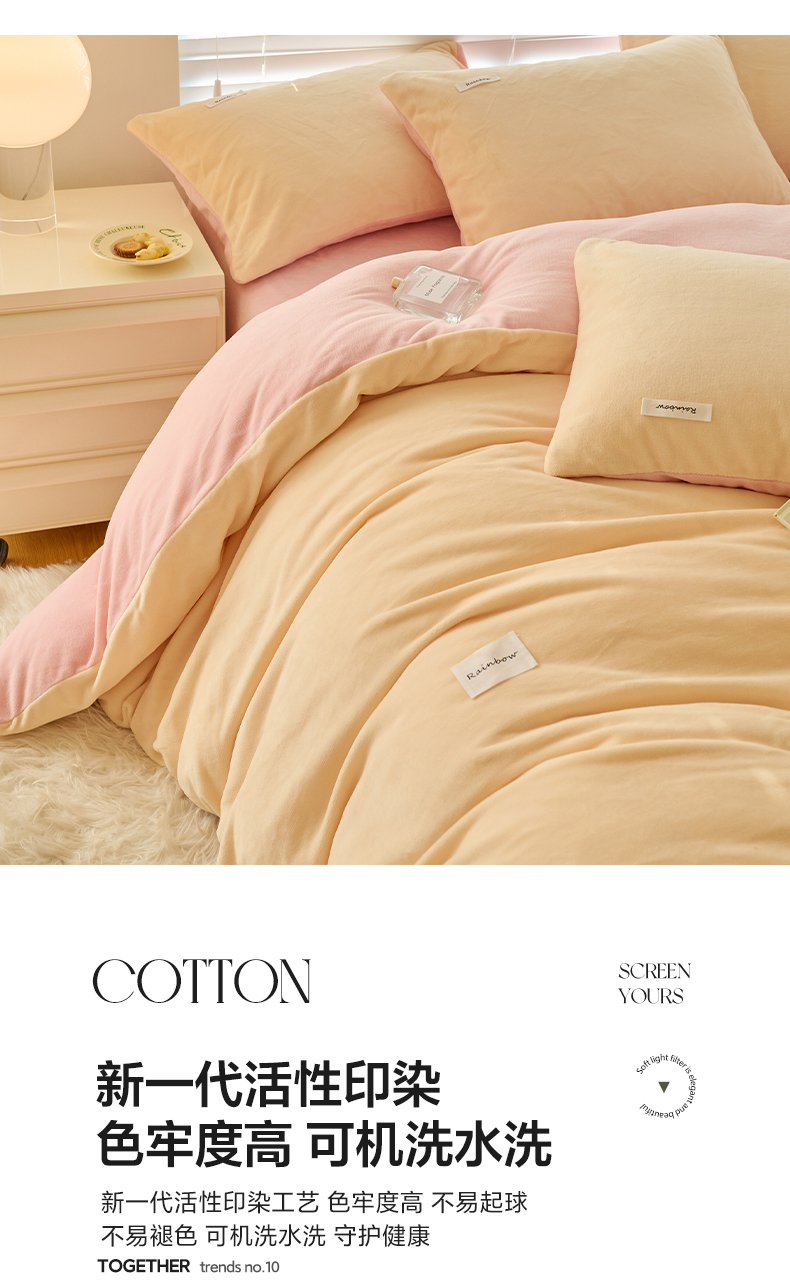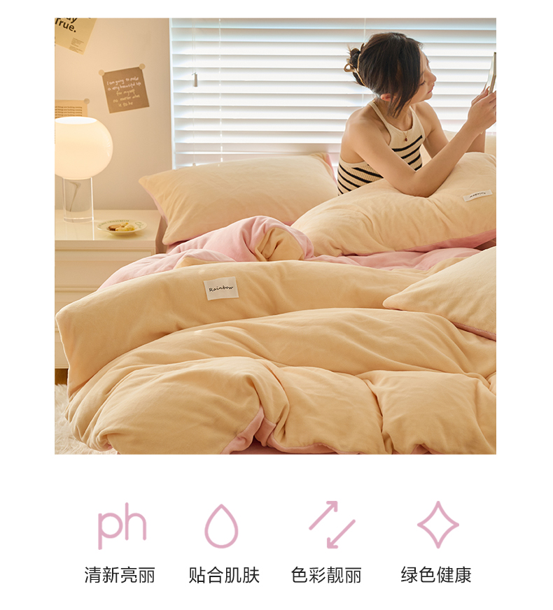 当前位置: 91家纺网 > 商品网购 > 床品套件 > 四件套 > 牛奶绒四件套 > 晨曦 2024秋冬新品ins简约风牛奶绒双拼四件套 奶油黄拼粉