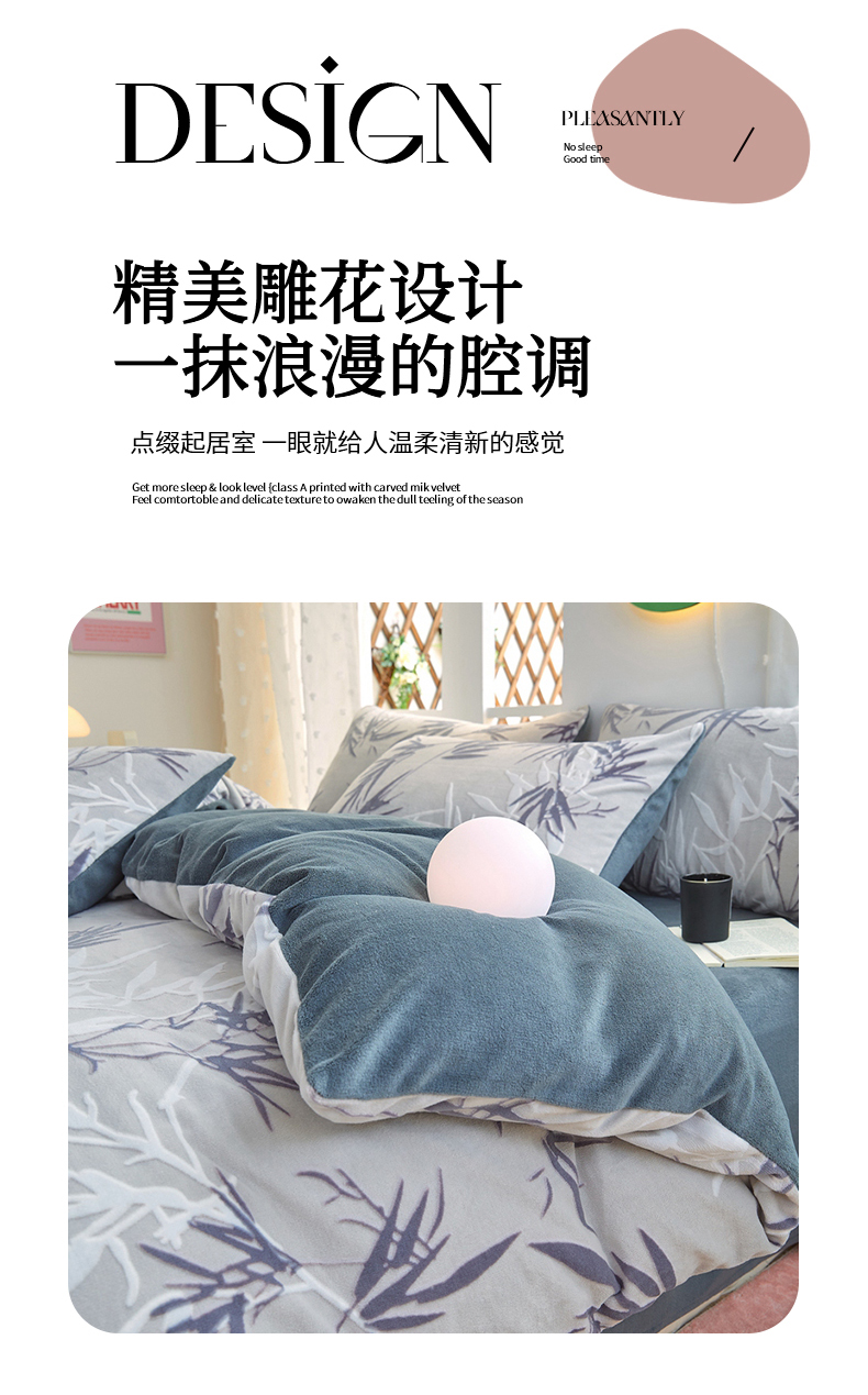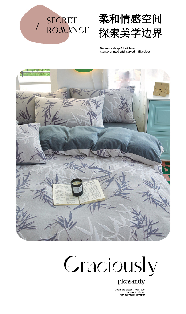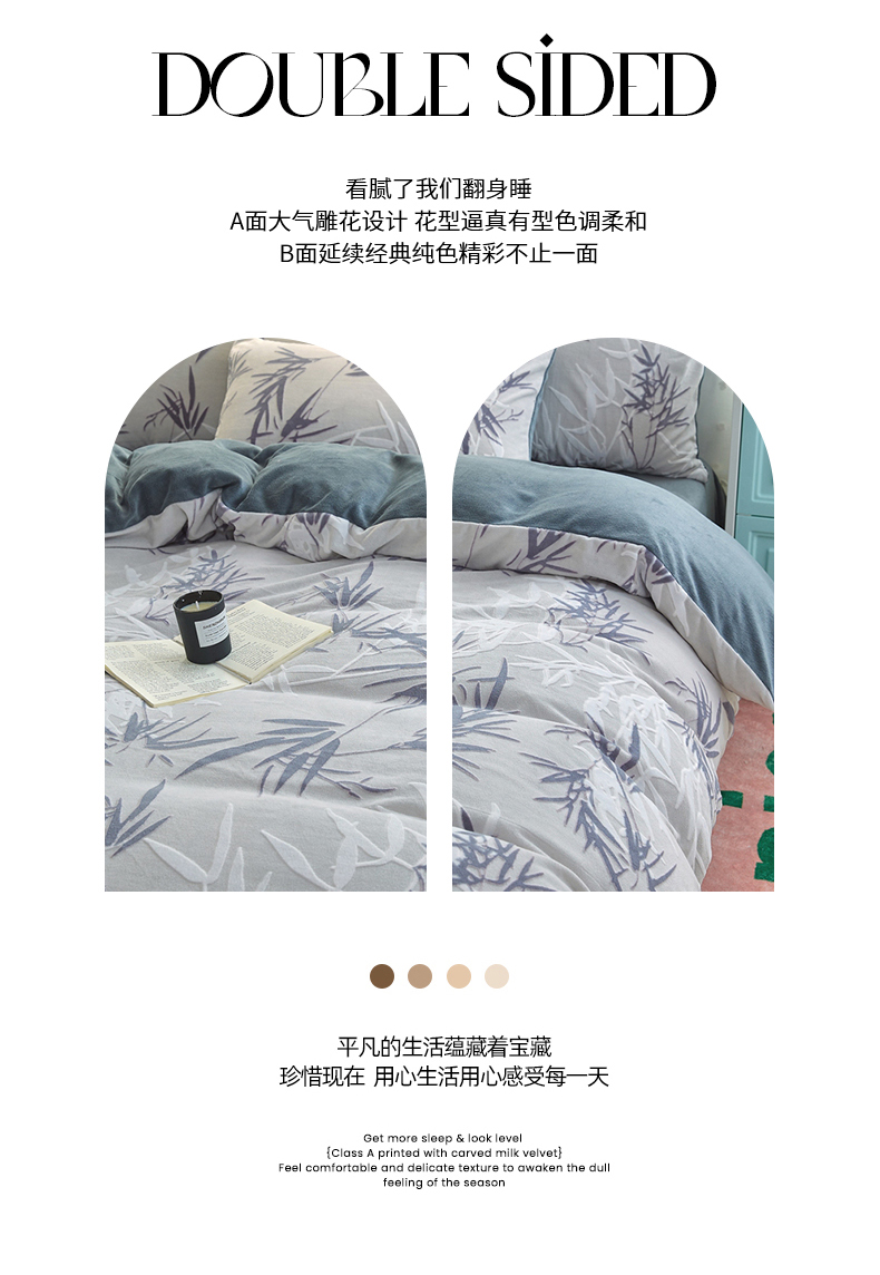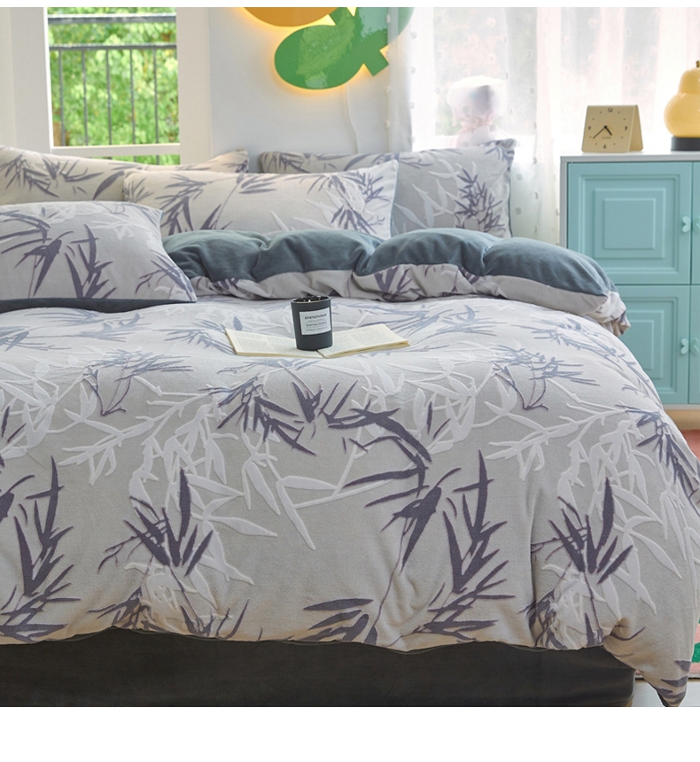 菡宝 2024新款雕花绒230g全消光牛奶绒四件套及单品 - 单被套 水墨竹