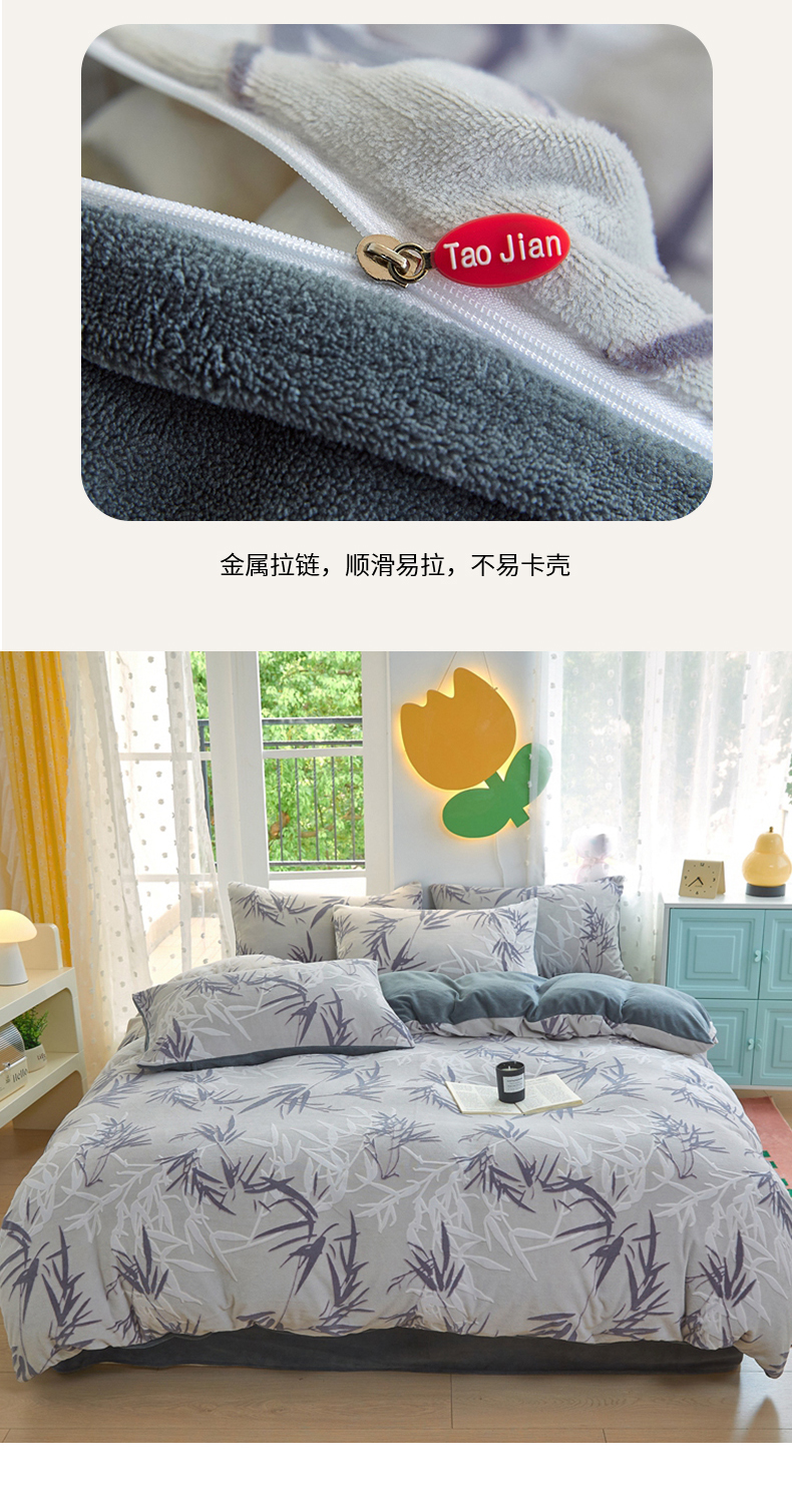 (总)菡宝 2025新款简约良品风牛奶绒四件套-查尔斯系列 支持定做定制尺寸,查尔斯-灰,查尔斯-卡其,卡伦