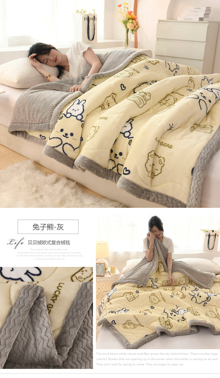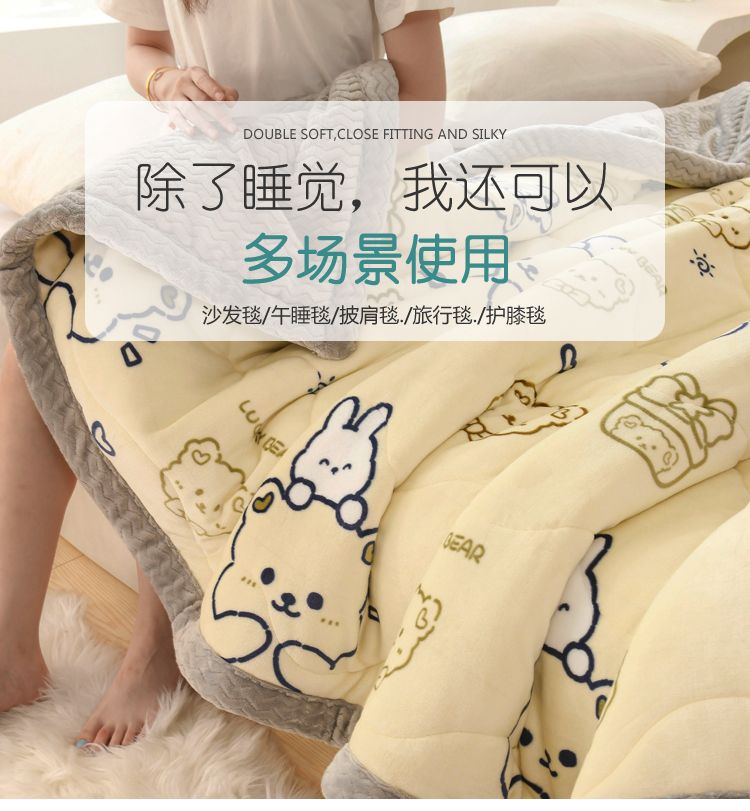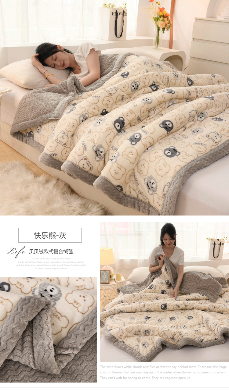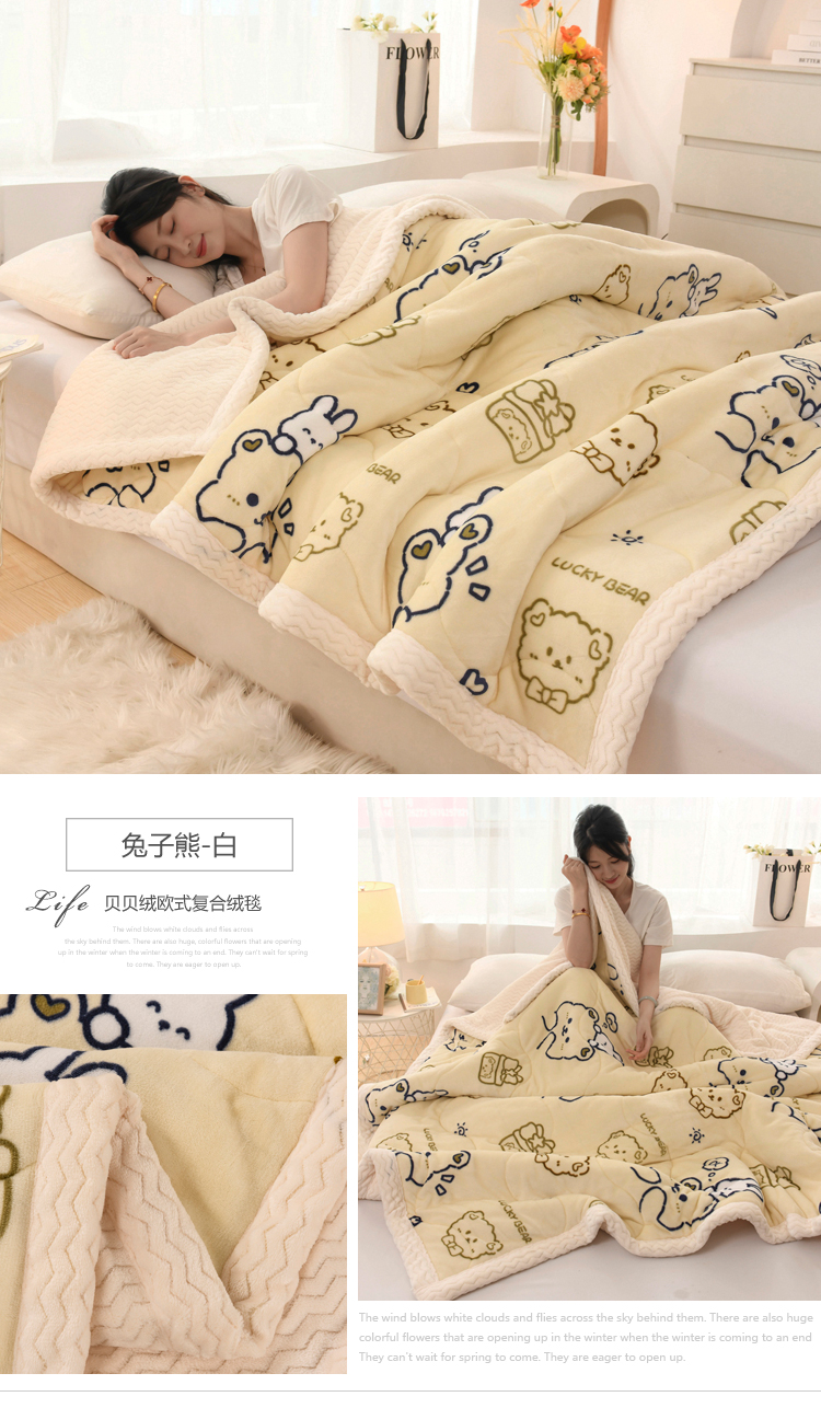 电商爆款·三层夹棉牛奶绒印花毛毯卡通秋冬午睡毯多功能盖毯可机洗毯子,印花款-兔子熊-白,印花款-兔子熊-灰,印花款-快乐熊-白,印花款-快乐熊-灰,印花款-蓝格-白,印花款-蓝格-灰,印花款-爱心-白,印花款-甜橙-白,印花款-小熊-白,印花款-黑格-白