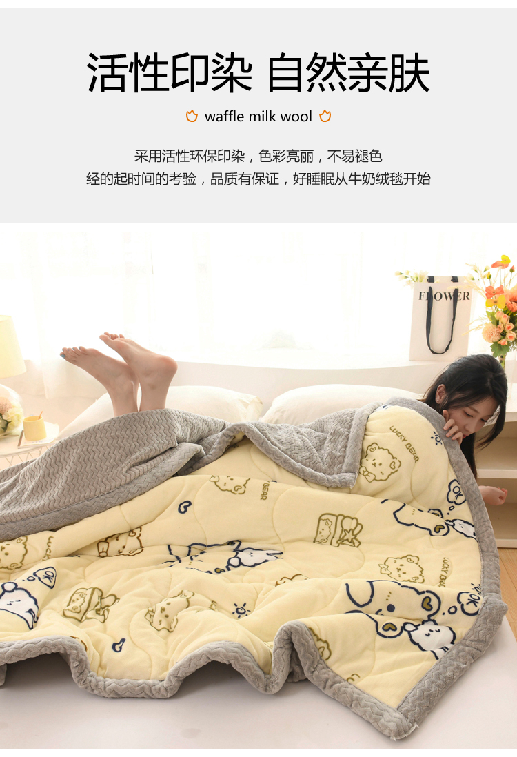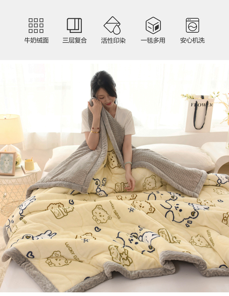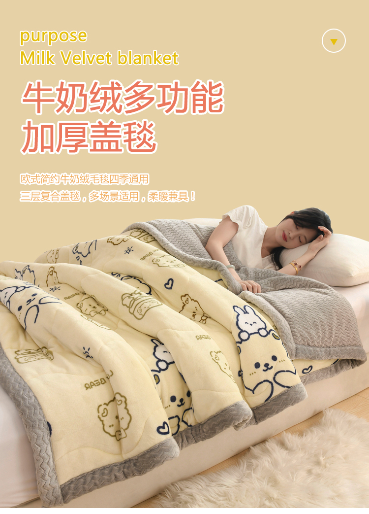 【长期供应】三层夹棉牛奶绒印花盖毯秋冬午睡毯可机洗网红直播毛毯爆款