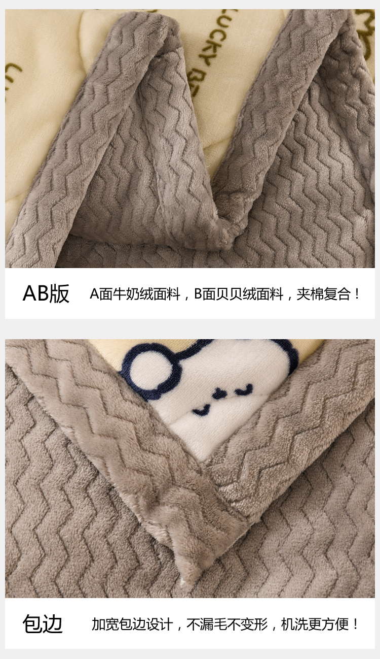(总)电商爆款·三层夹棉牛奶绒印花毛毯加棉素色盖毯纯色午睡毯多功能毯子可机洗,贝贝绒-兔子熊-白,贝贝绒-兔子熊-灰,贝贝绒-快乐熊-白,贝贝绒-快乐熊-灰,贝贝绒-蓝格-白,贝贝绒-蓝格-灰,贝贝绒-甜橙-白,贝贝绒-爱心-白,贝贝绒-小熊-白,贝贝绒-黑格-白,贝贝绒-灰蓝-白,贝贝绒-灰蓝-灰,贝贝绒-果绿-白,贝贝绒-果绿-灰,贝贝绒-豆沙-白,贝贝绒-豆沙-灰,贝贝绒-灰色-白,贝贝绒-灰色-灰,贝贝绒-粉色-白,贝贝绒-粉色-灰,贝贝绒-桔黄-白,贝贝绒-藏青-白