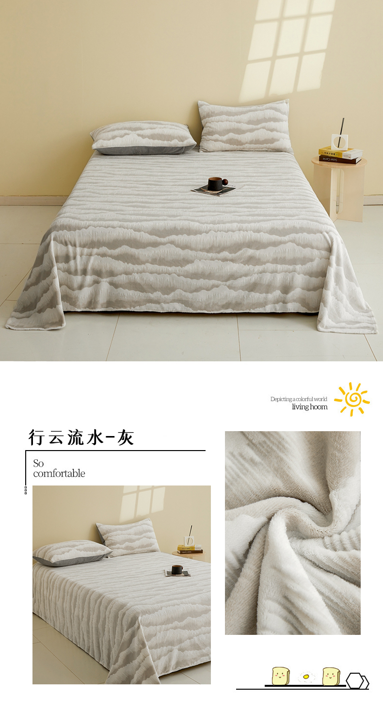 菡宝 2024新款雕花绒230g全消光牛奶绒单床单-行云流水 豆绿