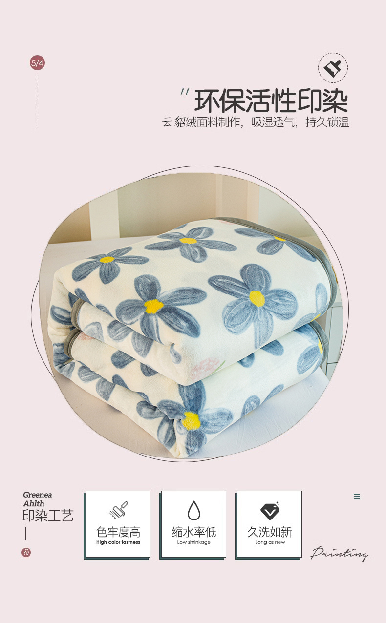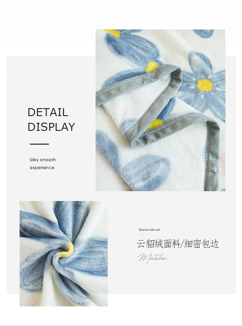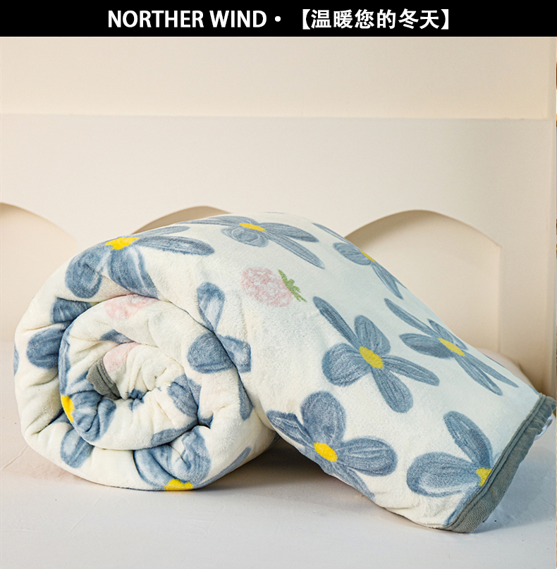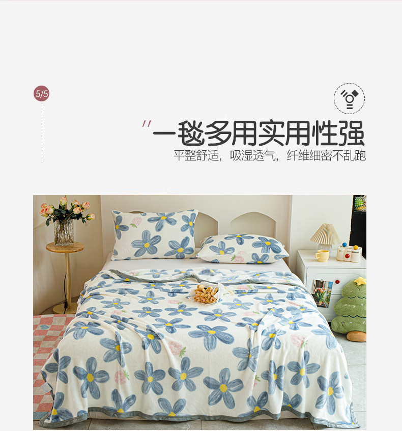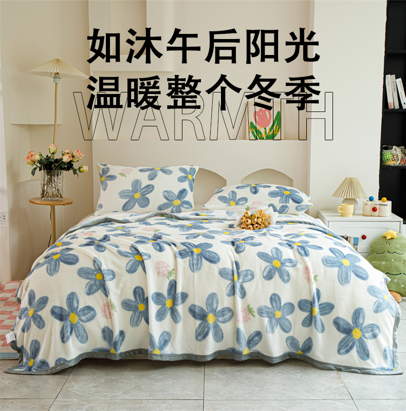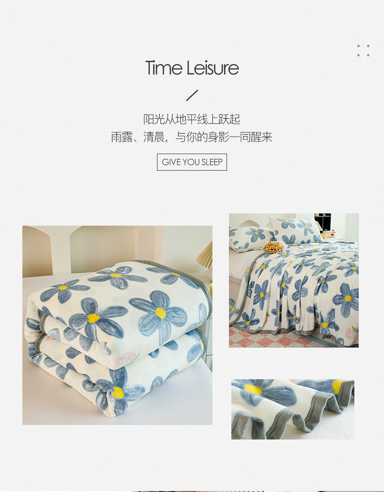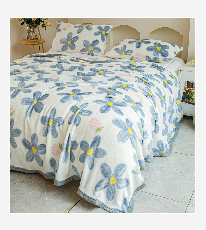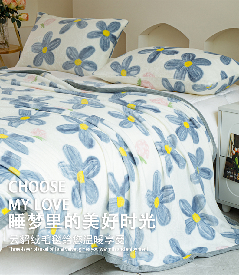 梵心 2025新款云貂绒毛毯法兰绒毛毯牛奶绒毛毯爆款盖毯直播跨境专供-可定制克重 蓝色花朵