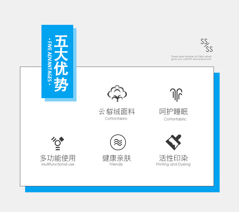 商品名称:梵心 2025新款云貂绒毛毯法兰绒毛毯牛奶绒毛毯爆款盖毯直播跨境专供-可定制克重 蓝色花朵