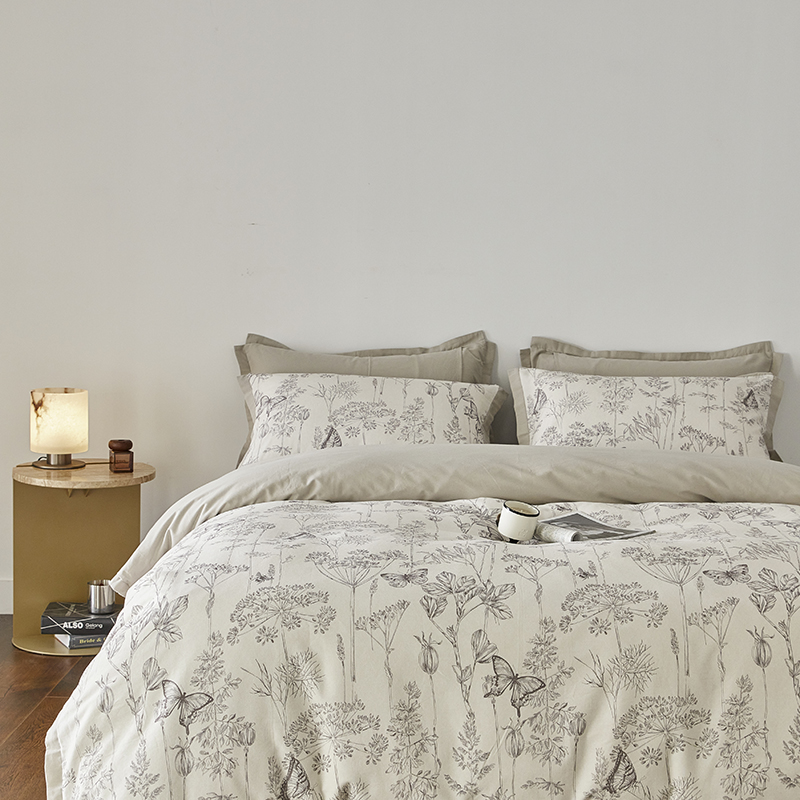 千朵森 2024新款全棉拼角磨毛四件套-风格二 叶叶相思