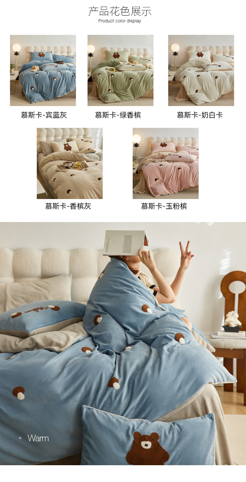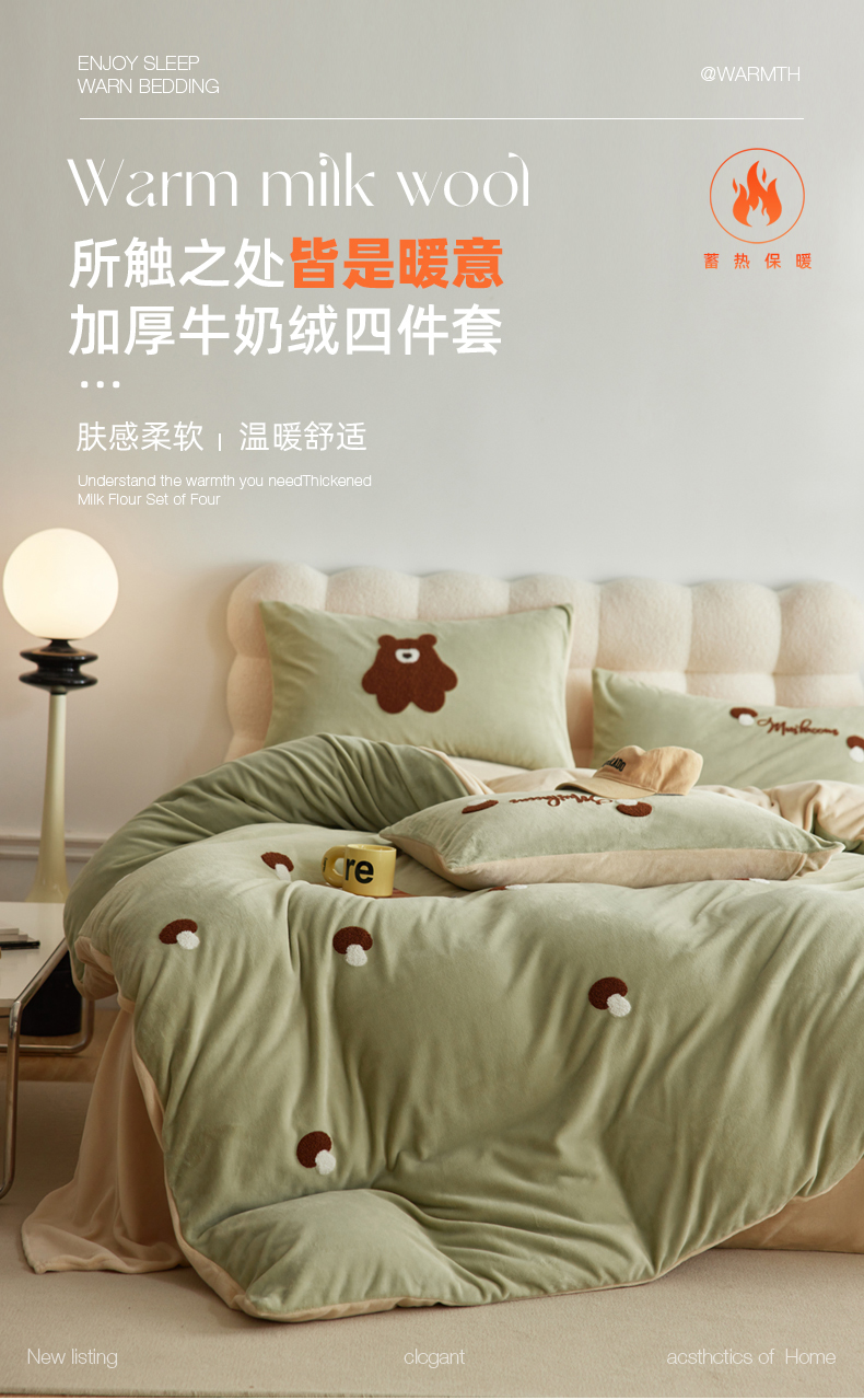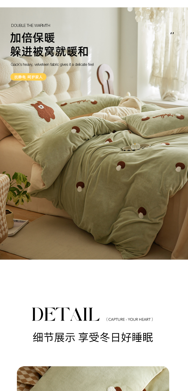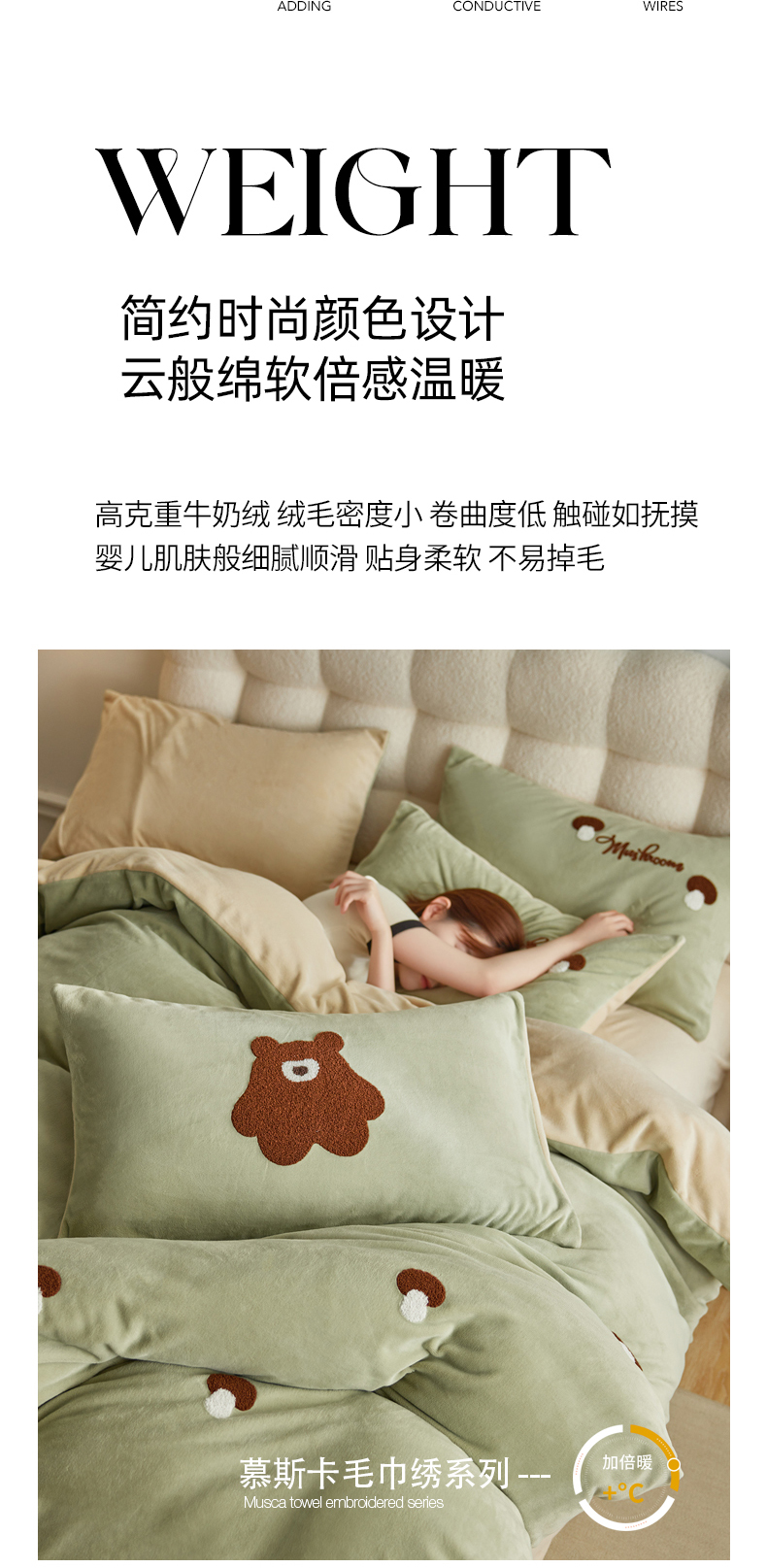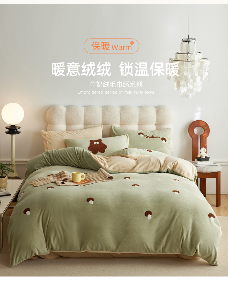 千朵森 2024新款毛巾绣牛奶绒四件套-慕斯卡 风格一 慕斯卡-绿香槟
