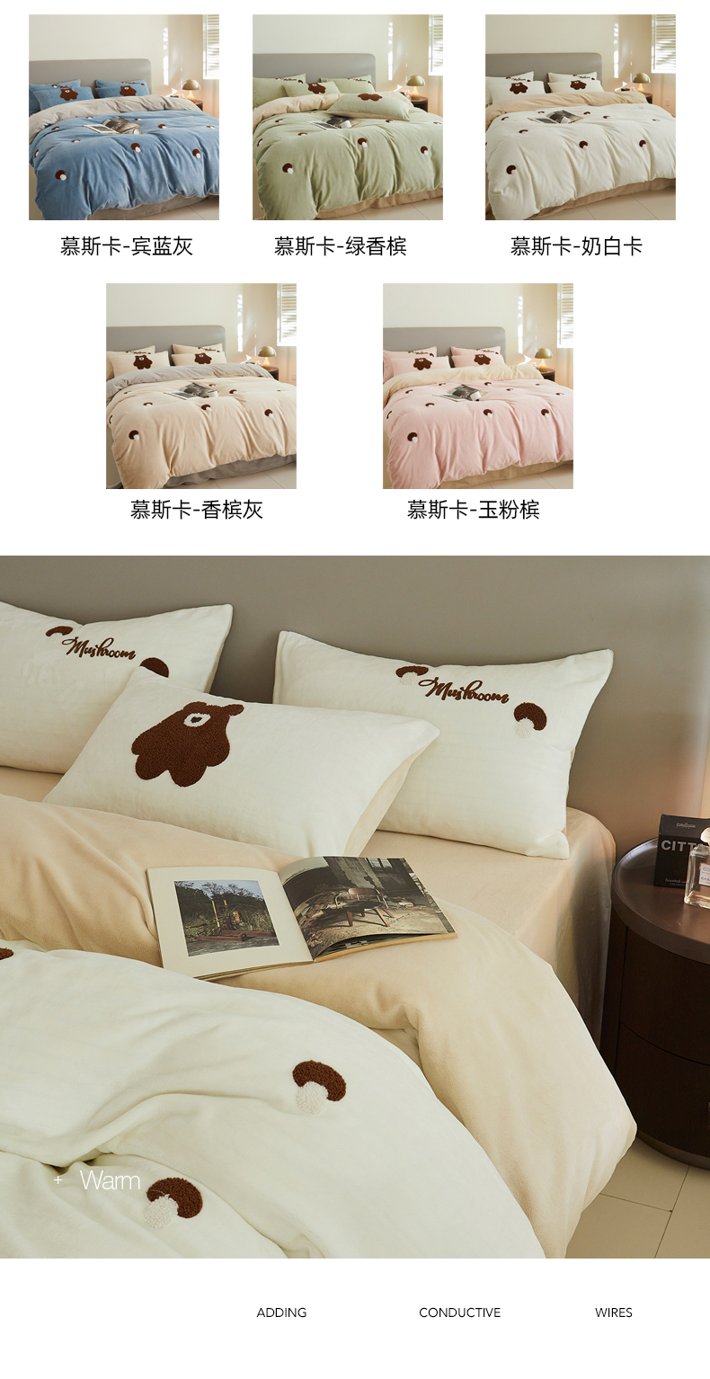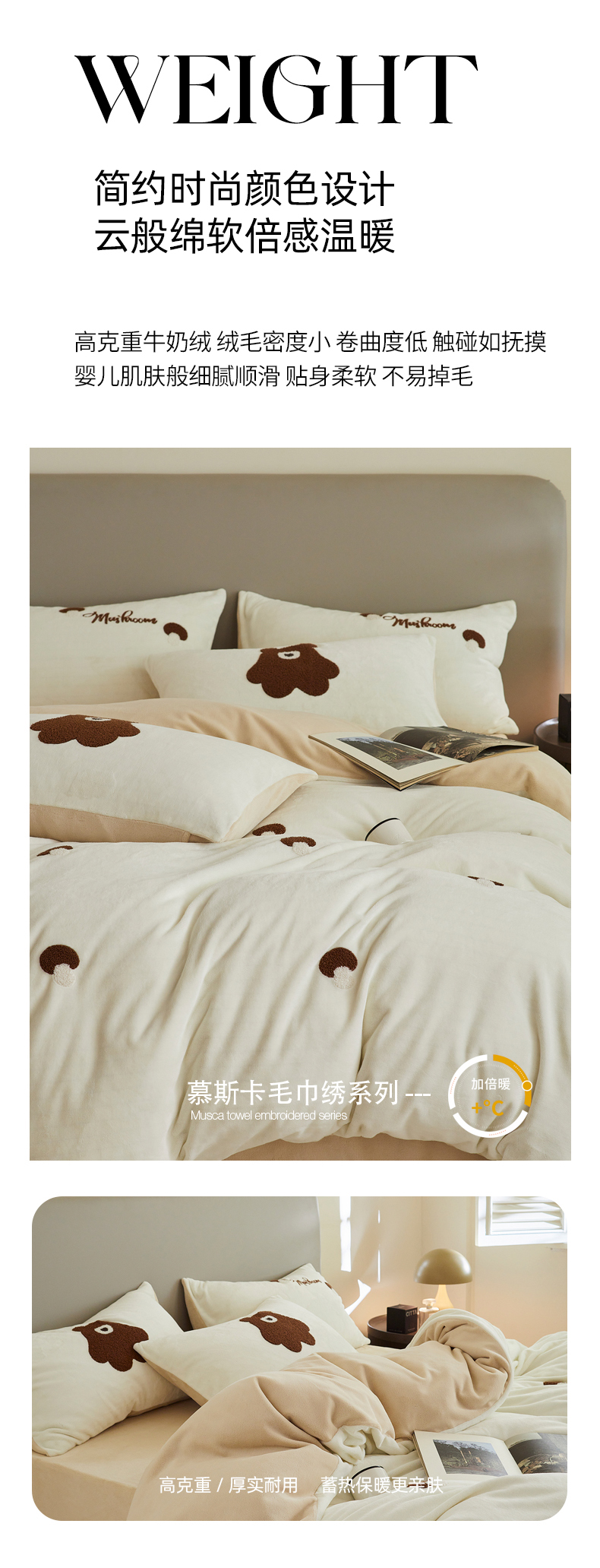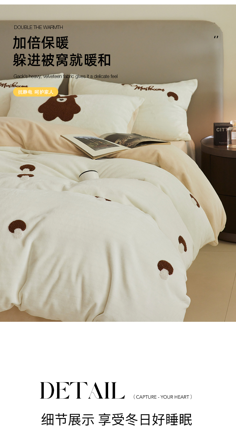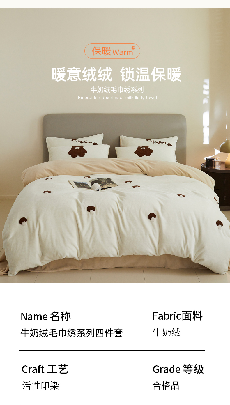 千朵森 2024新款毛巾绣牛奶绒四件套-慕斯卡 风格二 慕斯卡-奶白卡