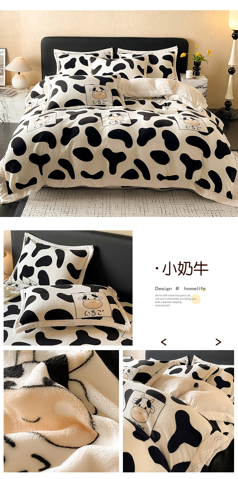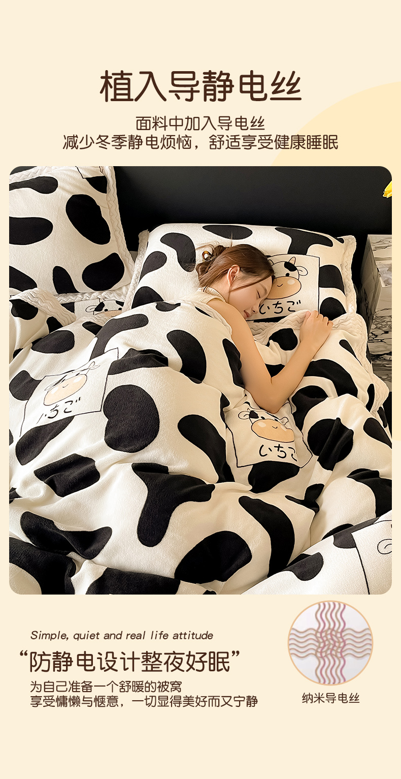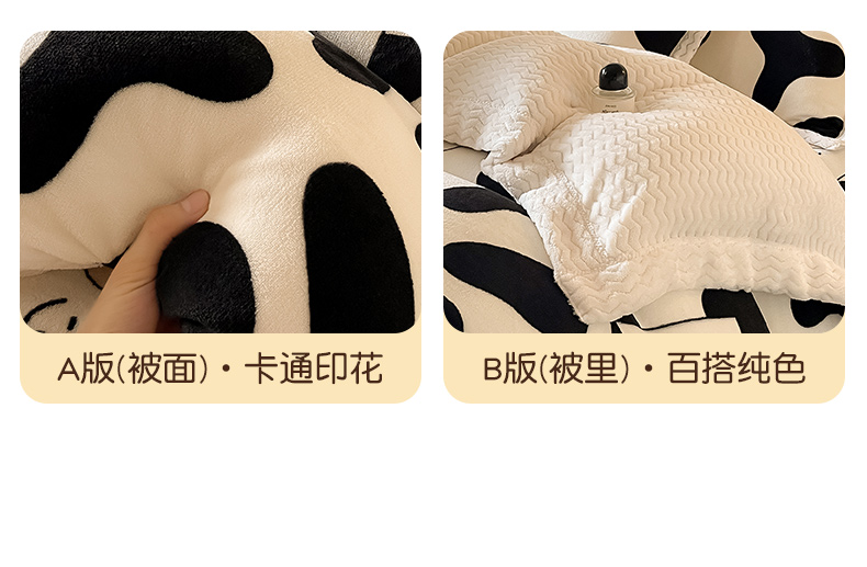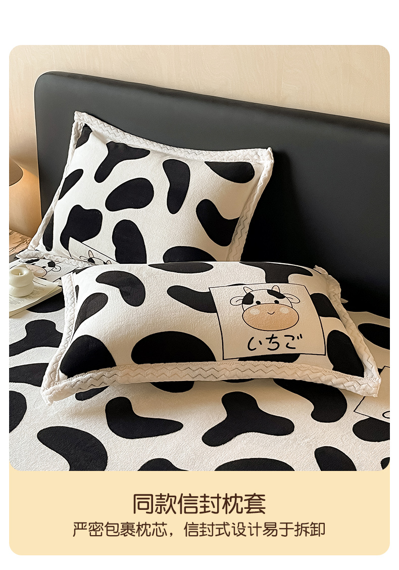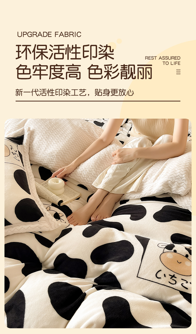 当前位置: 91家纺网 > 商品网购 > 床品套件 > 四件套 > 牛奶绒四件套 > 全季家居 2024新款A类纯色印花波浪大包边牛奶绒贝贝绒加厚保暖四件套 小奶牛