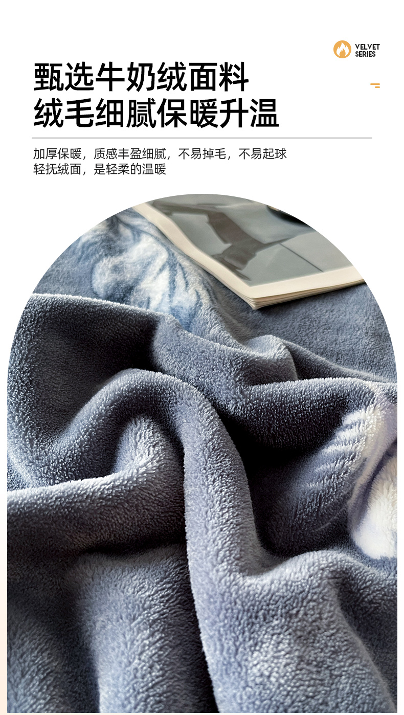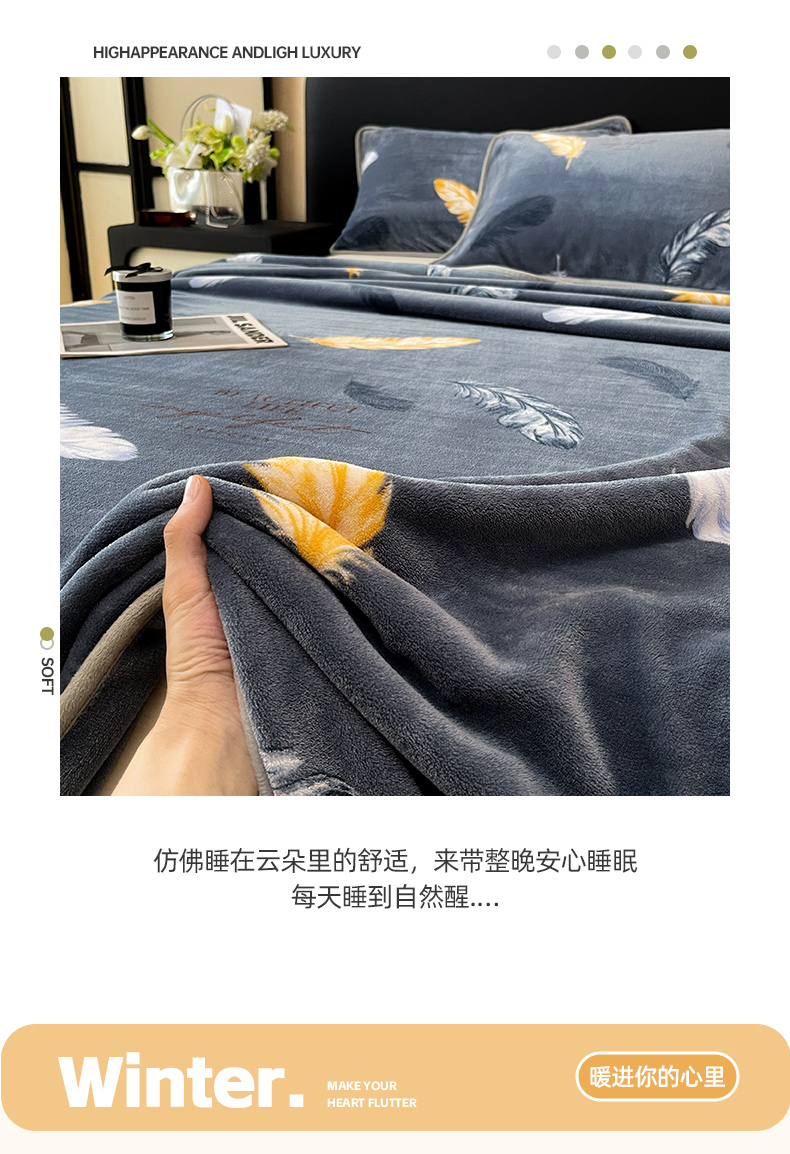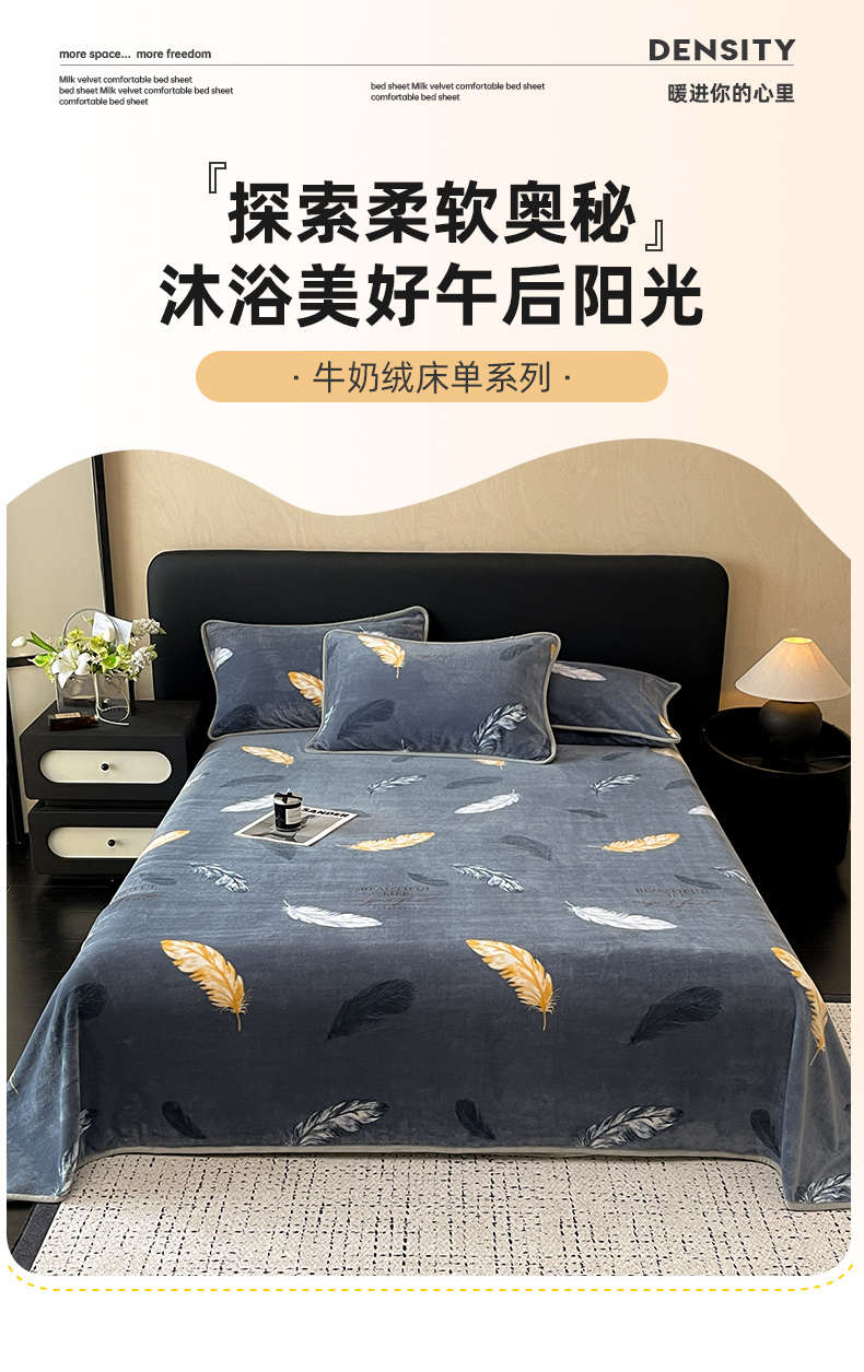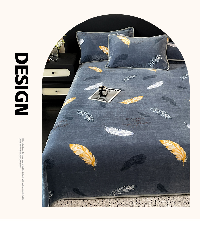 商品名称:全季家居 2024新款A类纯色印花高克重加厚保暖包边牛奶绒床单单件 羽毛