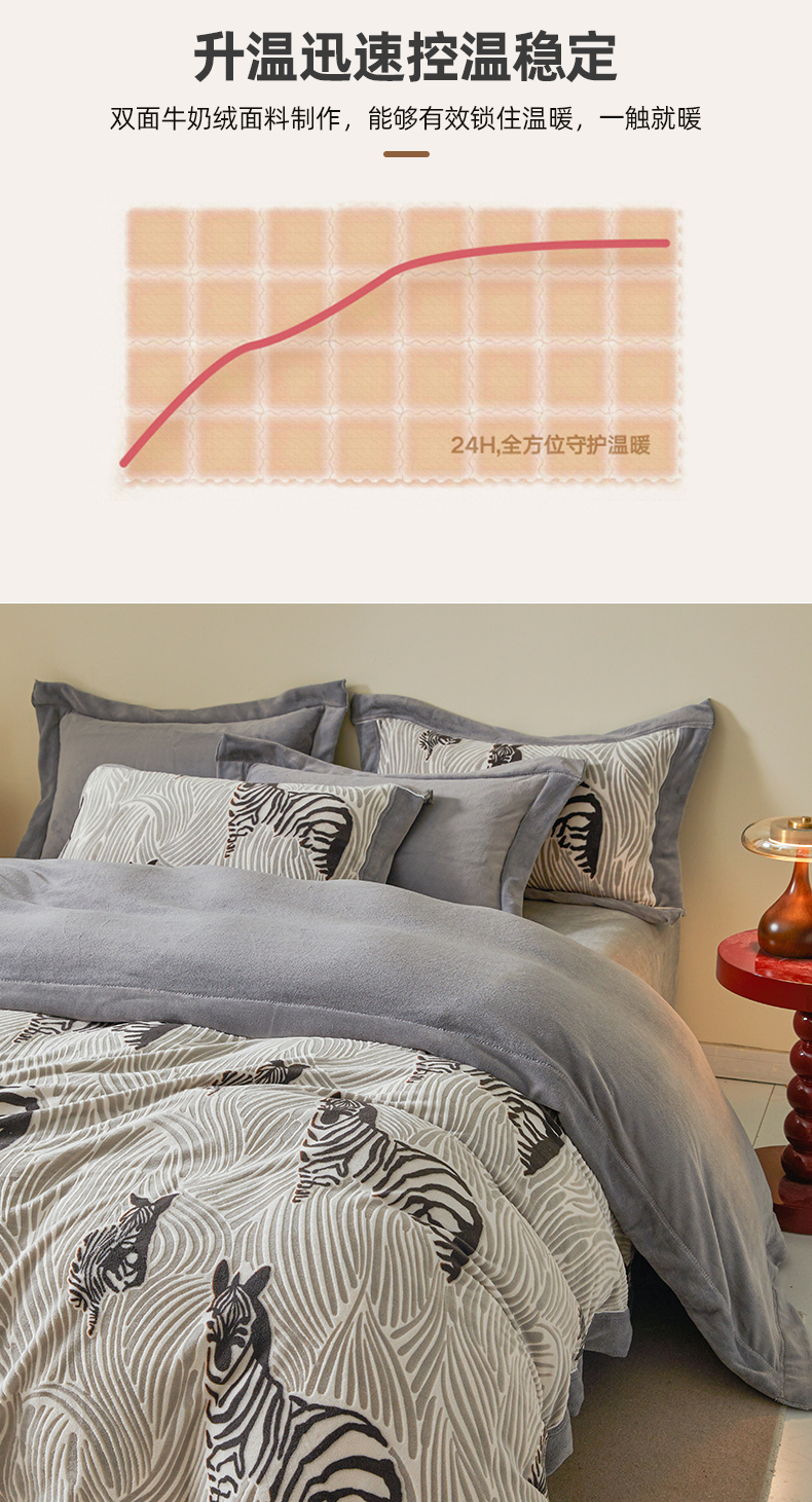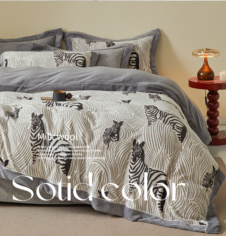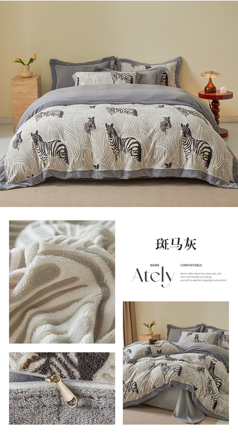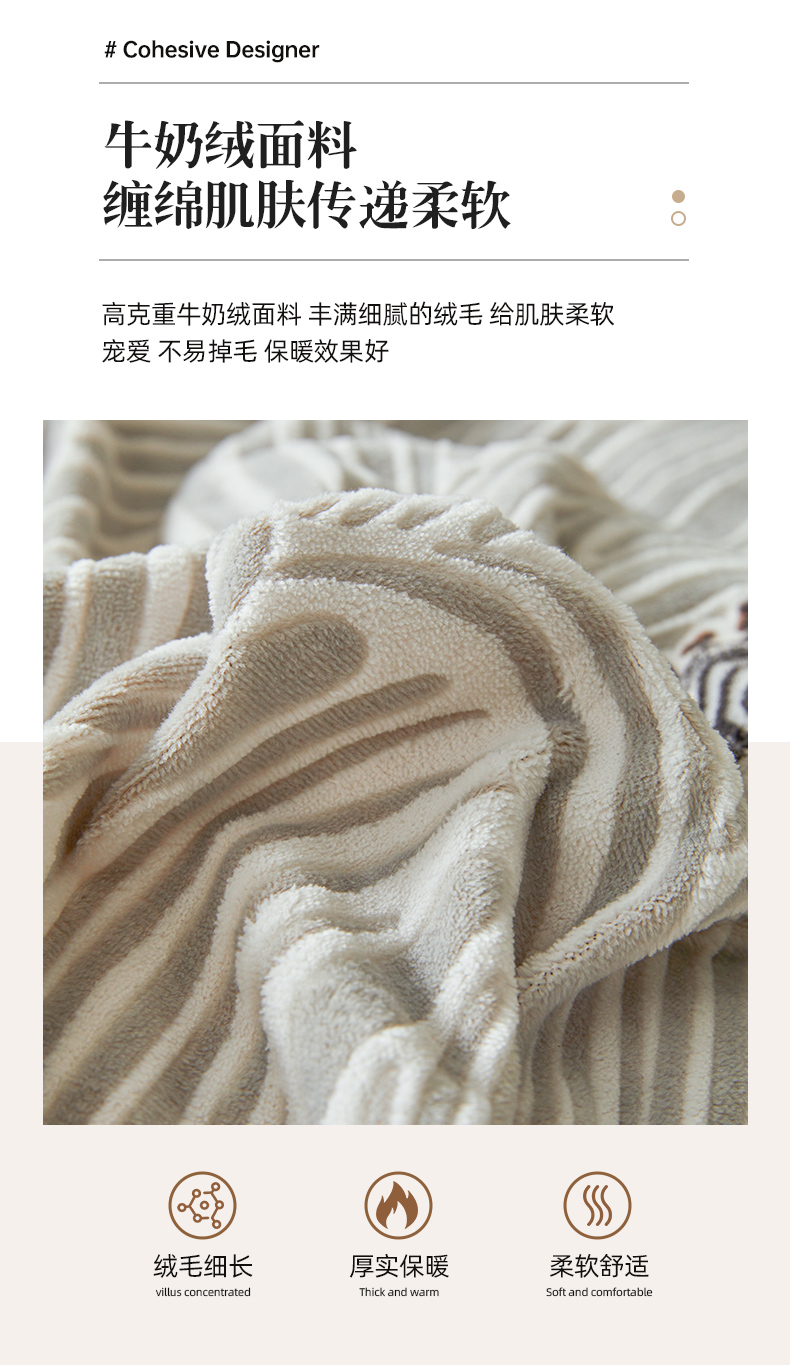 商品名称:全季家居 2024新款A类高克重5D立体浮雕宽边牛奶绒加厚保暖被套单件 斑马灰
