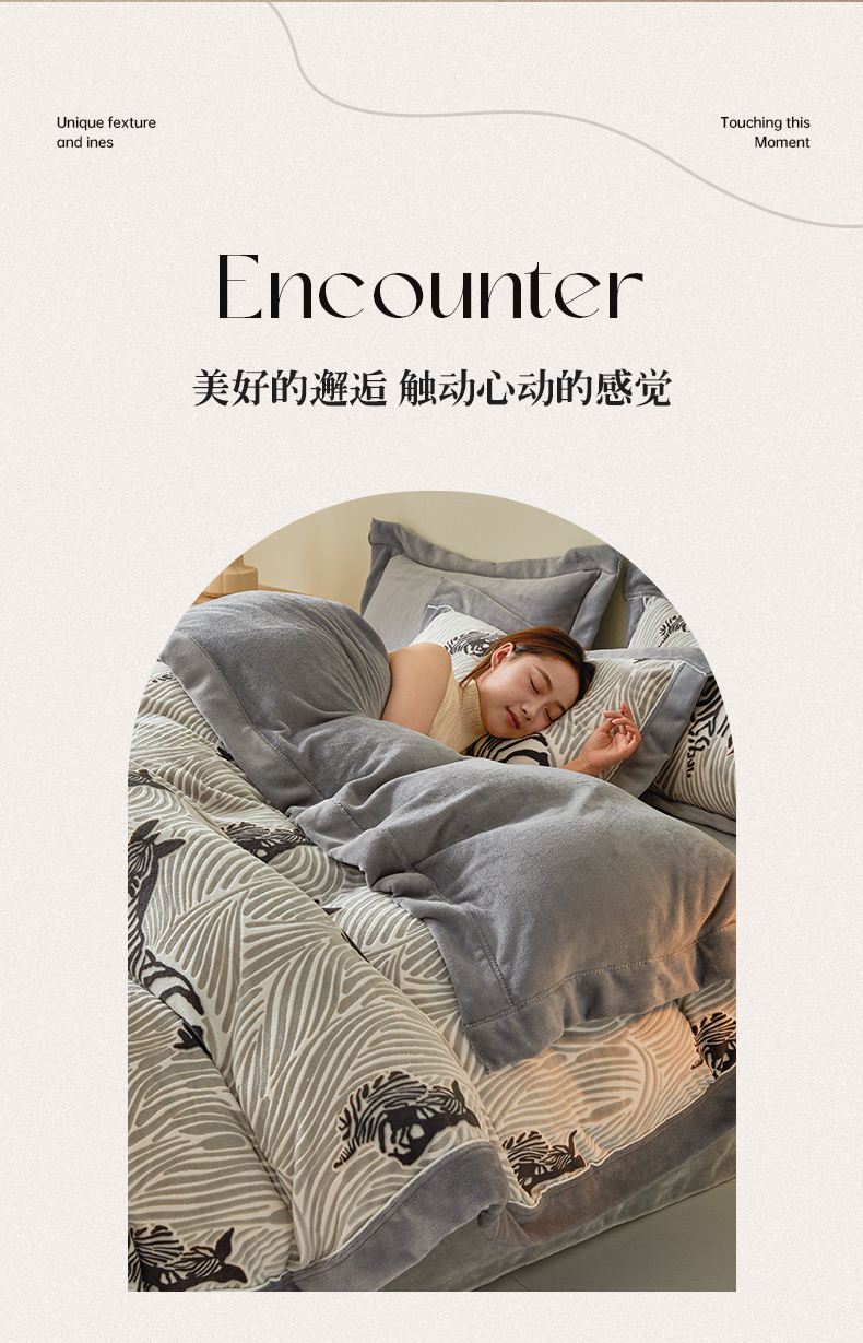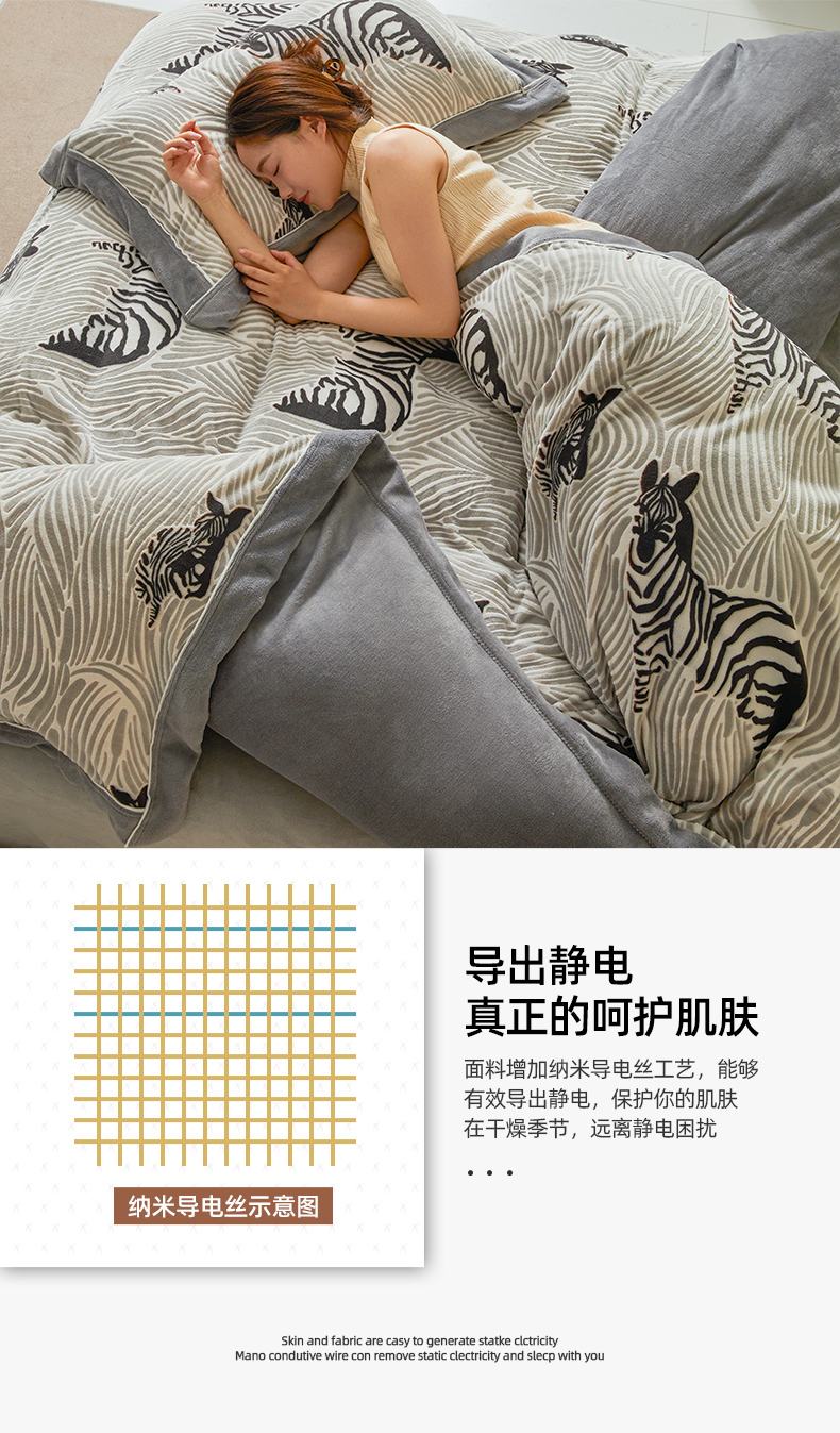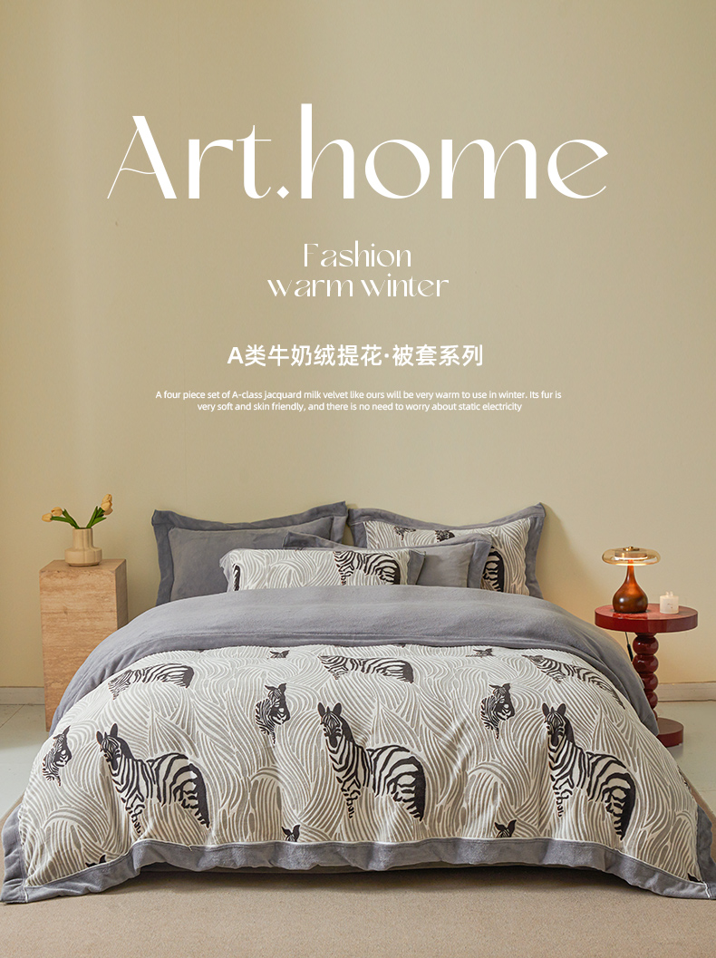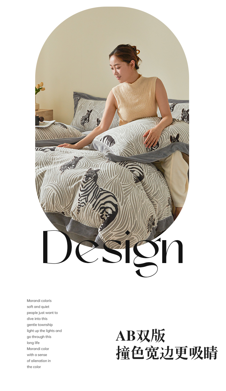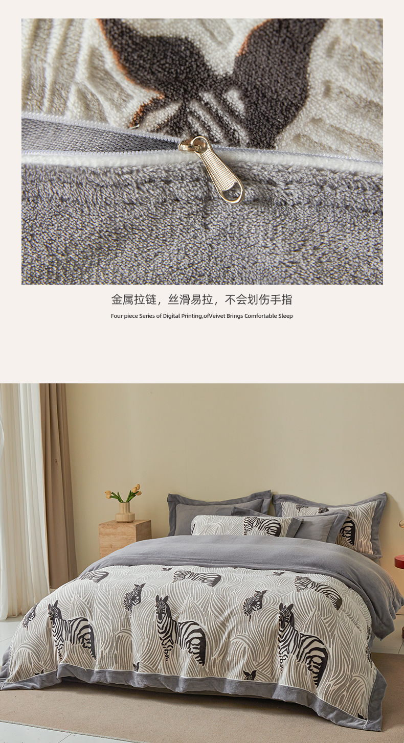 商品名称:全季家居 2024新款A类高克重5D立体浮雕宽边牛奶绒加厚保暖被套单件 斑马灰