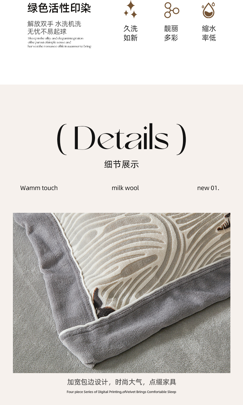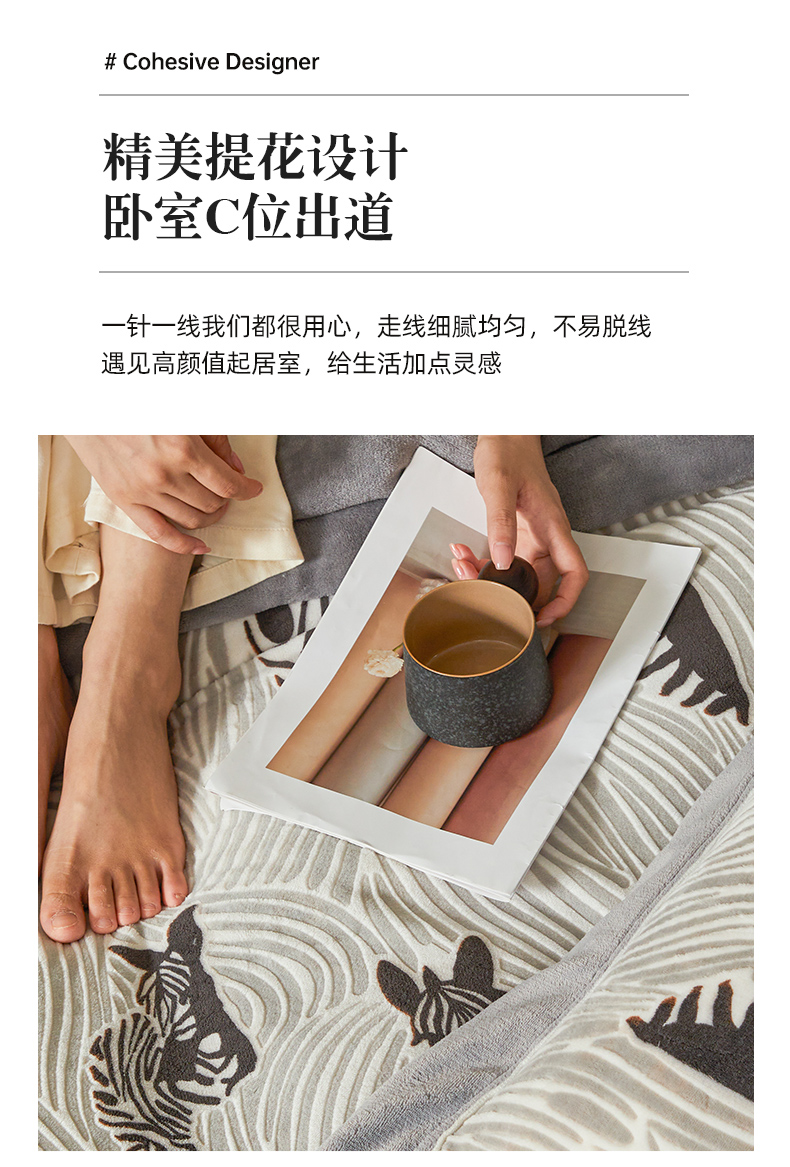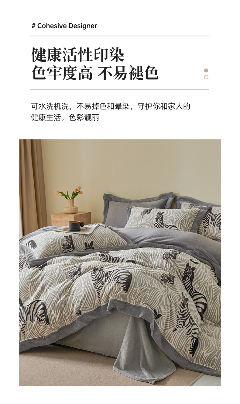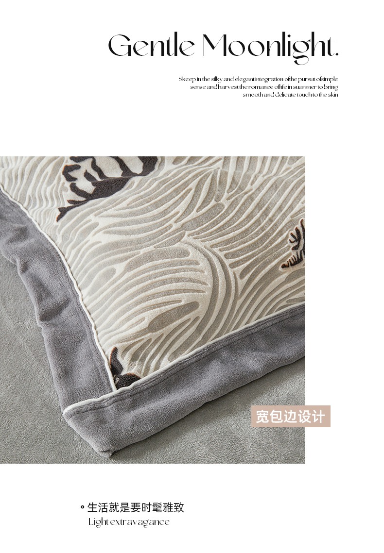 商品名称:全季家居 2024新款A类高克重5D立体浮雕宽边牛奶绒加厚保暖被套单件 斑马灰