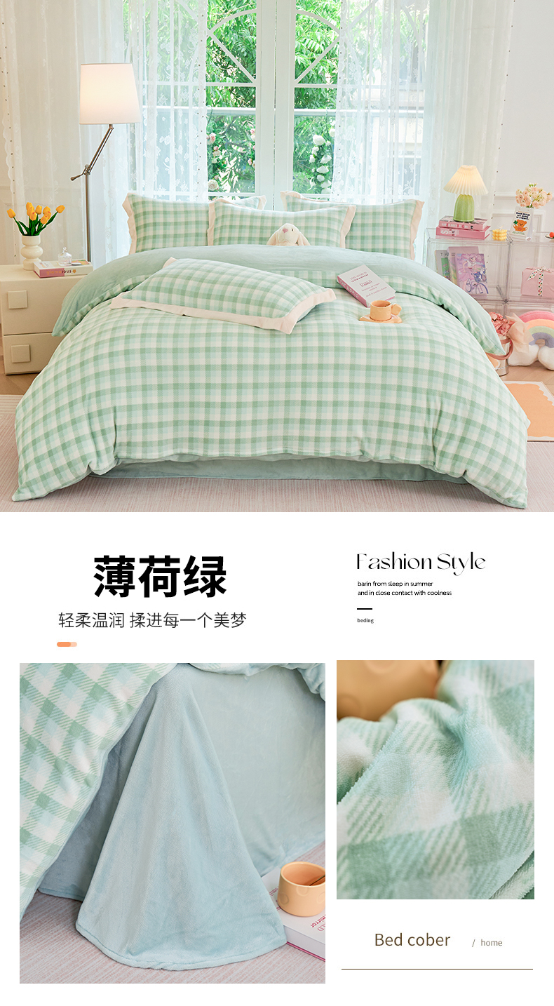大米家居 2024新款印花牛奶绒四件套-马卡龙糖果 薄荷绿