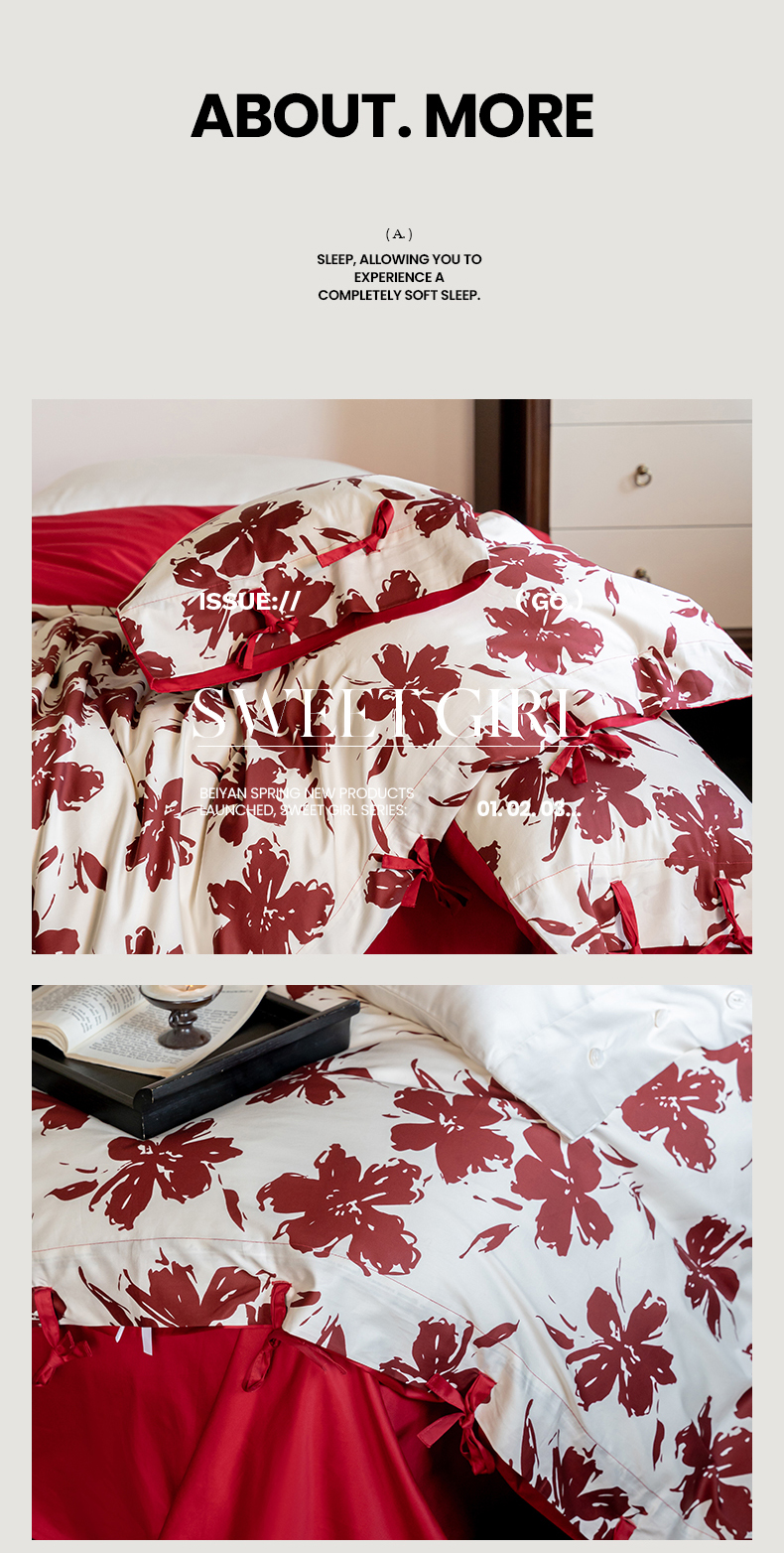 (总)华超针织 2025新款亲肤舒适全棉纯棉针织五件套四件套,奶糖+樱桃,杏粉+花田,杏灰+玫瑰