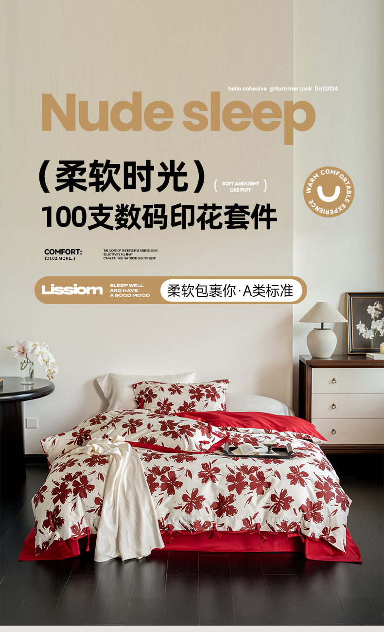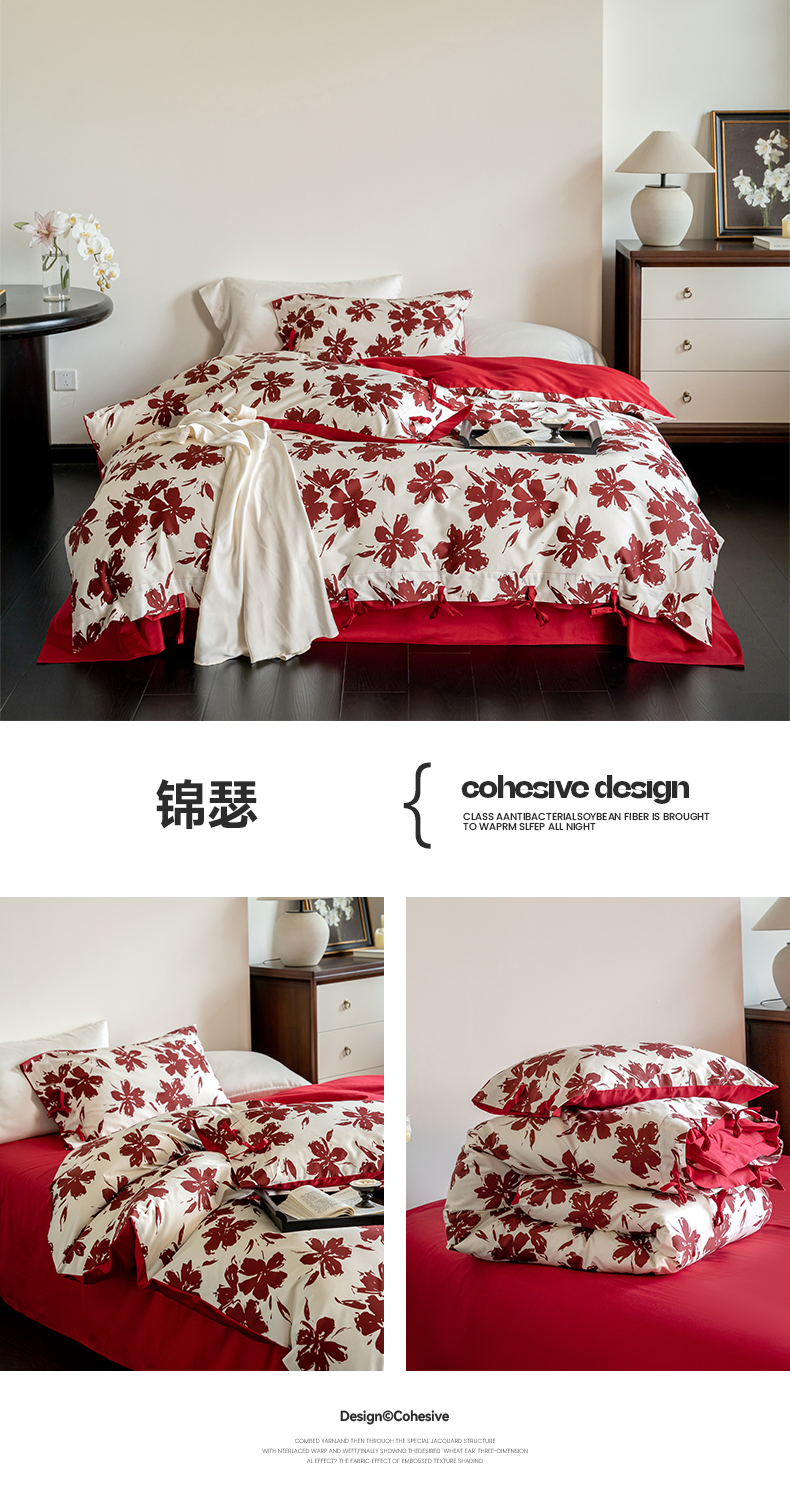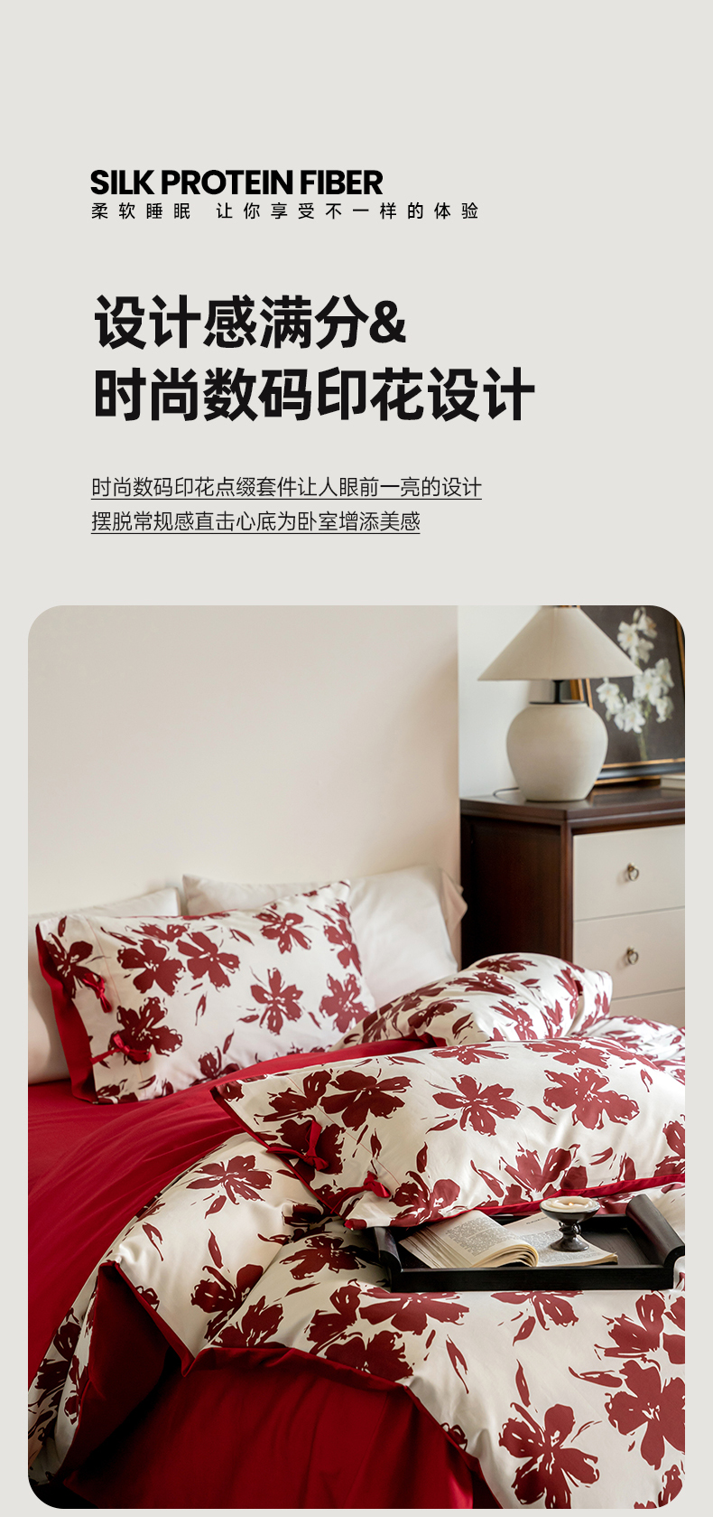 华超针织 2024新款长绒棉5050数码印花四件套 锦瑟
